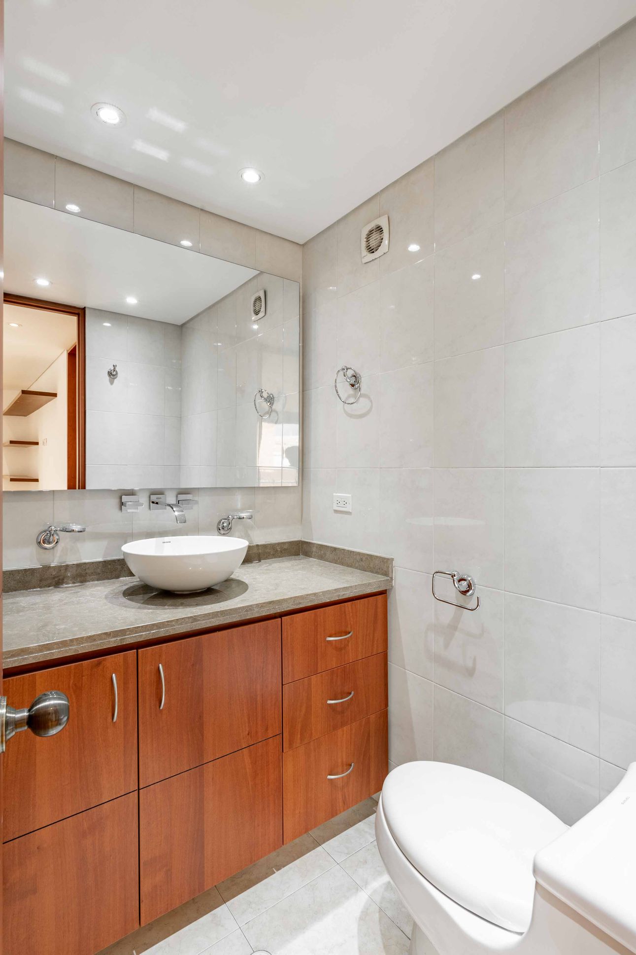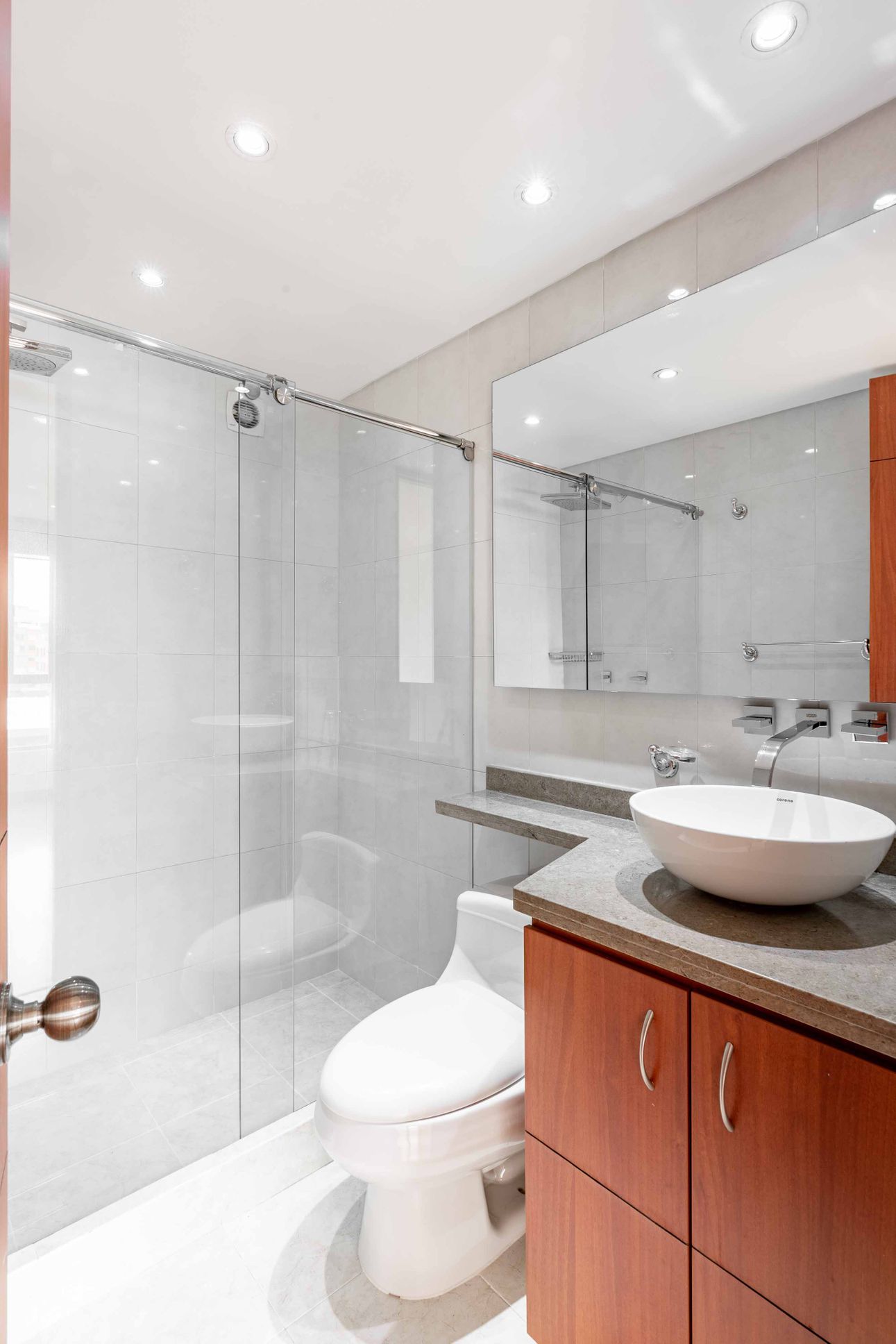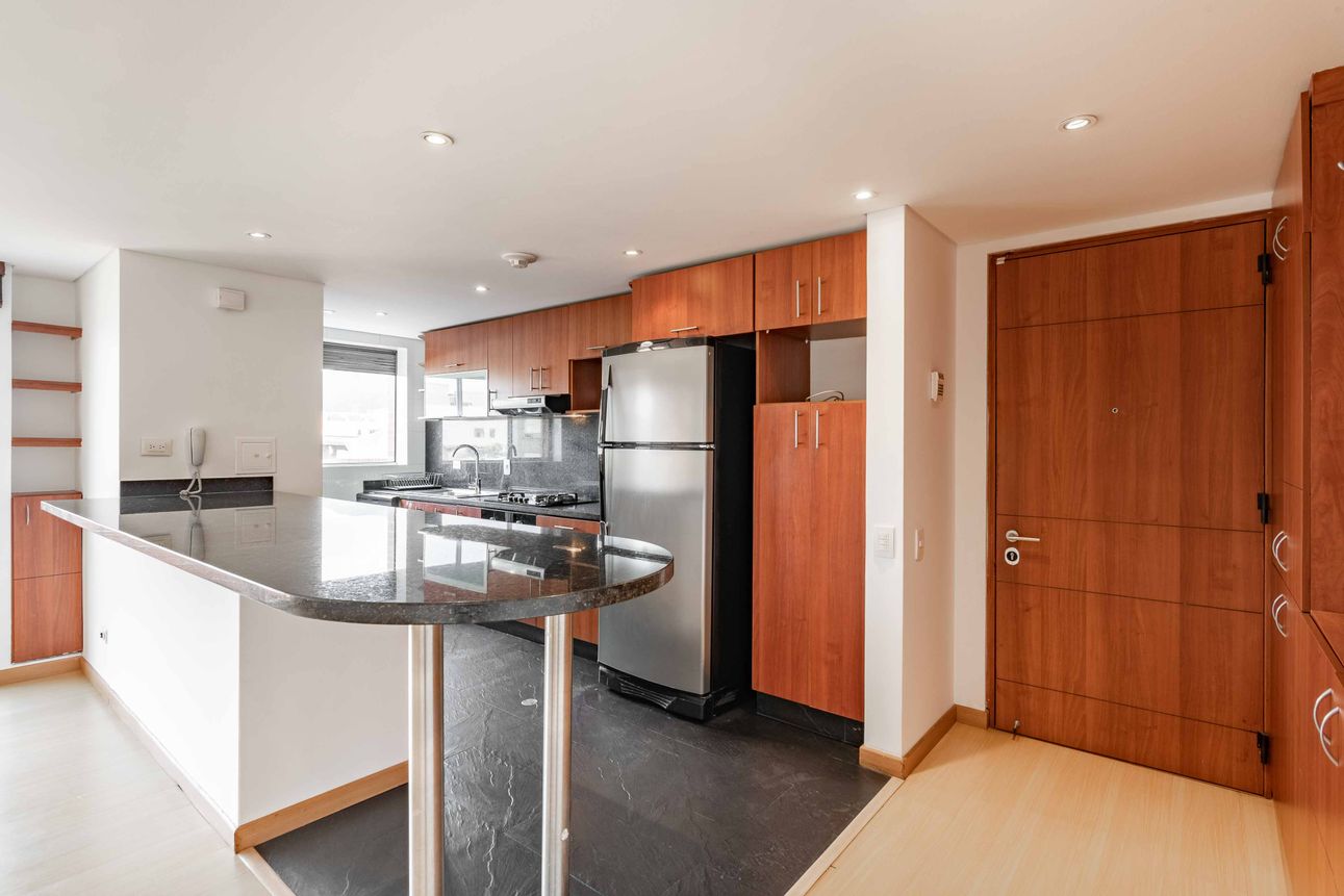 En el corazón de Usaquén, Bogotá, se encuentra un encantador apartamento de 90 m² perfecto para quienes valoran la comodidad y la tranquilidad. Al estar en un quinto piso interior esquinero, la luz natural inunda cada rincón, haciendo que los ambientes sean cálidos y acogedores. Su diseño moderno incluye una amplia zona social con estudio, y una cocina americana abierta con una generosa barra en granito, ideal para los amantes de la cocina. Las dos alcobas, cada una con baño privado, ofrecen privacidad y confort.