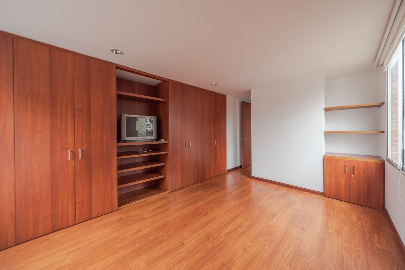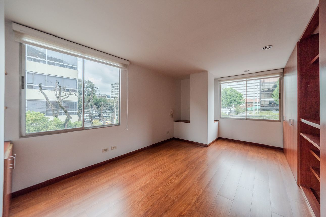 Amplio apartamento ubicado en Chico Reservado, a pocos pasos de la Carrera 7 y 11, de Calle 100 y 95. El apartamento cuenta con amplia zona social en un ambiente, balcón, cocina abierta, baño social (sin ducha), dos habitaciones, la principal con baño completo. El apartamento cuenta con parqueadero y depósito. El edificio cuenta con vigilancia 24 horas y ascensor.