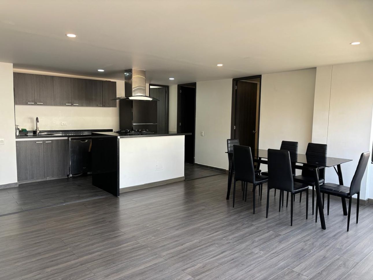Apartamento amoblado iluminado un gran ventanal interior y excelente iluminación natural