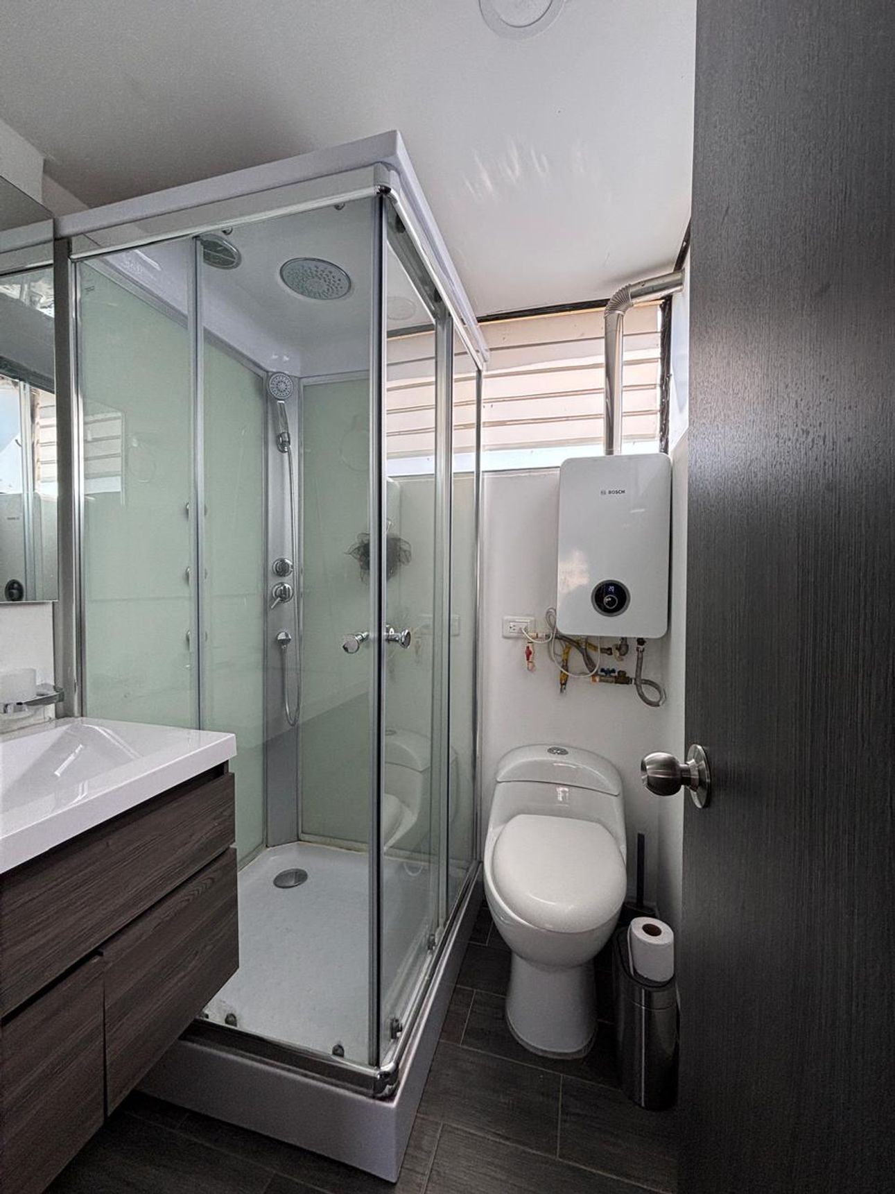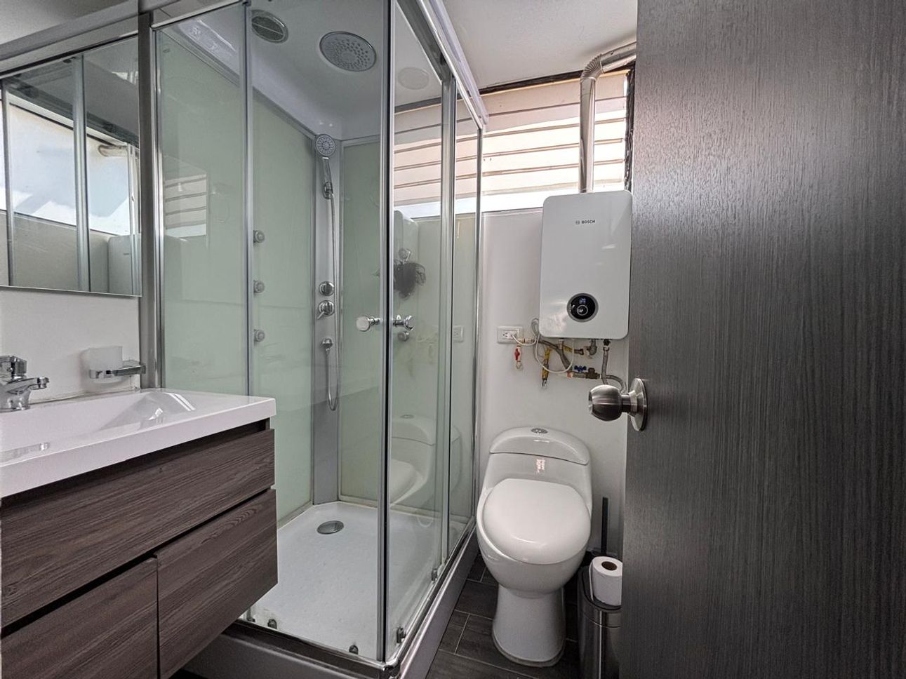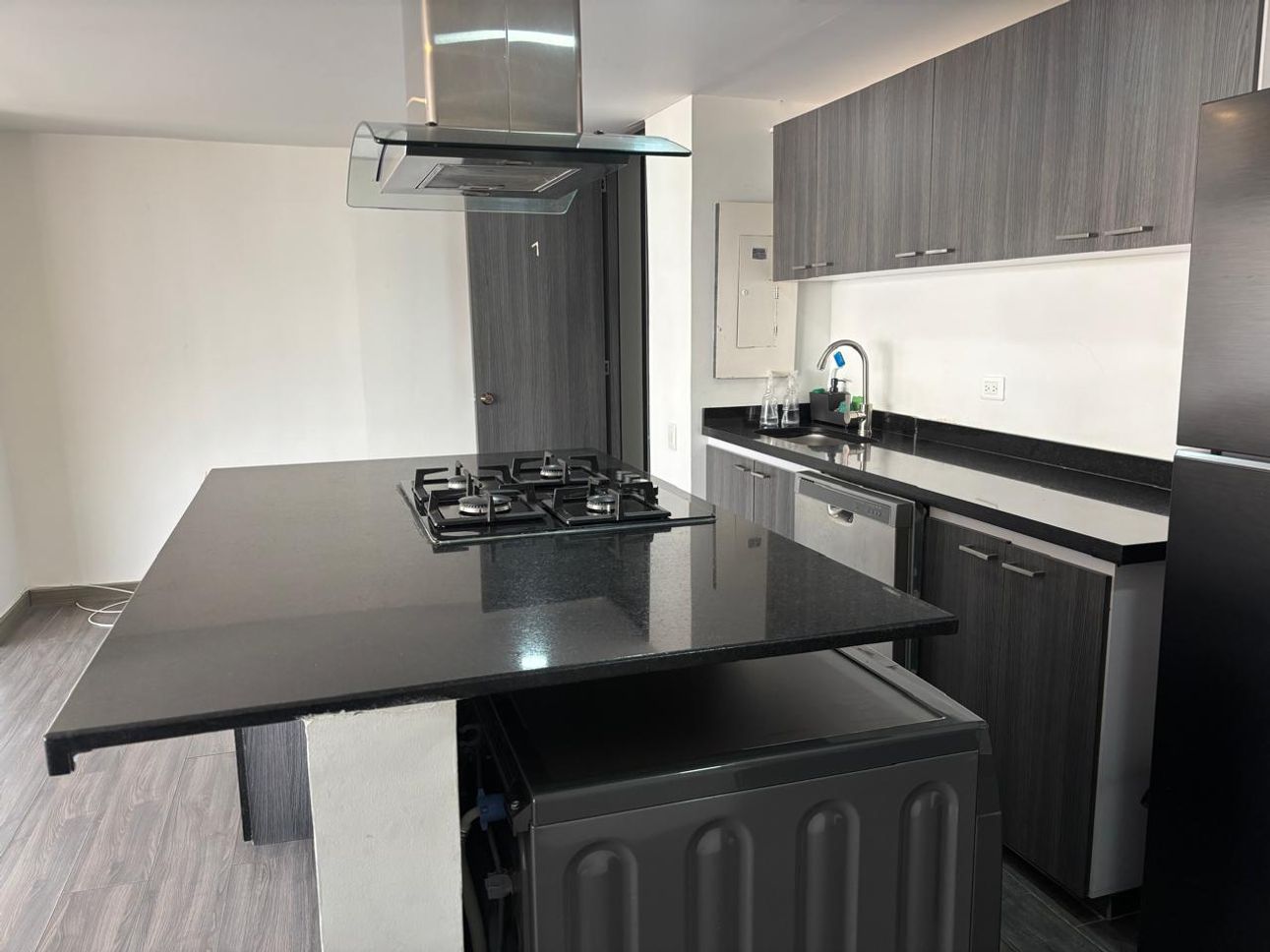 Cerca a la Clínica del Country y la Zona T. 60m2. Recién renovado, cocina tipo americana con mesón central, lavavajillas Whirlpool, nevera y lavadora Samsung, baño con cabina, pisos laminados, zona de lavandería, situado a una cuadra de la estación Héroes de Transmilenio y cerca al parque Virrey.