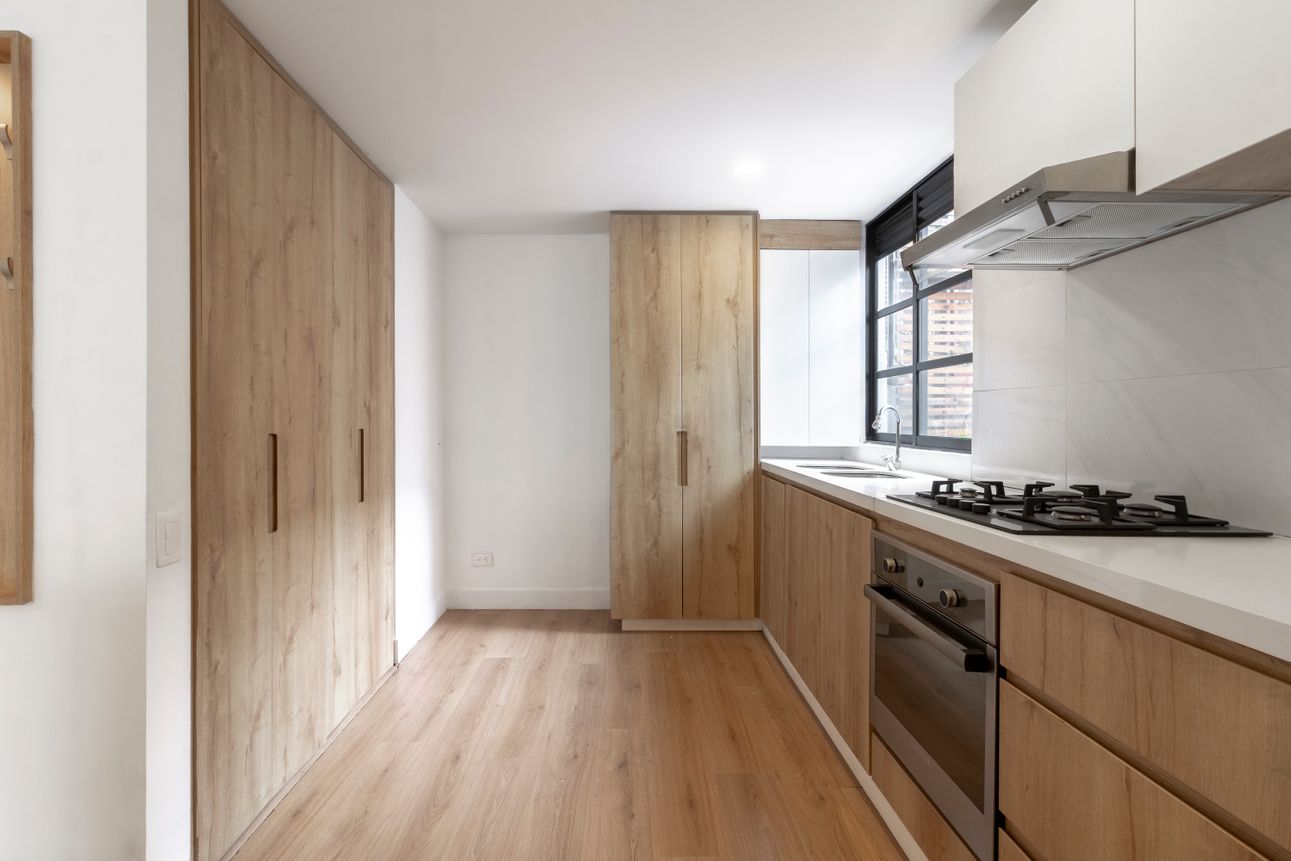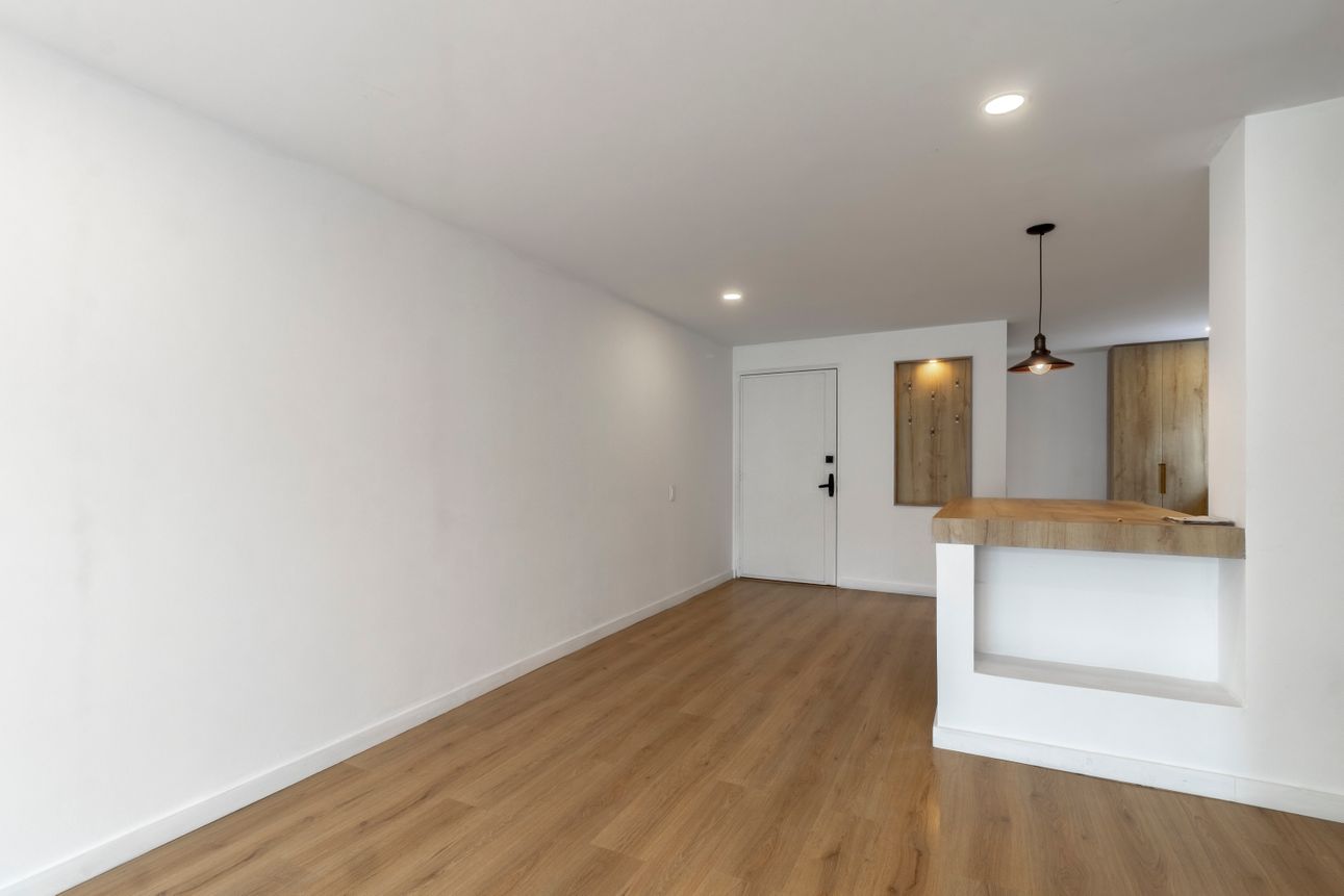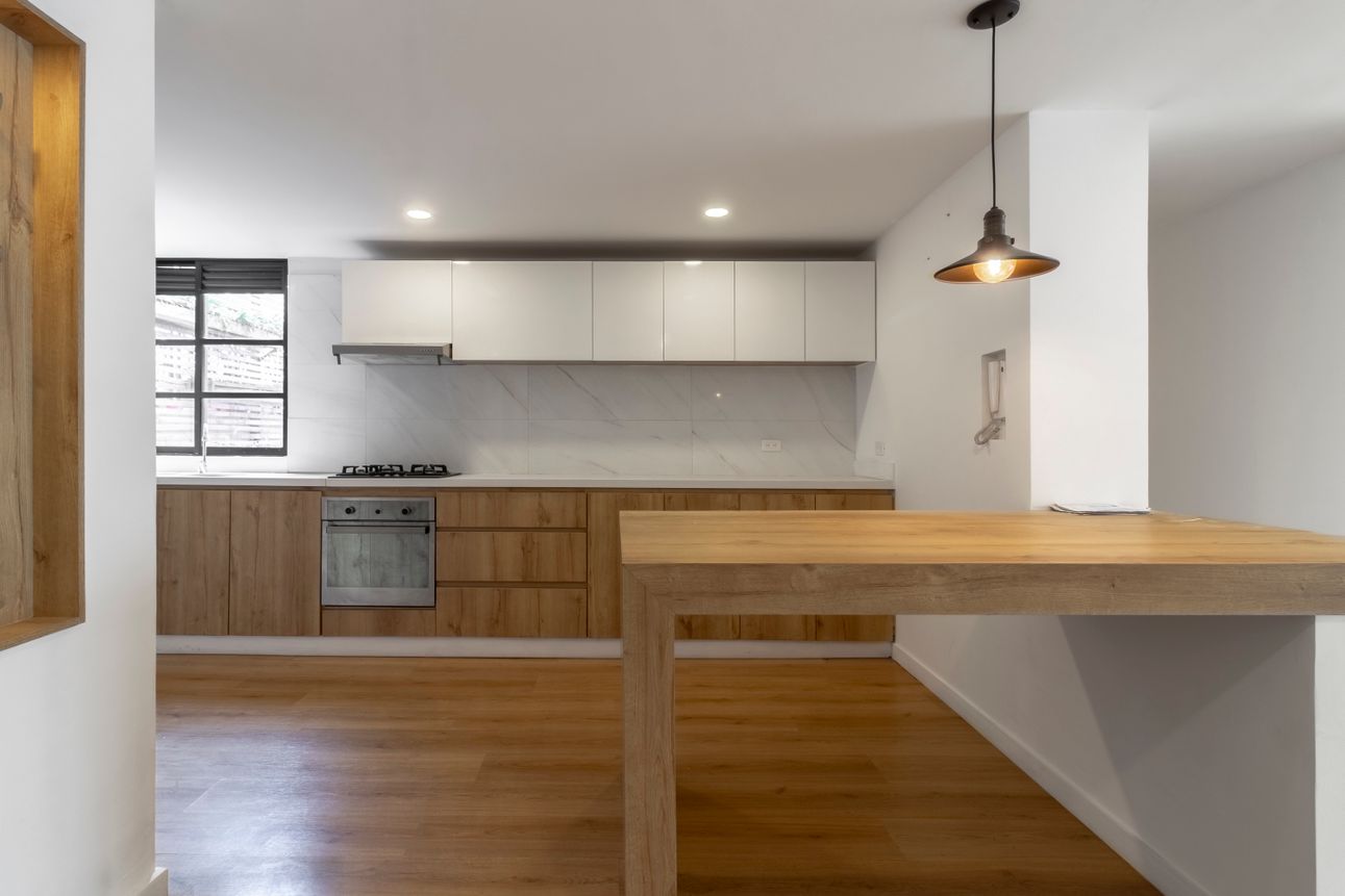 Al ingresar encontramos la sala -comedor con pisos laminados y la cocina abierta estilo americano, integral y equipada con lo necesario.