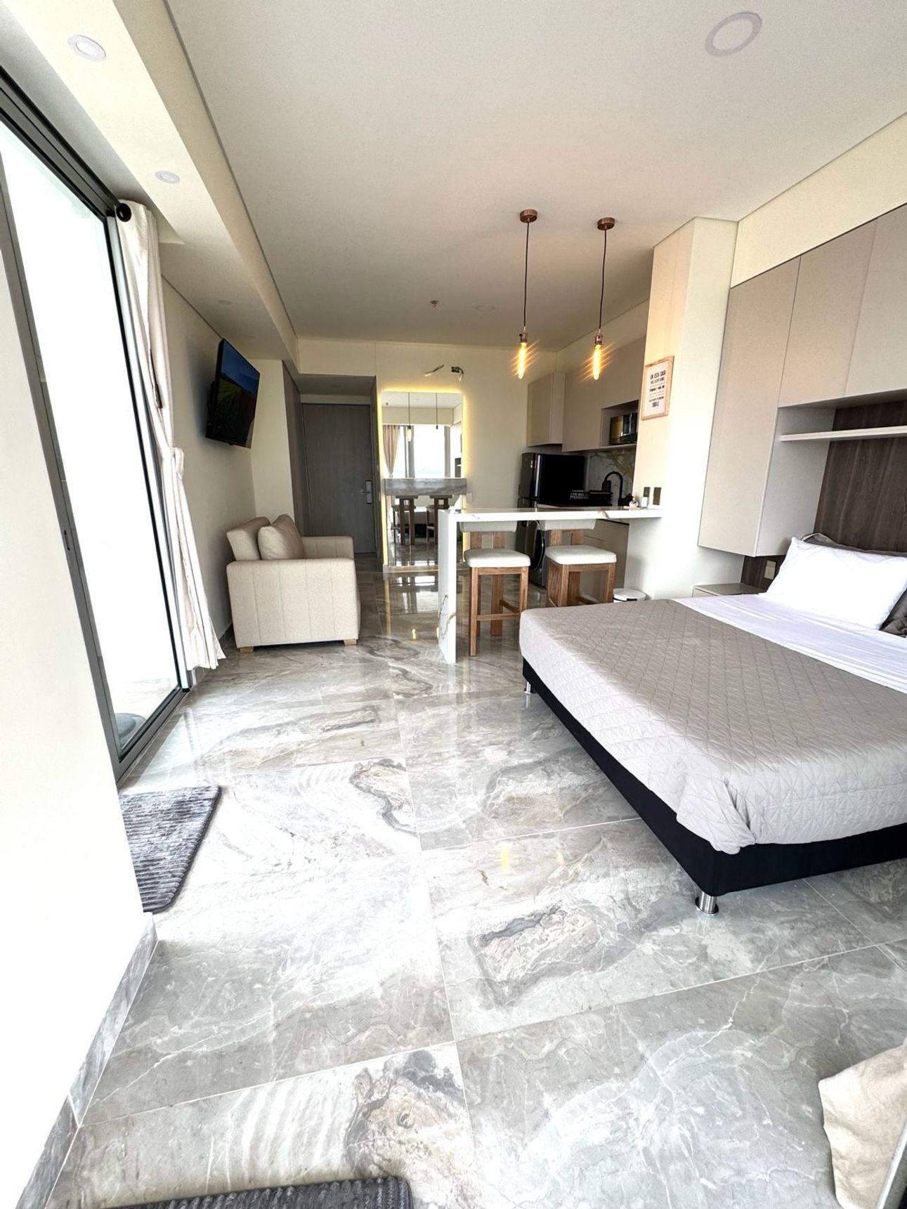 Ubicado en Crespo Cartagena de Indias, frente al malecon del mar, este apartamento tipo apartahotel a la venta es ideal para aquellos que desean una propiedad vacacional o para inversion que permita rentas cortas. Ubicado en el piso 14, ofrece una vista panorámica y al mar. Totalmente amoblado y con aire acondicionado, el apartamento cuenta con una cocina abierta, perfecta para reuniones casuales junto a la barra estilo americano.