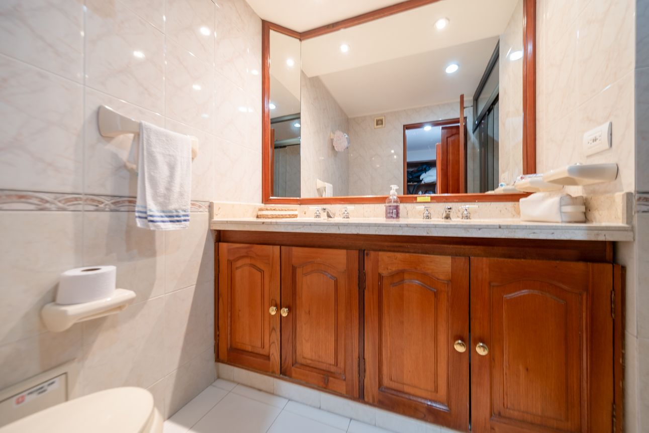 El apartamento se complementa con dos parqueaderos independientes y depósito.