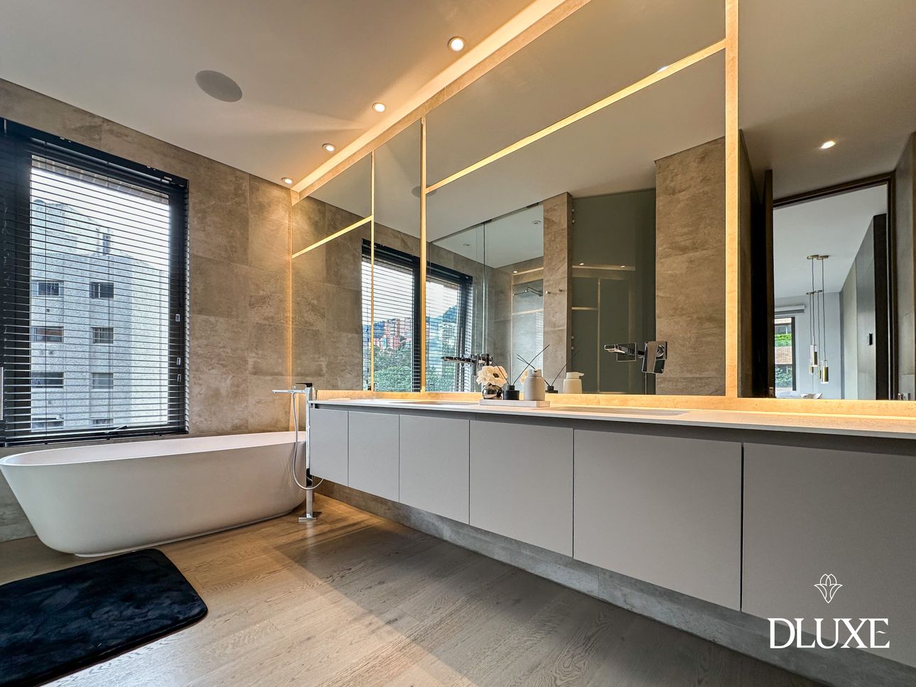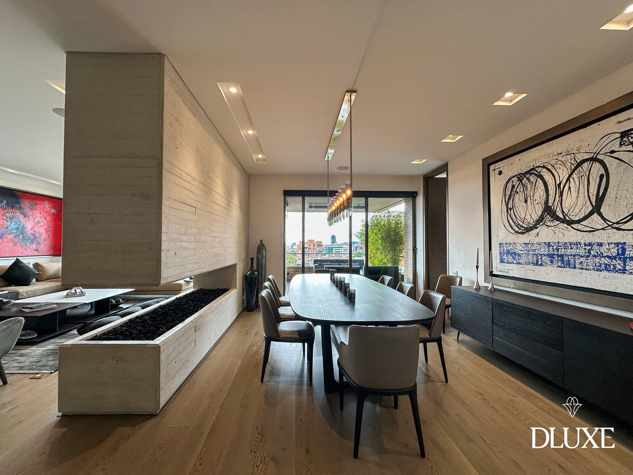 Dluxe presenta este espectacular apartamento de 320 m² en FORET, uno de los edificios más exclusivos de Bogotá por su ubicación, zonas comunes y entorno natural. Cuenta con balcón de 22 m² con vista al occidente y sol de la tarde, lo que garantiza luz y una atmósfera cálida en los espacios sociales.
