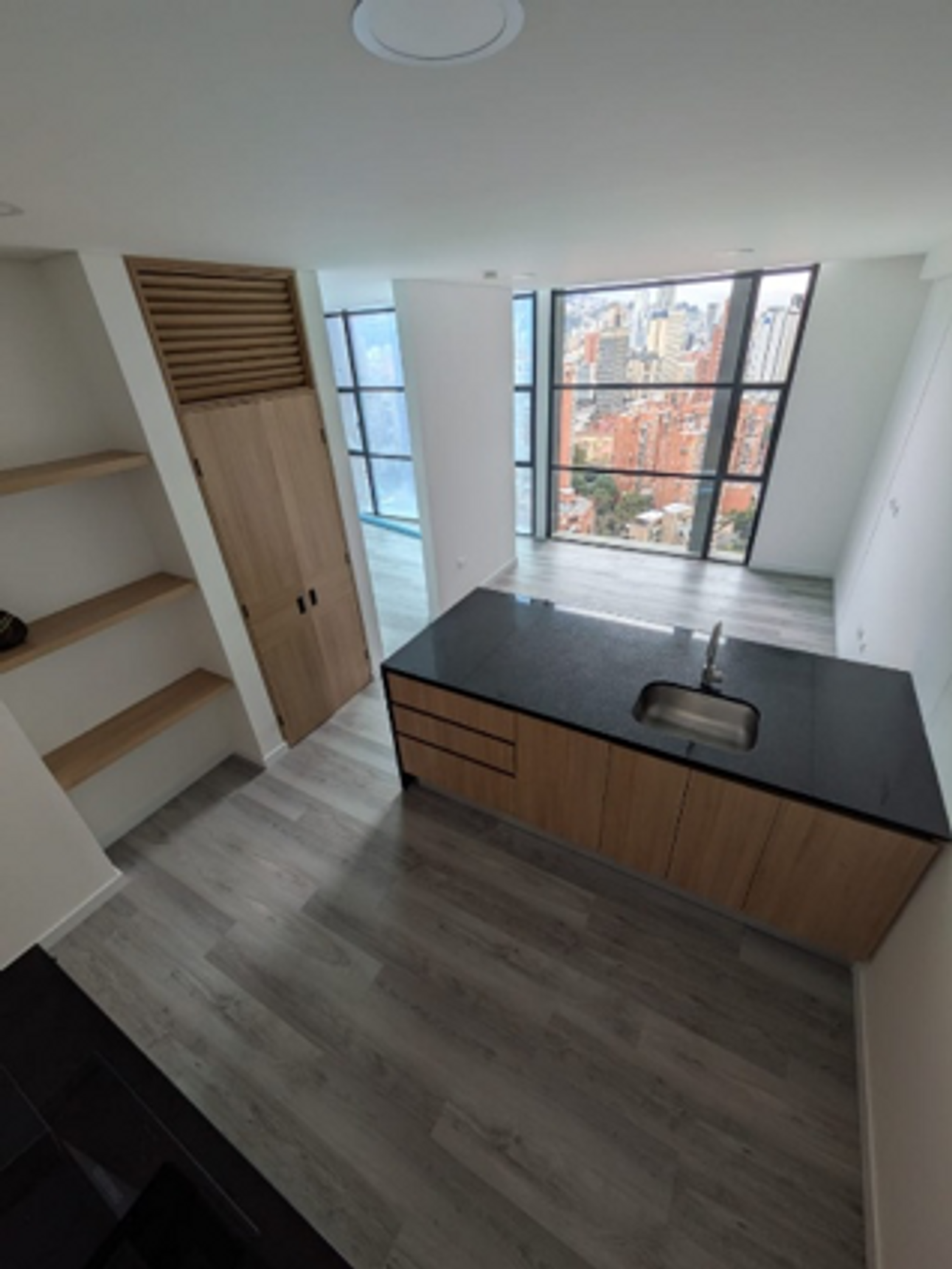 Acogedor apartaestudio de 42 m2 para estrenar ubicado en el piso 29 con una habitacion 1 baño , zona de lavanderia , con garaje con excelente ventilacion y iluminacion , excelentes vias de acceso , estacion de trasmilenio cerca. El edificio cuenta con Gimansio , zonas de coworking amplias terrazas de uso comunal.