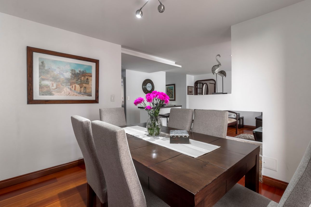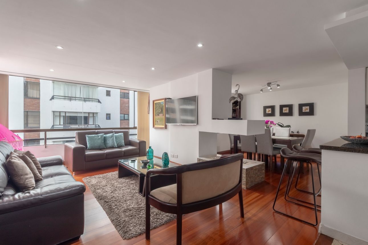 Al ingresar, te recibe el área social que integra la sala y el comedor con una cocina tipo americana, creando un espacio abierto y acogedor, perfecto para compartir y disfrutar. Sus pisos en madera y la buena entrada de luz natural aportan calidez y amplitud a todo el apartamento.