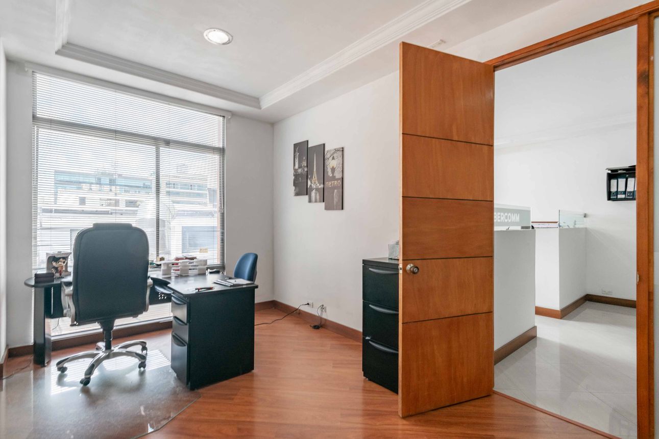 Esta oficina en venta ofrece una ubicación estratégica en una zona clave de Bogotá. Situada en el segundo piso, cuenta con un espacio amplio y versátil, ideal para cualquier negocio. Además, con seguridad 24 horas y parqueaderos de visitantes, también dispone de una terraza con una vista impresionante a la ciudad, ofreciendo un ambiente agradable para un descanso o reunión al aire libre. La oficina incluye planta eléctrica total y parqueadero cubierto.