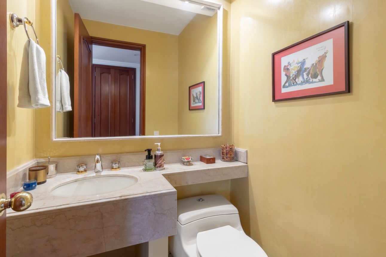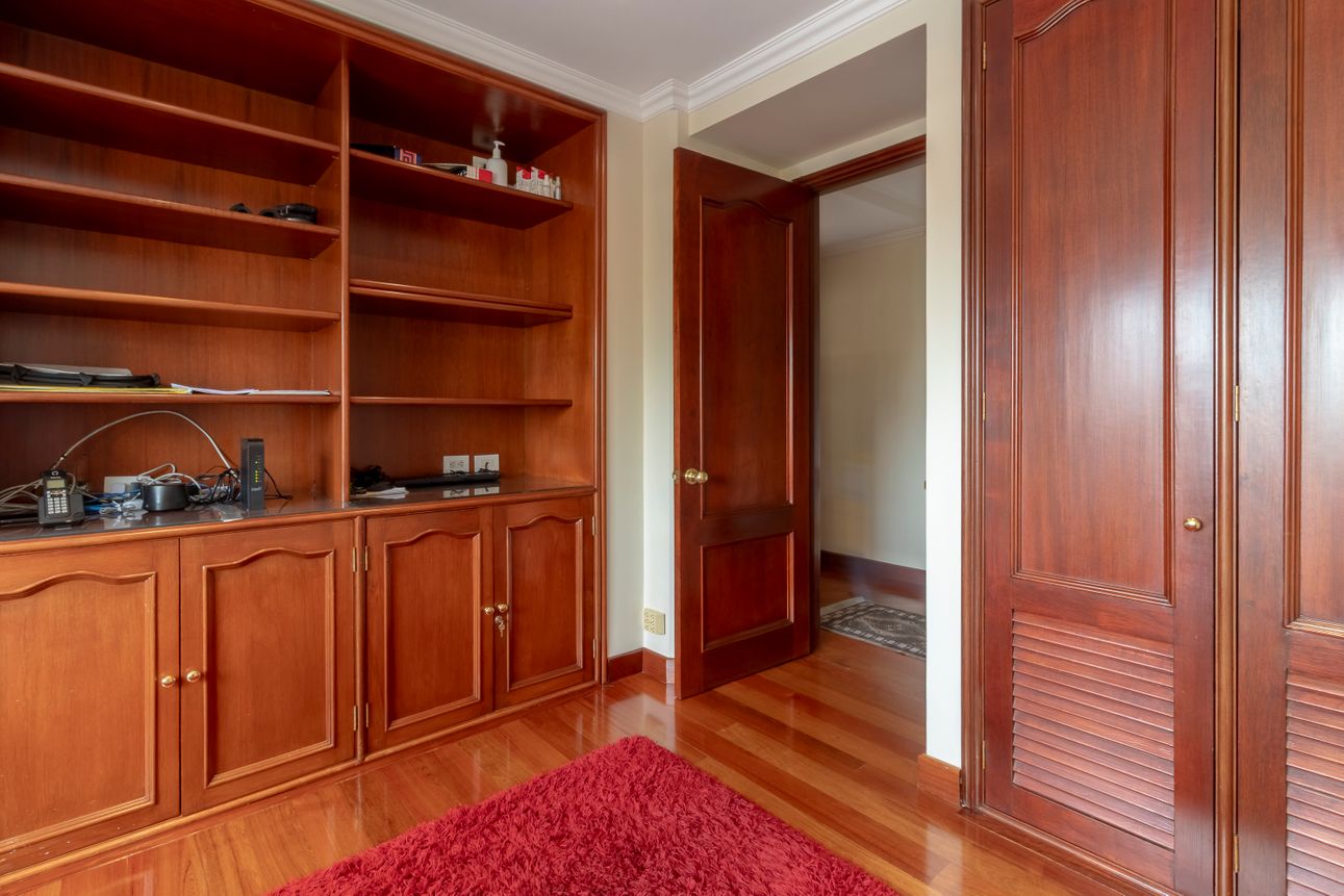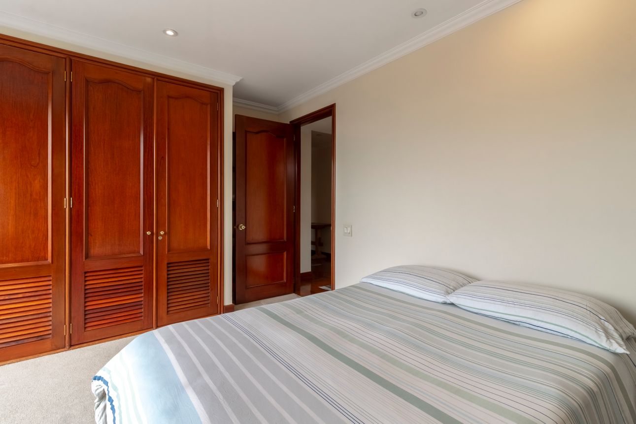 Con espacios amplios y bien distribuidos, el apartamento cuenta con cuatro habitaciones, una cocina integral y un área de lavandería. La sala de TV y el estudio ofrecen espacios cómodos para el trabajo y el entretenimiento. Además, la chimenea a leña añade un toque acogedor para compartir con los tuyos. La tranquilidad y la seguridad están garantizadas con 24 horas de vigilancia, puerta de seguridad y CCTV.
