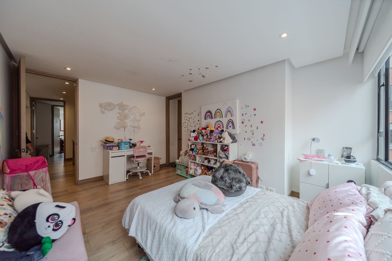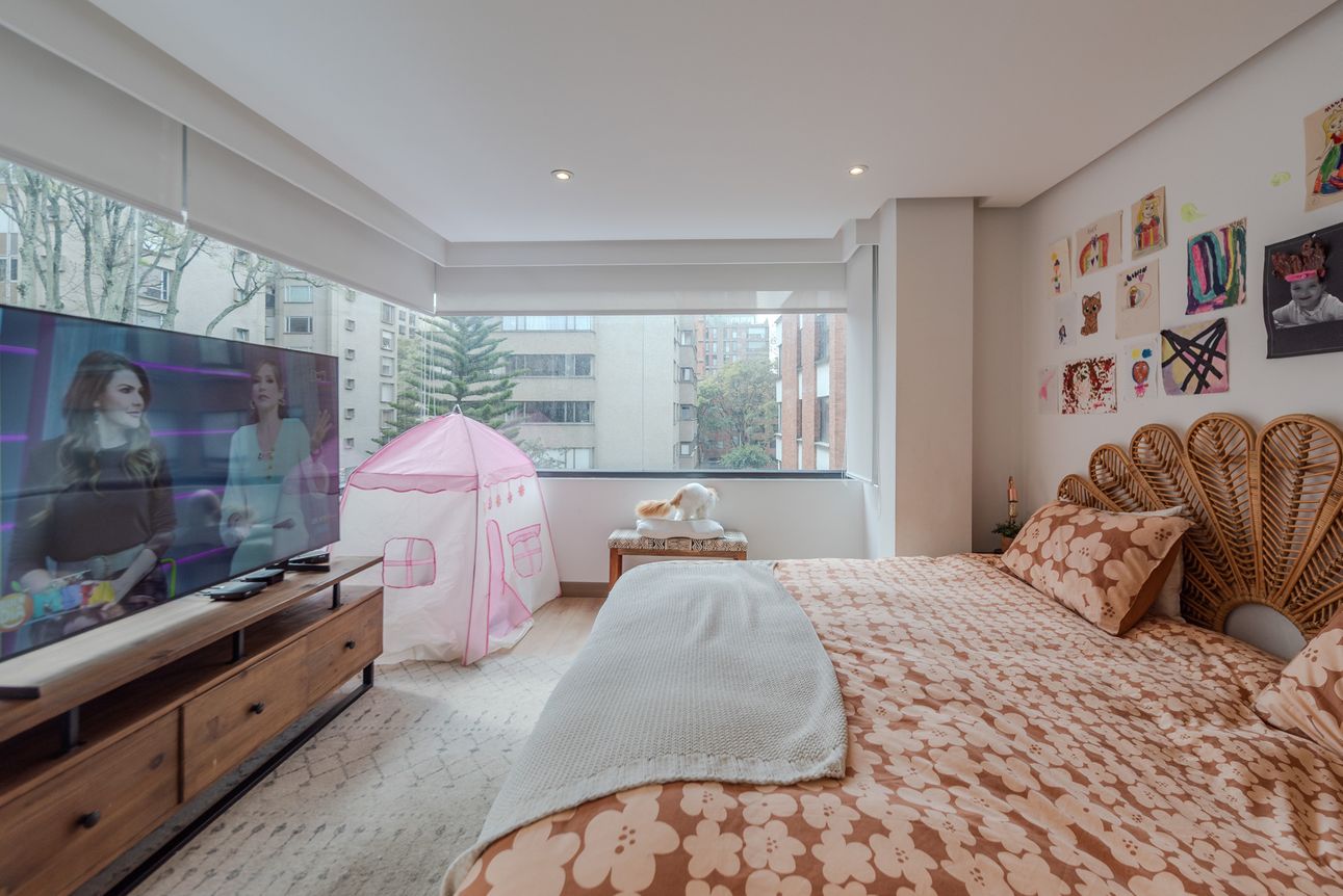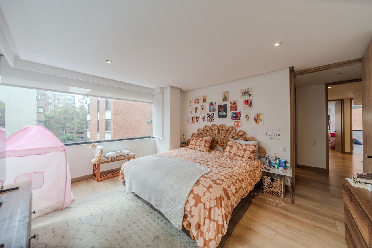 Espectacular apartamento completamente remodelado ubicado en el corazón de La Cabrera. El apartamento cuenta con amplia sala con excelente iluminación natural, estudio, baño social y comedor independiente, todo con espectaculares acabados. Cocina cerrada con comedor auxiliar y zona de lavandería independiente. Tres habitaciones, dos con baño privado y vestier. El apartamento cuenta con dos parqueaderos y depósito. El edificio tiene vigilancia 24 horas.
