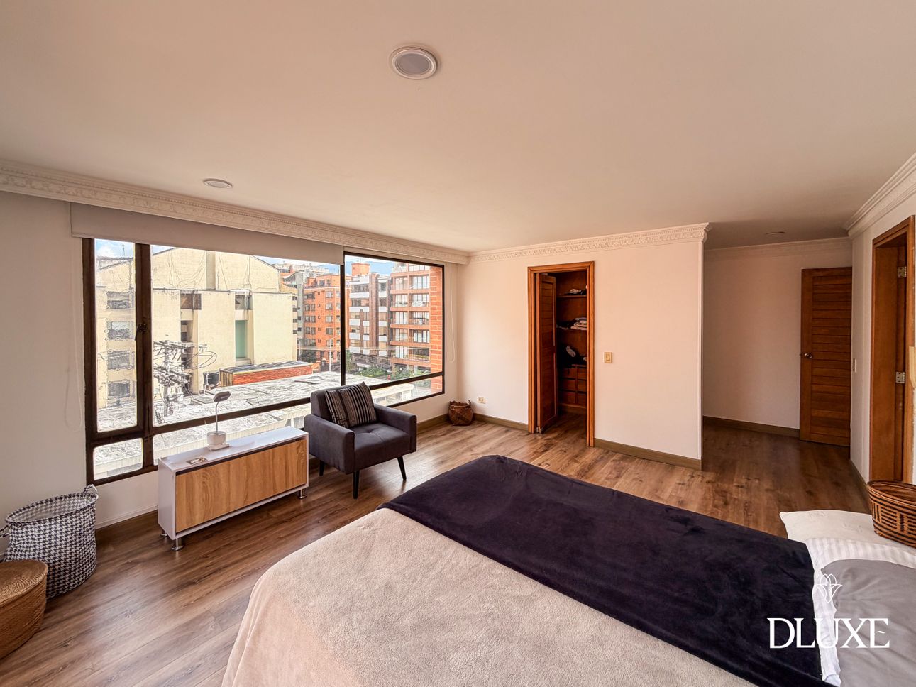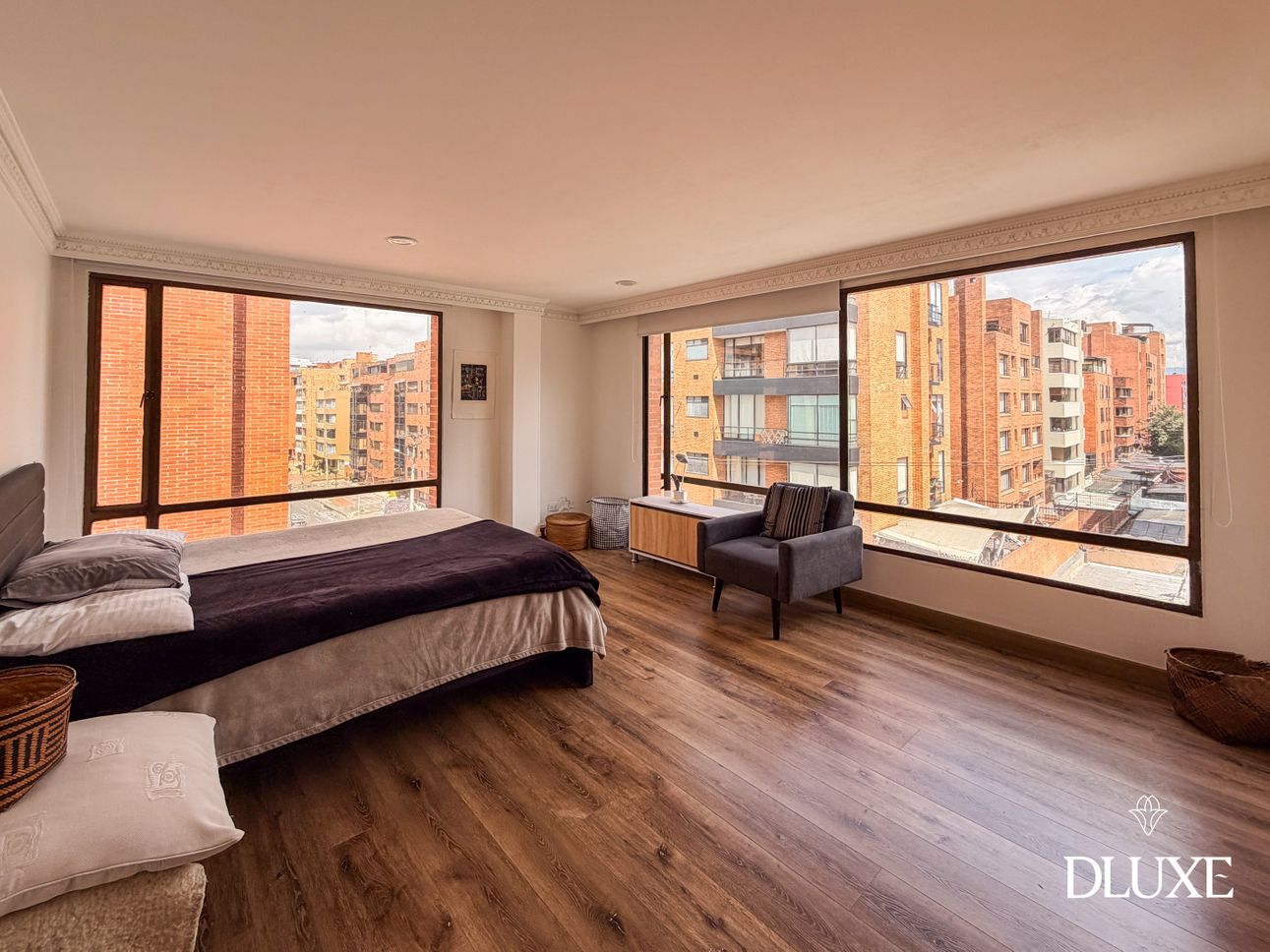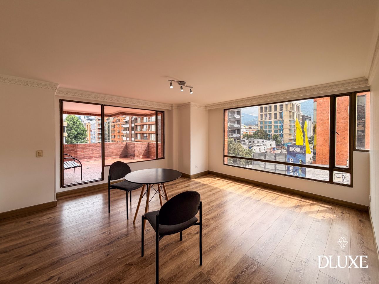 Dluxe presenta apartamento ubicado en Chicó, en un quinto piso esquinero que ofrece una privilegiada vista 360°, diseñado para quienes valoran el confort, la privacidad y una excelente ubicación. Cuenta con ascensor privado y una agradable terraza, espacios ideales para disfrutar del entorno y la iluminación natural.