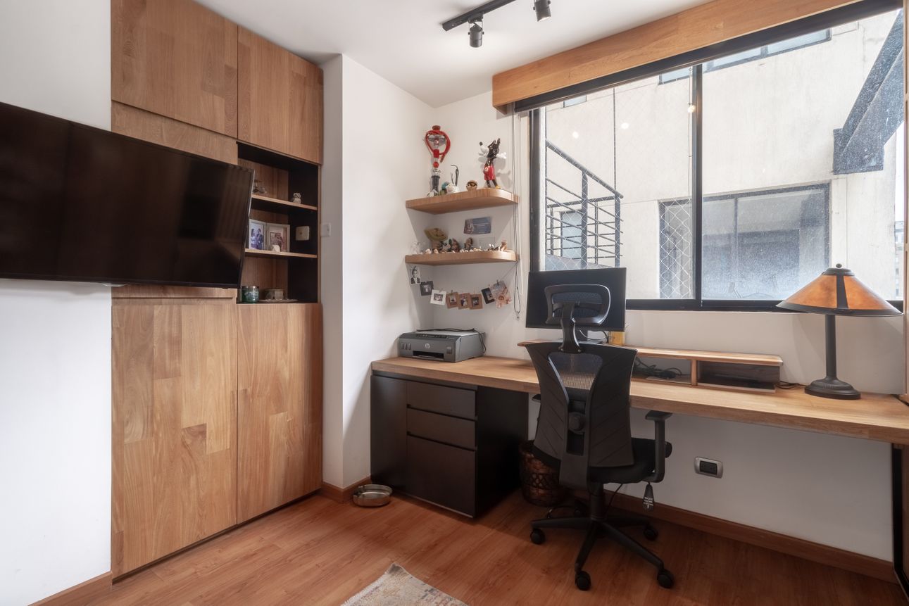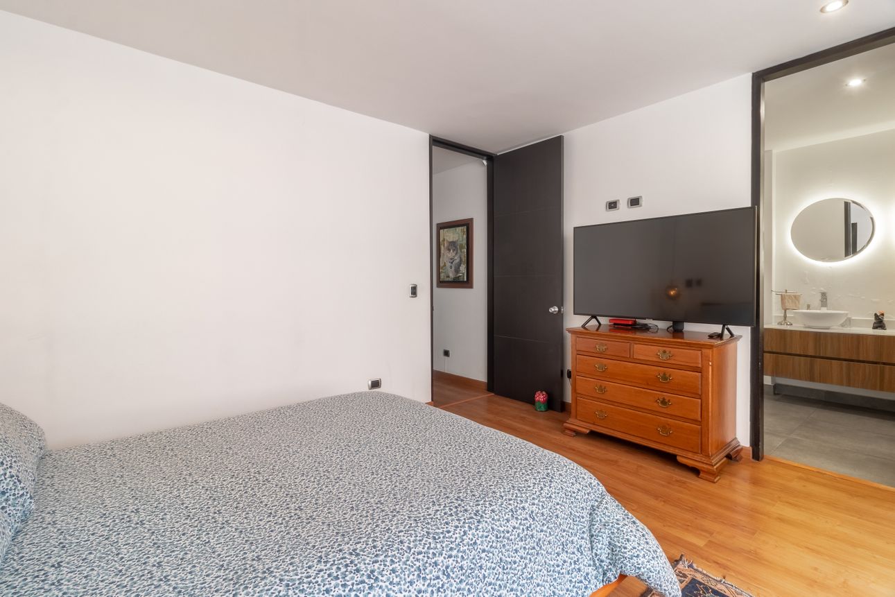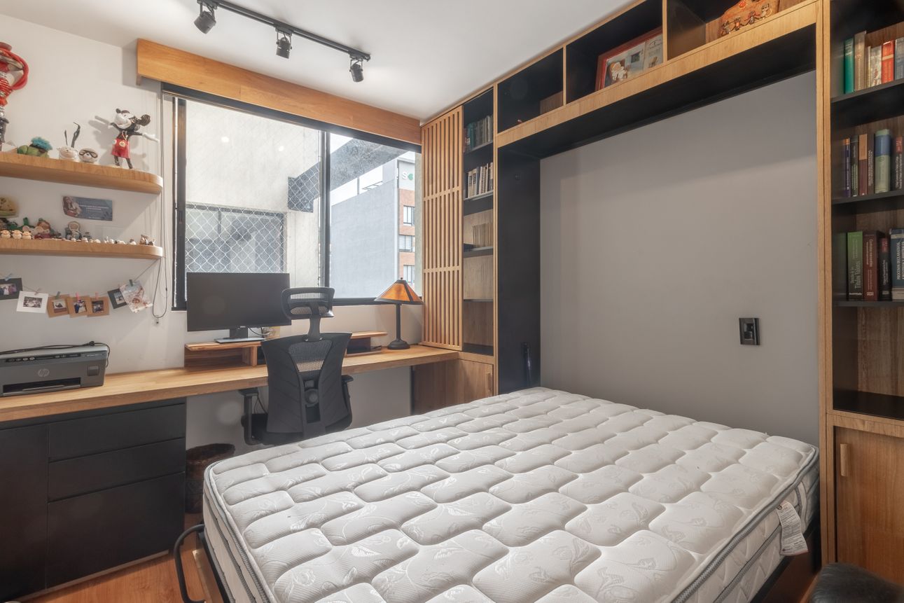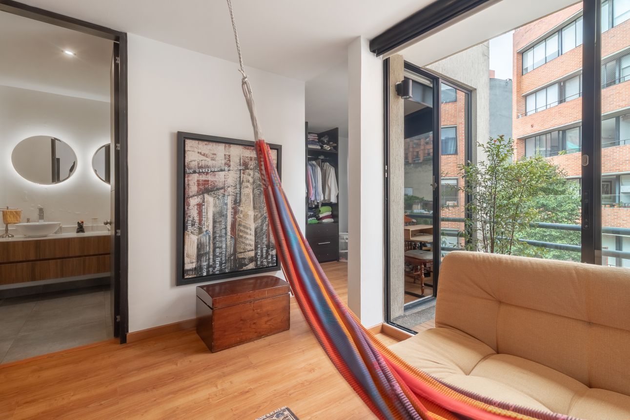 En Chapinero, este impresionante apartamento a la venta es la perfecta combinación de estilo y confort. Este penthouse, cuenta con dos habitaciones y una distribución que resalta la amplitud gracias a su doble altura en la zona social. Los acabados son de la más alta calidad, destacándose la madera flormorado en el interior y la terraza con jacuzzi que brilla con su madera de teca. La cocina abierta invita a disfrutar de una experiencia gastronómica única, complementada por una sala-comedor con chimenea ideal para momentos acogedores.