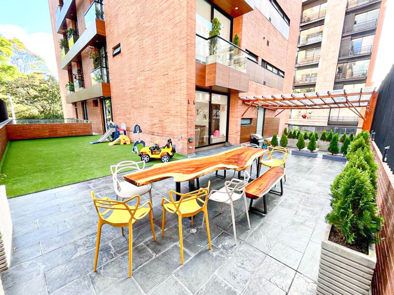 El apartamento es práctico y funcional, incluyendo detalles como un cuarto de servicio y un área de lavandería para facilitar el día a día. Para los que aman cocinar, la barra estilo americano es ideal para charlar mientras preparas tus platillos favoritos. Además, las mascotas son bienvenidas, así que no tendrás que preocuparte por dejar a tu mejor amigo atrás.