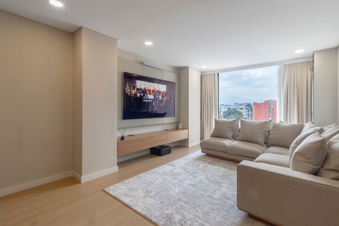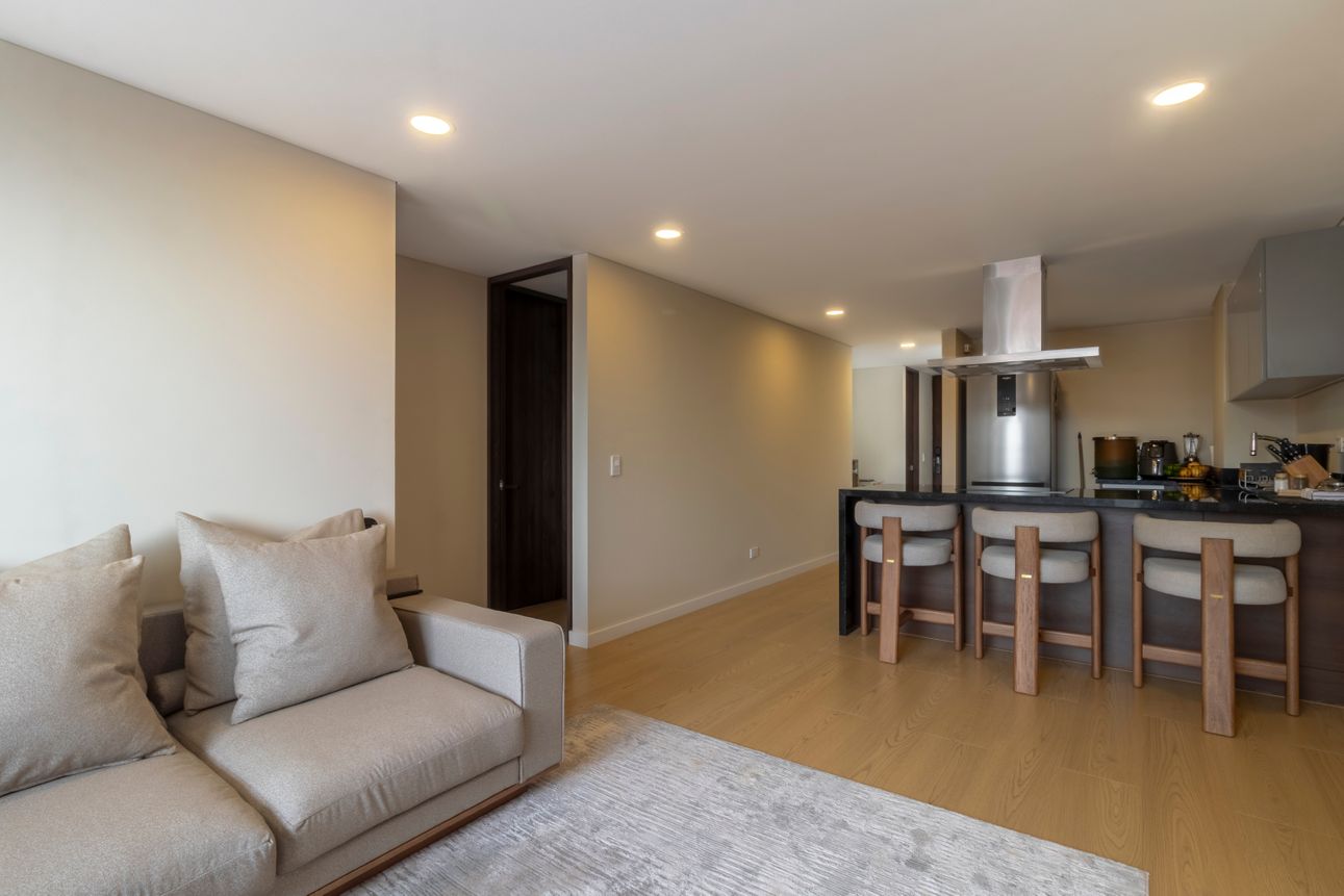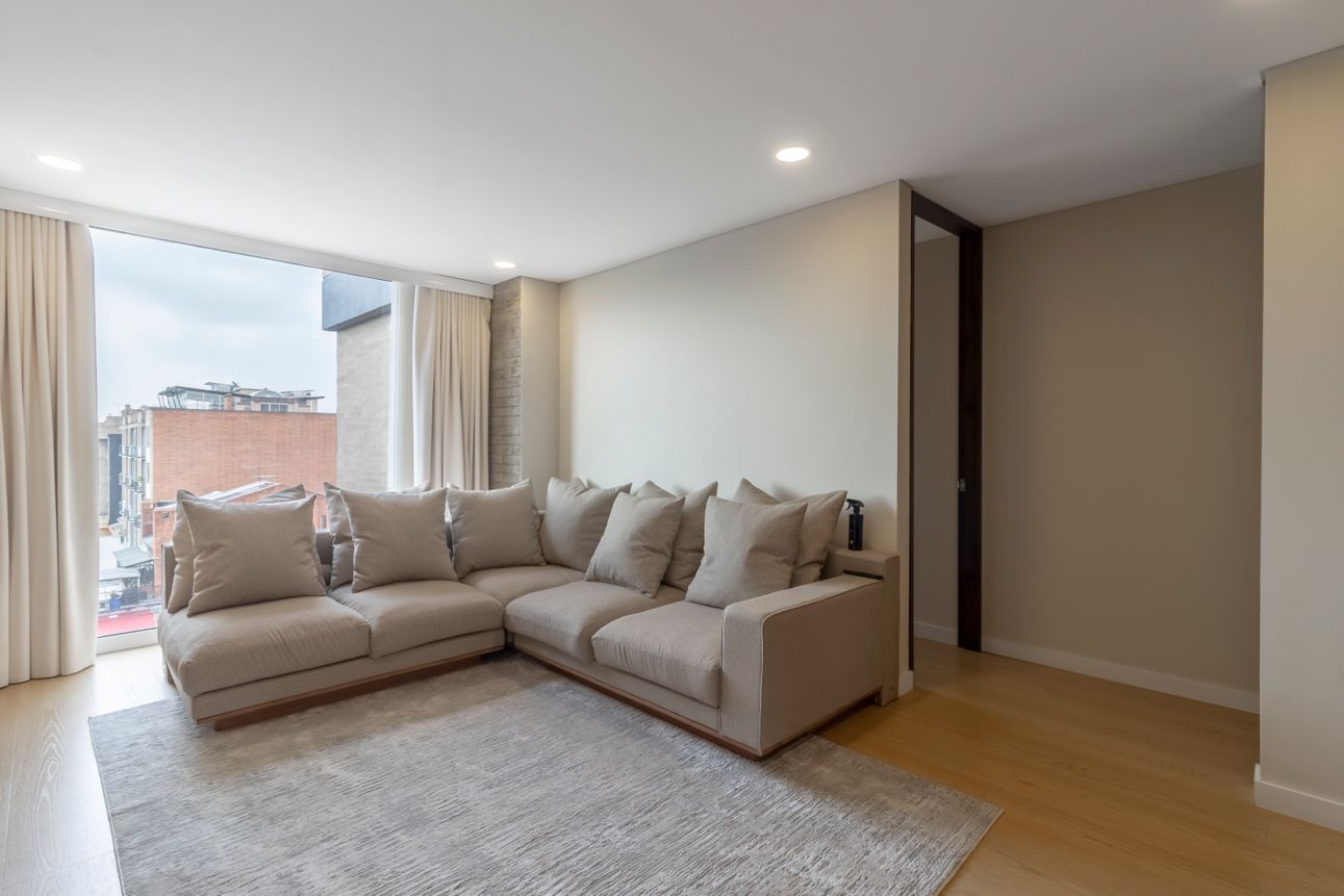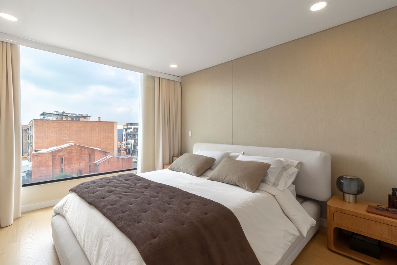 Apartamento ubicado en la zona Norte de Bogotá. Este dúplex tiene 89m2, vista exterior, sala, comedor, cocina abierta, zona de lavandería, dos alcobas, cada una con su baño completo, walking closet en la alcoba ppal, un estudio con iluminación natural, baño auxiliar y una zona de perchero amplia y cómoda. Además cuenta con cortinas automatizadas y elementos decorativos únicos.