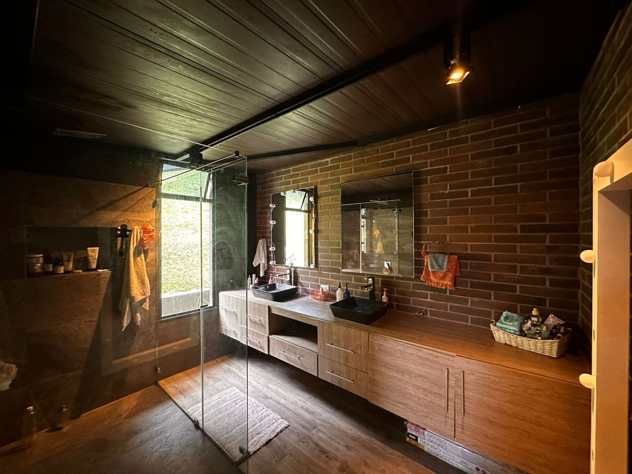 La casa campestre en Envigado, Antioquia es un remanso de tranquilidad entre el bosque nativo, con un lote de 2790 m² y 320 m² construidos. Ofrece una vista panorámica hacia las montañas y el bosque, ideal para disfrutar en la terraza o junto a la chimenea a leña. Las 3 habitaciones cuentan con baño privado, asegurando comodidad para toda la familia, además de un cuarto de servicio con baño.