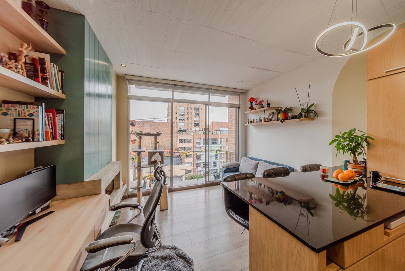 El apartamento cuenta con una cocina de diseño abierto perfecta para los amantes de la cocina, una amplia sala-comedor ideal para recibir invitados y una cómoda habitación con un vestier listo para organizar tus pertenencias. Además, cuenta con una terraza donde podrás disfrutar de una taza de café mientras aprecias las vistas de la ciudad. La seguridad es primordial; el apartamento cuenta con vigilancia las 24 horas, intercomunicador y circuito cerrado de televisión.