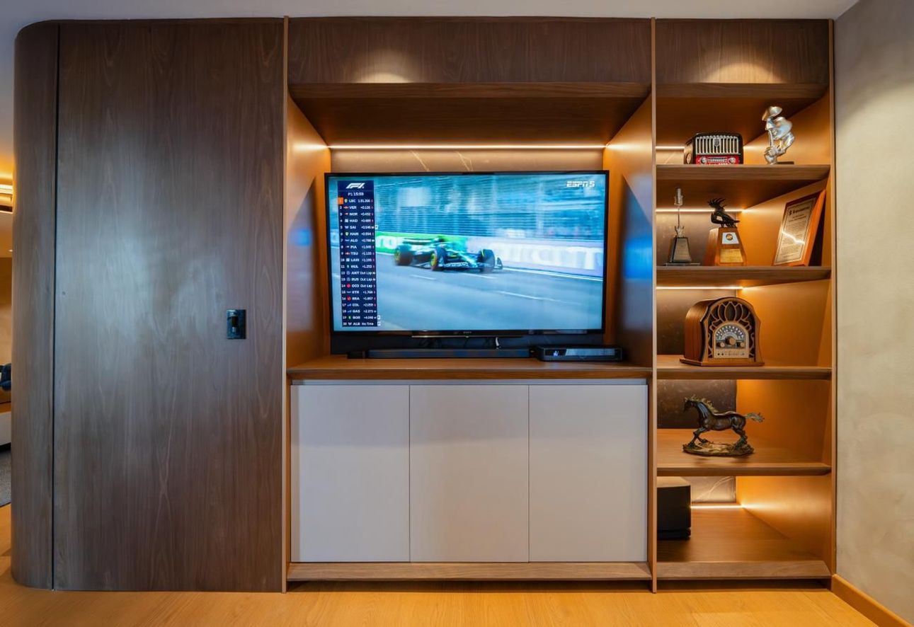 La sala recibe con una cálida chimenea, ideal para calentar esas noches frescas. La cocina, con su barra estilo americano, es el lugar perfecto para compartir momentos especiales mientras cocinas. El edificio ofrece lujosas comodidades como ascensor, lobby de bienvenida, áreas verdes y parqueaderos de visitantes para que disfrutes al máximo tu nuevo hogar.