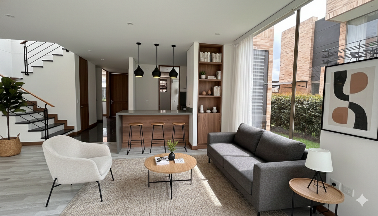 La casa en Cajicá es perfecta para disfrutar de un entorno tranquilo y seguro en un conjunto cerrado. Al entrar, la cocina abierta con barra estilo americano te invita a compartir momentos especiales. La sala se extiende hacia la terraza, ideal para disfrutar de la vista panorámica y las áreas verdes. Este hogar tiene tres habitaciones, cada una ofreciendo espacio y comodidad. También cuenta con un estudio y un cuarto de servicio, lo que brinda opciones adicionales para el uso personal.