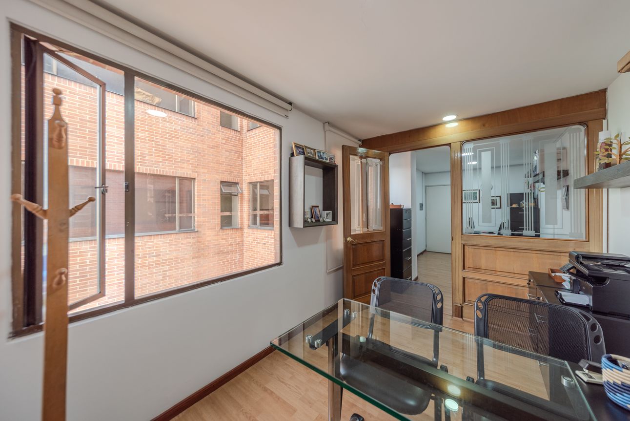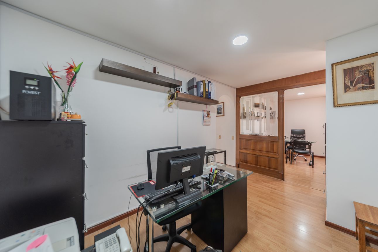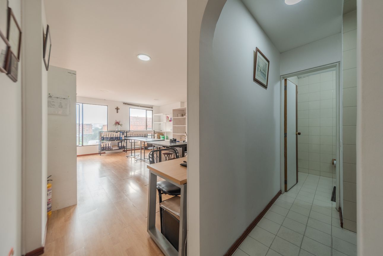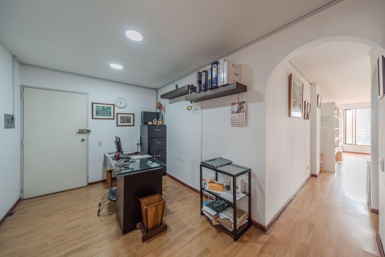 Bonita oficina con excelente ubicación en San Patricio. Ubicada sobre la Carrera 15 con 106. Cuenta con 3 espacios y un baño. En un Quinto piso interior con excelente iluminiación natural. El servicio de acueducto está incluido en el valor de la administración. Adicionalmente, el edificio cuenta con acceso para dispacitados, servicio de recepción, chip de ingreso, baños por piso y cocineta. Idea para consultorio, oficina de abogado, pequeña agencia, etc.
