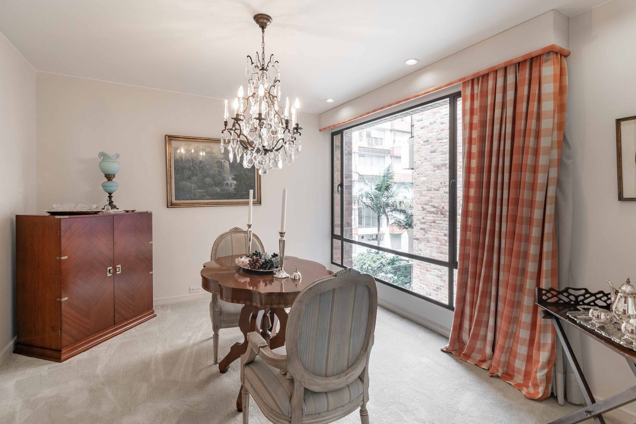 Descubre un encantador apartamento en venta ubicado en el exclusivo sector de Chico, Bogotá. Con una hermosa vista a la ciudad para disfrutar de momentos especiales, este apartamento cuenta con espacios amplios y bien distribuidos, perfectos para la vida familiar. El salón principal, adornado con una cálida chimenea a leña, se convierte en el lugar ideal para relajarse tras una larga jornada, mientras que el comedor invita a disfrutar de reuniones con amigos y familiares.
