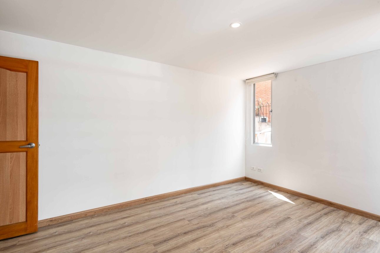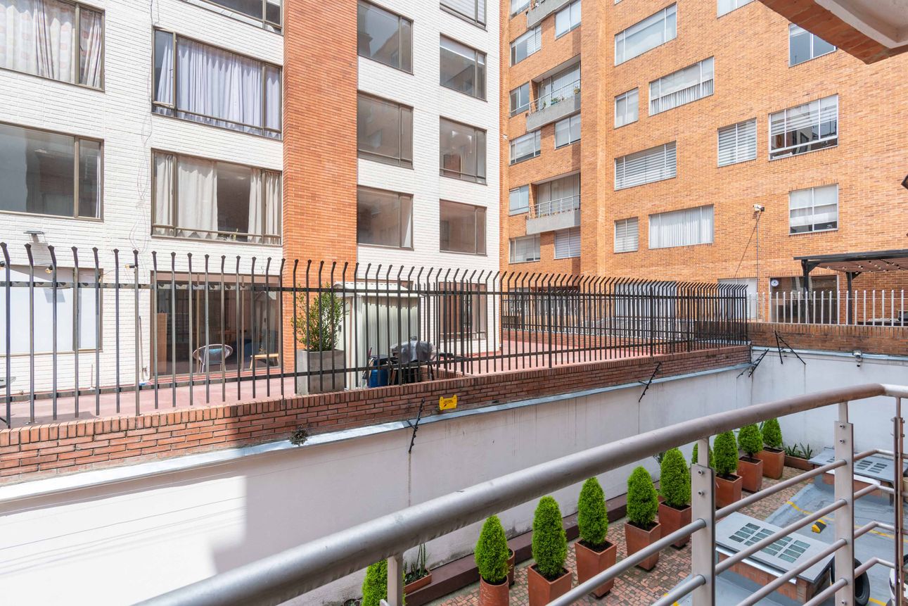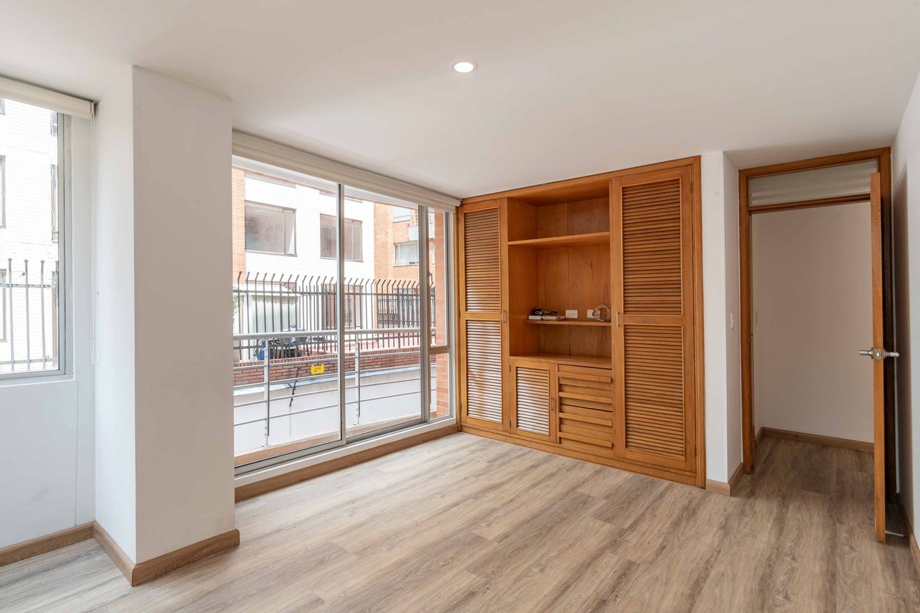 La propiedad cuenta con un dormitorio acogedor y closets amplios que aportan gran comodidad. La vista a la ciudad desde el apartamento permite conectar con la energía de Bogotá. La seguridad es una prioridad, por eso incluye vigilancia las 24 horas. Además, el apartamento dispone de un parqueadero cubierto, depósito y acceso a una sala de reuniones.