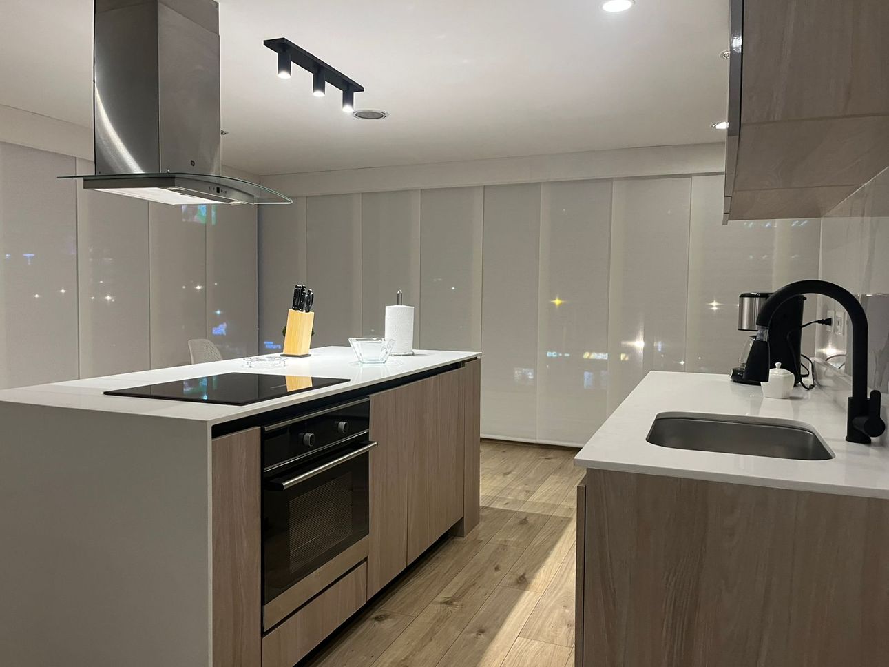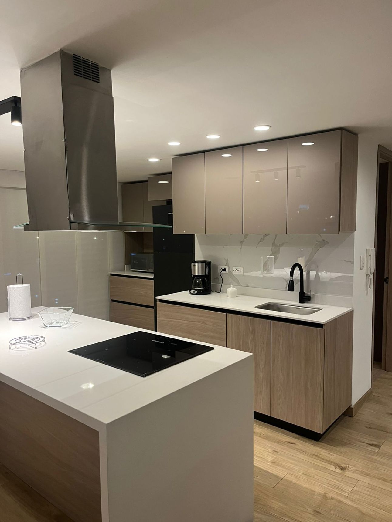 Sobre la calle 100, uno de los sectores más reconocidos de Bogotá, se encuentra este encantador apartamento ideal para quienes buscan comodidad y estilo. Ubicado en un cuarto piso, ofrece una vista espectacular a la ciudad que se puede disfrutar desde el su gran ventanal de techo a piso. La cocina es abierta y moderna, equipada con estufa eléctrica y barra estilo americano, lo que la convierte en el lugar ideal para compartir momentos culinarios con amigos y familia.