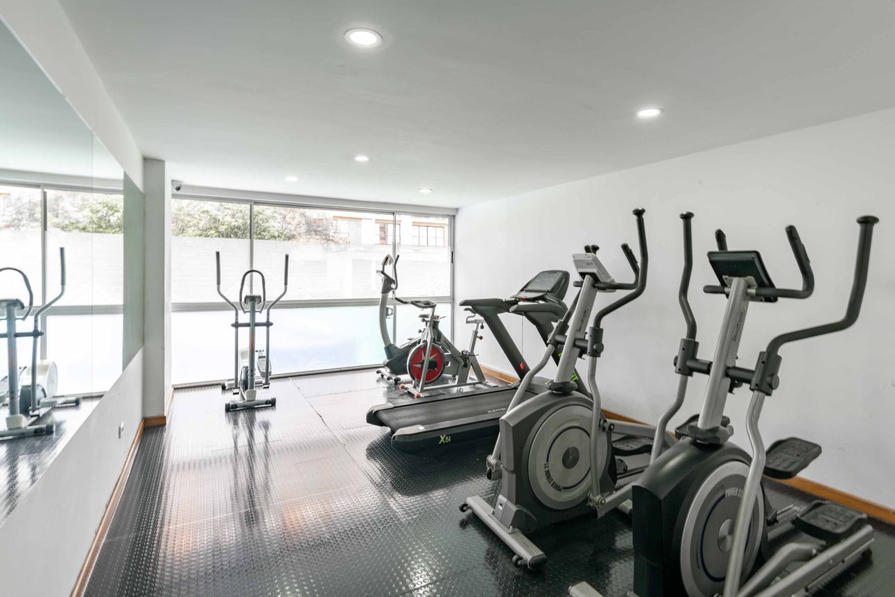 El edificio ofrece una amplia variedad de comodidades pensadas para el disfrute de todos. Podrás mantenerte activo en el gimnasio, desafiar a tus amigos en la cancha de squash o relajarte en el sauna. Para los más pequeños hay juegos infantiles y, si quieres organizar eventos, el salón comunal es perfecto. Además, con la tranquilidad de contar con seguridad las 24 horas, vivir aquí es todo un privilegio.