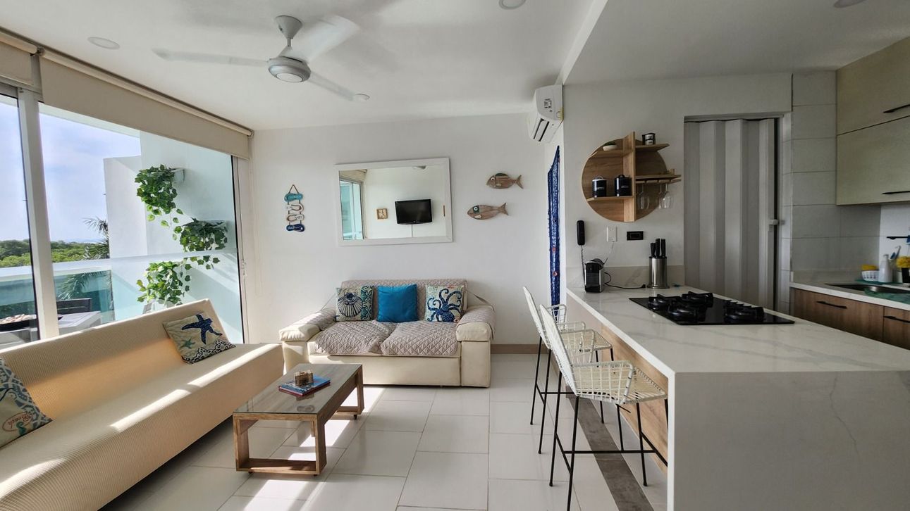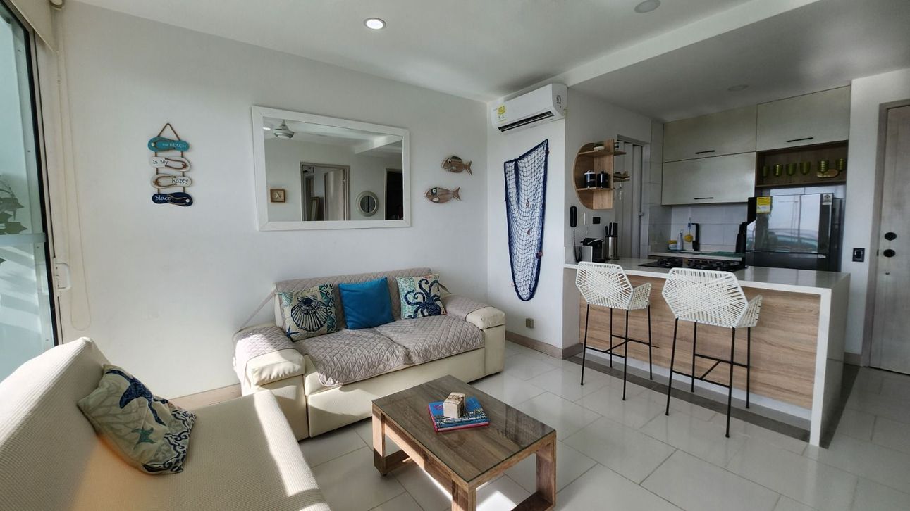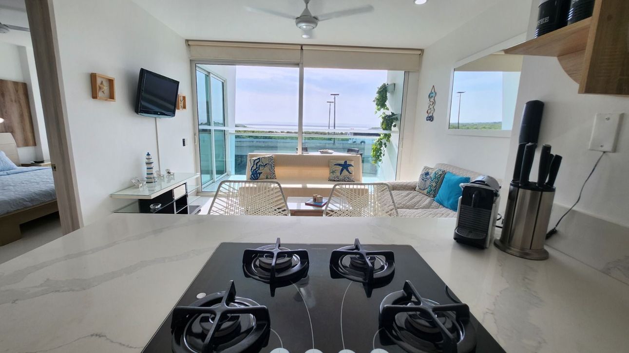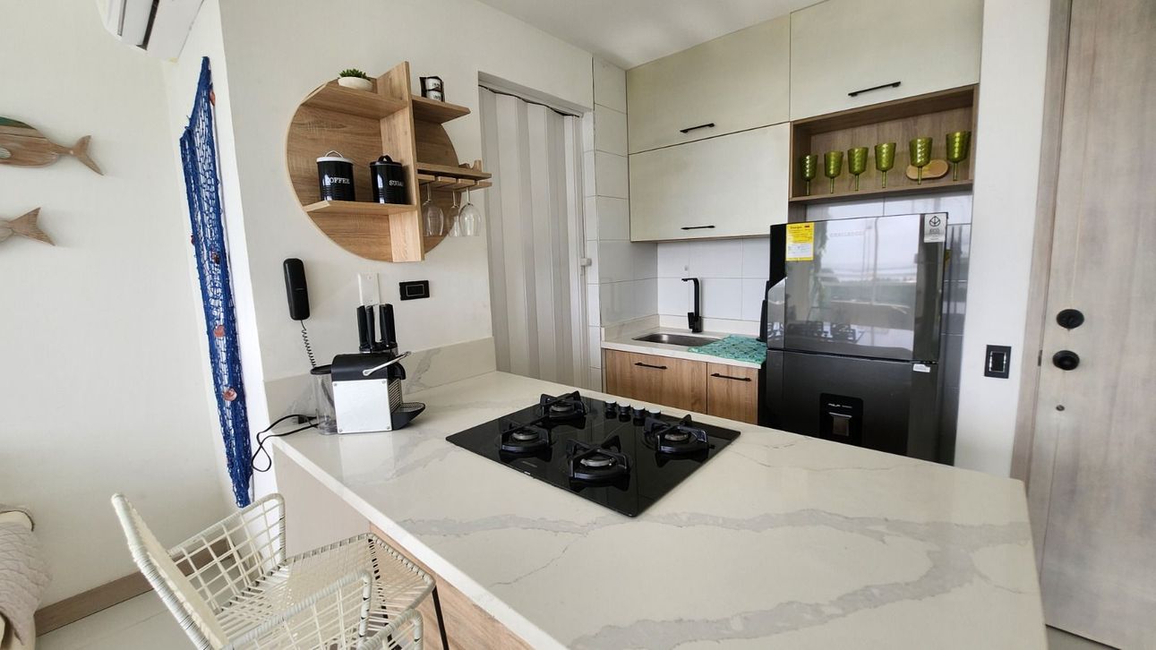 Descubre este encantador apartamento en Cartagena de Indias, perfecto para quienes buscan un espacio moderno y cómodo con una vista espectacular a la ciénaga. Totalmente amoblado y recientemente remodelado, cuenta con una habitación y dos baños, además de una cocina abierta que invita a disfrutar de momentos gastronómicos. La zona de lavandería y el balcón añaden un toque adicional de comodidad y estilo.