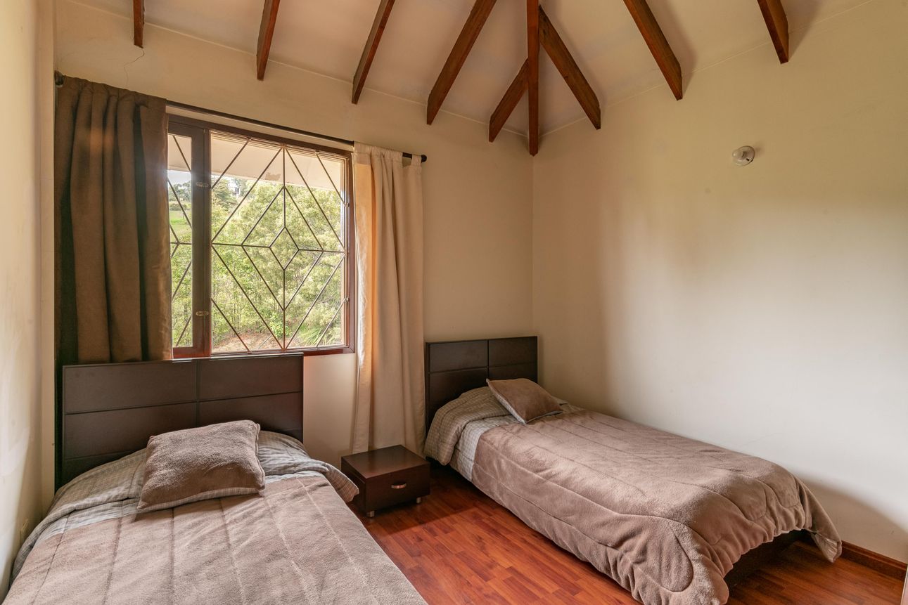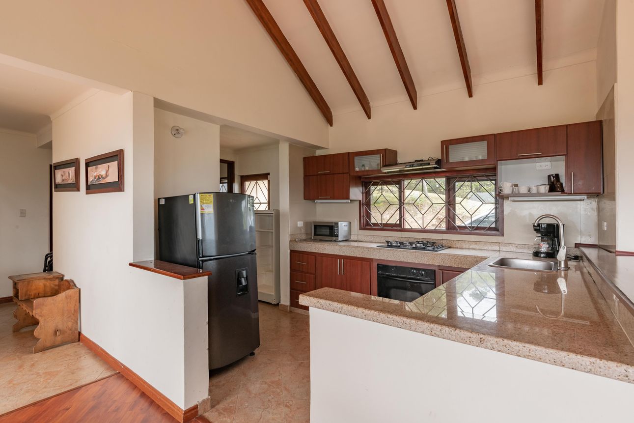La finca cuenta con características únicas como chimenea a leña, sauna y piscina, ideales para relajarse después de un paseo por el gran jardín. En la cocina integral, la despensa y la cocineta se combinan en un espacio funcional y acogedor. Además, para quienes valoran la seguridad, hay puerta de seguridad, CCTV y un celador que vigila el lugar. Los días soleados pueden disfrutarse en la terraza o en la zona BBQ.