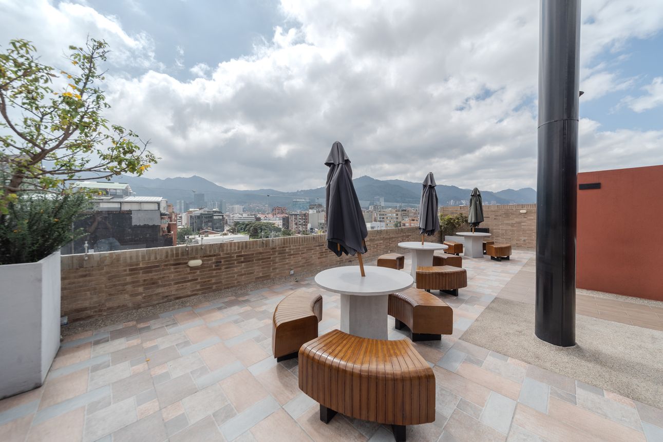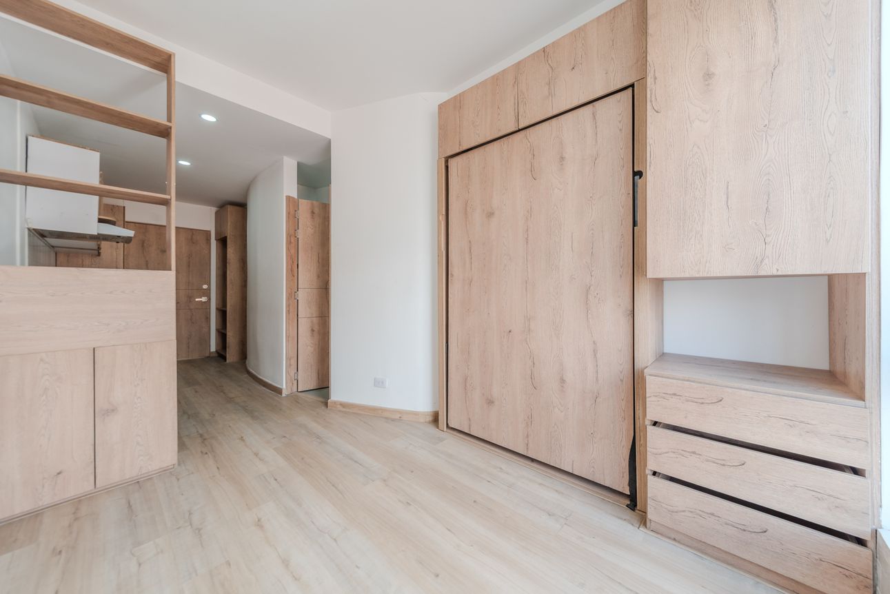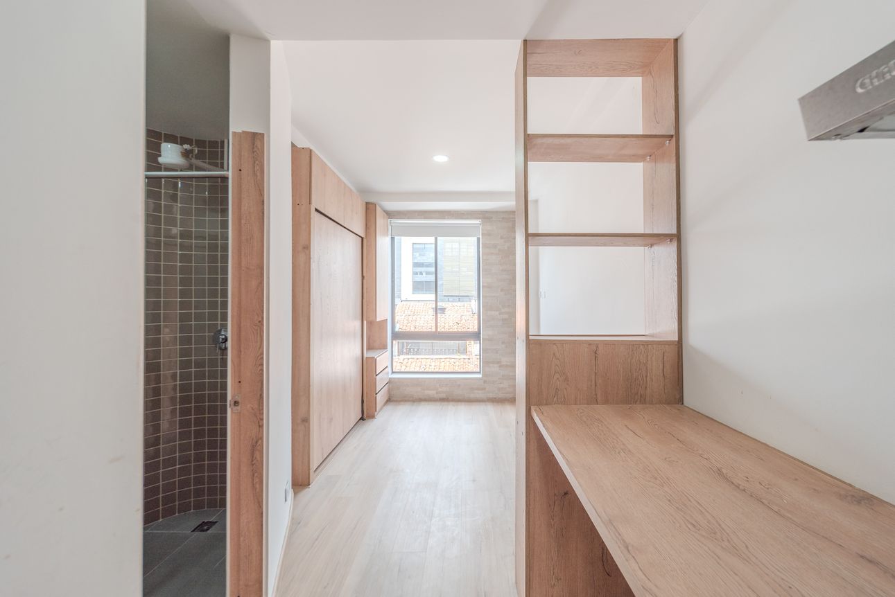Moderno apartaestudio tipo loft ubicado en Santa Bárbara con todo lo que necesitas para vivir cómodo sin salir del edificio. El apartaestudio cuenta con cocina abierta, zona de mesa o estudio, baño completo y mueble cama recogible. Por su parte, el edificio cuenta con coworking, excelente gimnasio, salón comunal, parqueadero de visitantes, ascensor, vigilancia 24 horas y espectacular terraza para que no te aburras un minuto.
