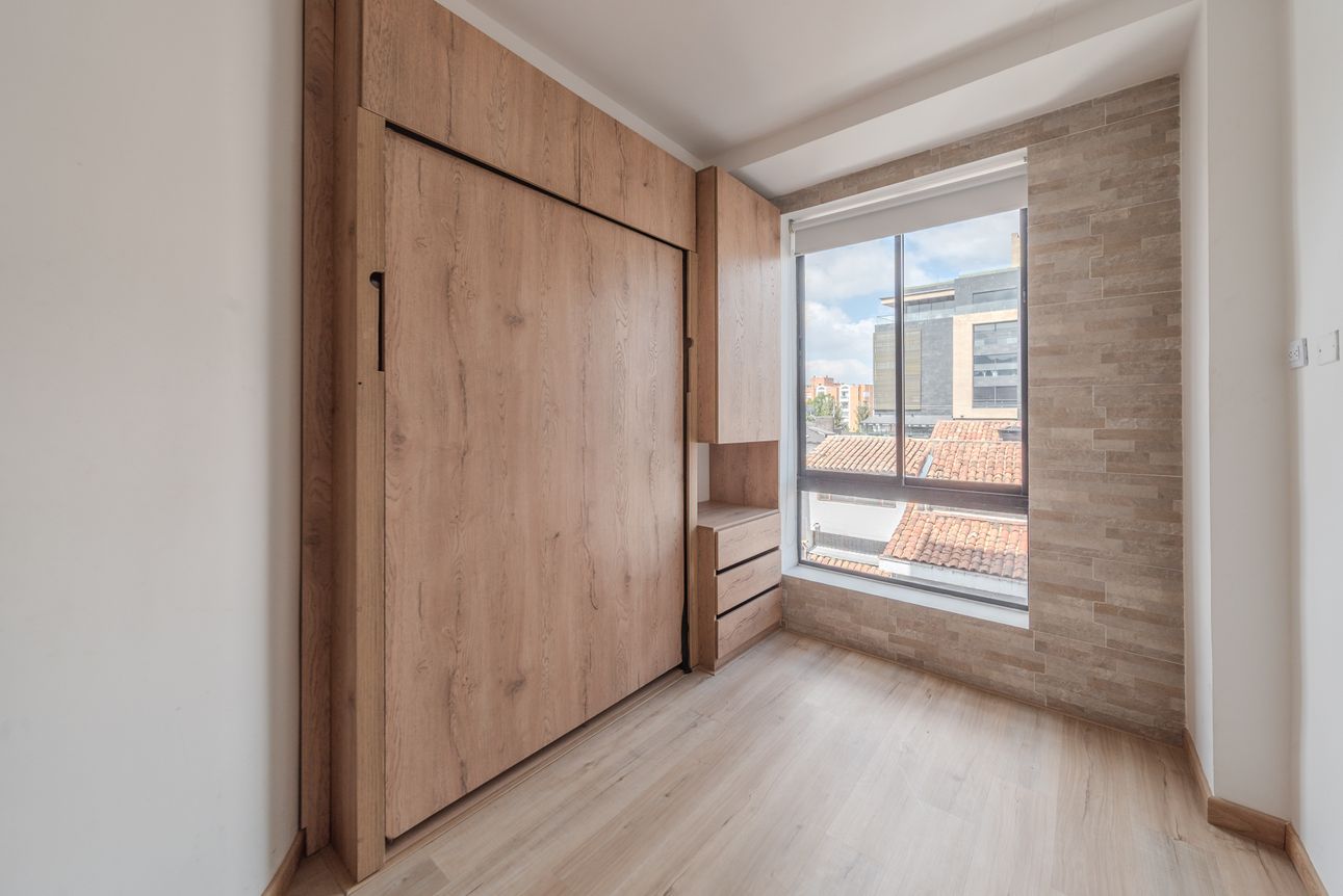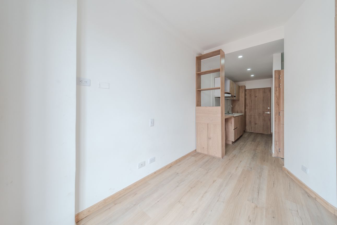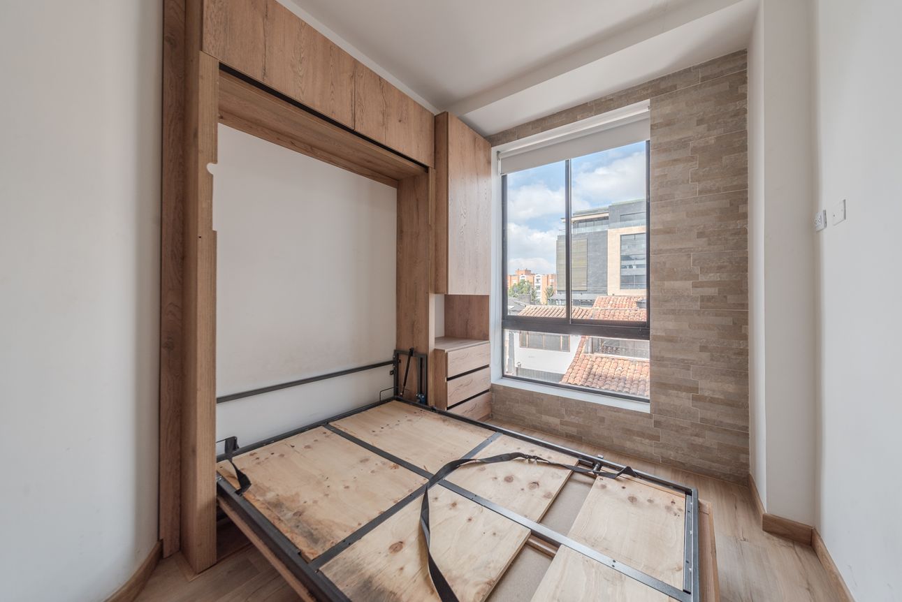 Moderno apartaestudio tipo loft ubicado en Santa Bárbara con todo lo que necesitas para vivir cómodo sin salir del edificio. El apartaestudio cuenta con cocina abierta, zona de mesa o estudio, baño completo y mueble cama recogible. Por su parte, el edificio cuenta con coworking, excelente gimnasio, salón comunal, parqueadero de visitantes, ascensor, vigilancia 24 horas y espectacular terraza para que no te aburras un minuto.
