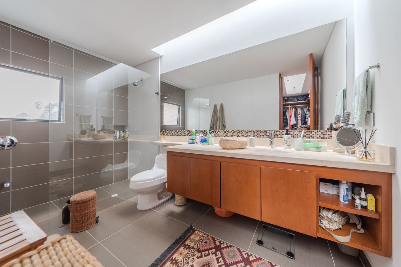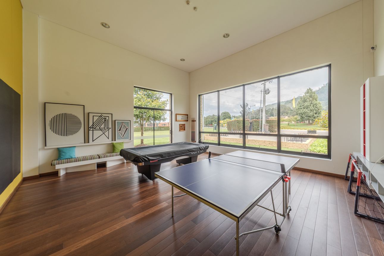 En el segundo piso, la casa cuenta con family room, tres habitaciones cada una con su baño y un amplio closet. La casa tiene en total cuatro parqueaderos. El conjunto tiene en sus zonas sociales piscina de adultos y niños, sauna, turco, gimnasio, dos canchas de squash, teatrino, salas de reuniones, zona BBQ, canchas deportivas y proximamente contará con más amenities.