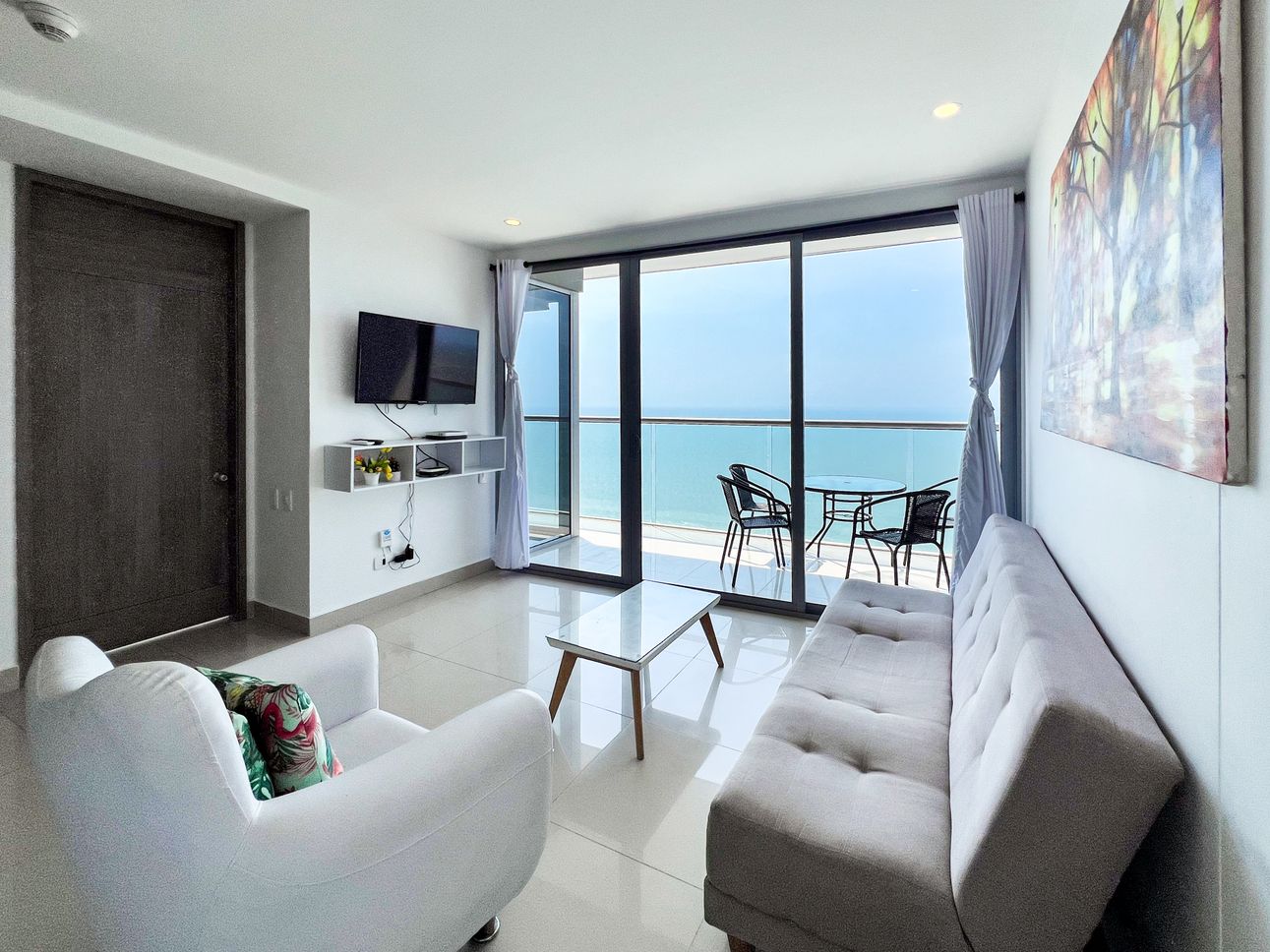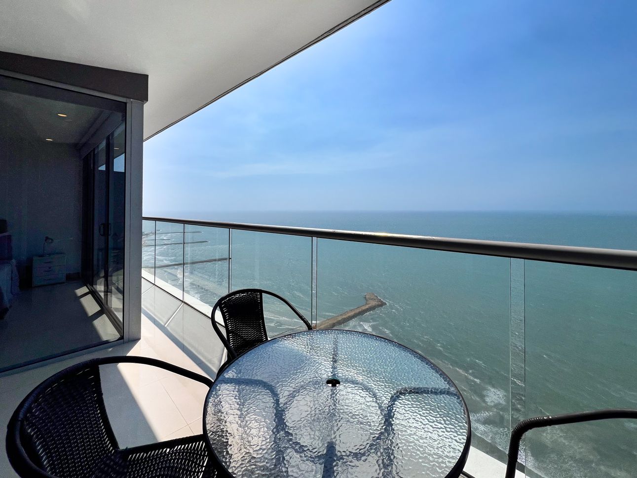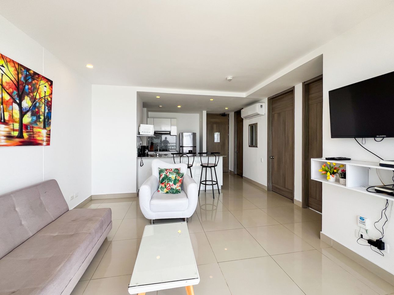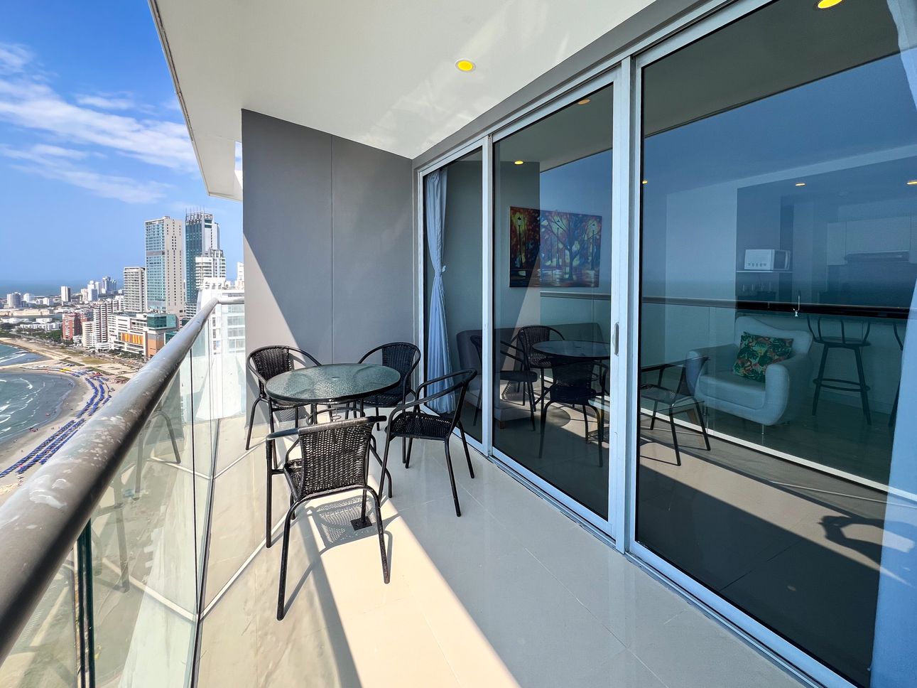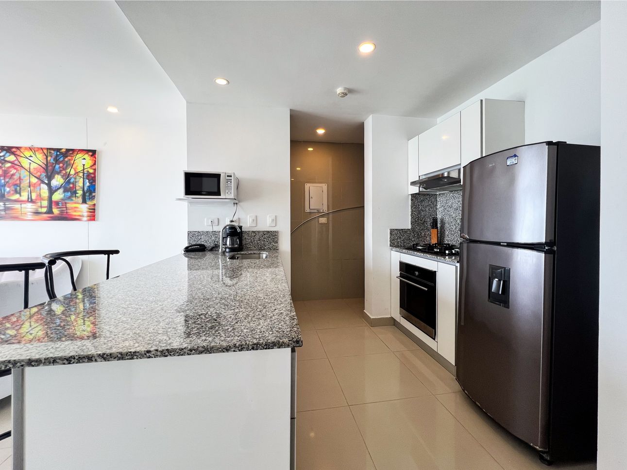 Ubicado en la hermosa Cartagena de Indias en primera línea de playa Bocagrande, zona turística de valorización, este apartamento ofrece zonas sociales tipo hotel, un majestuoso lobby y unas vistas inigualables. Con dos habitaciones, cocina abierta, con un mobiliario completo listo para disfrutar o arrendar por días. Cocina americana y un balcón donde podrás apreciar la majestuosa vista al mar que enamora a cualquiera.