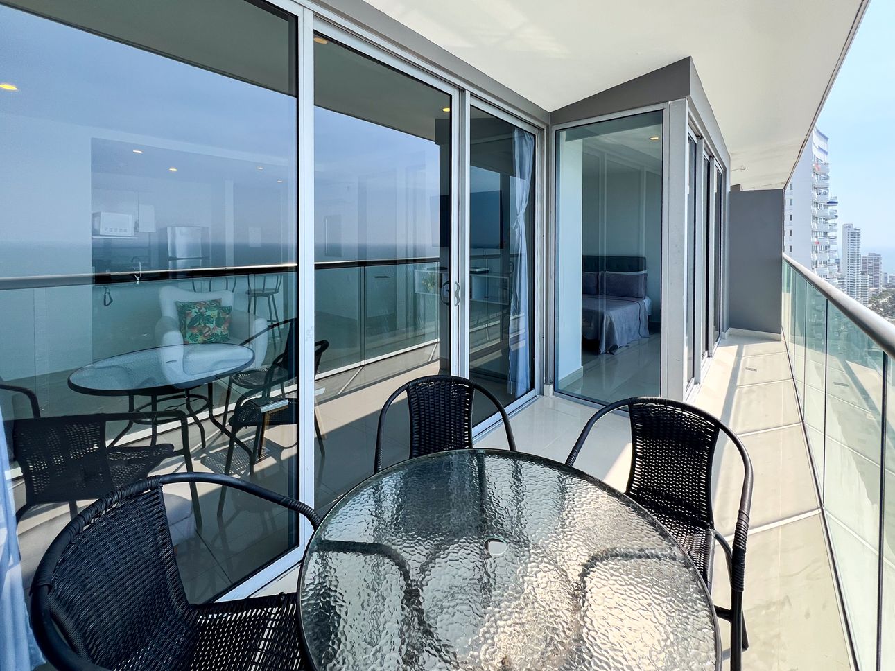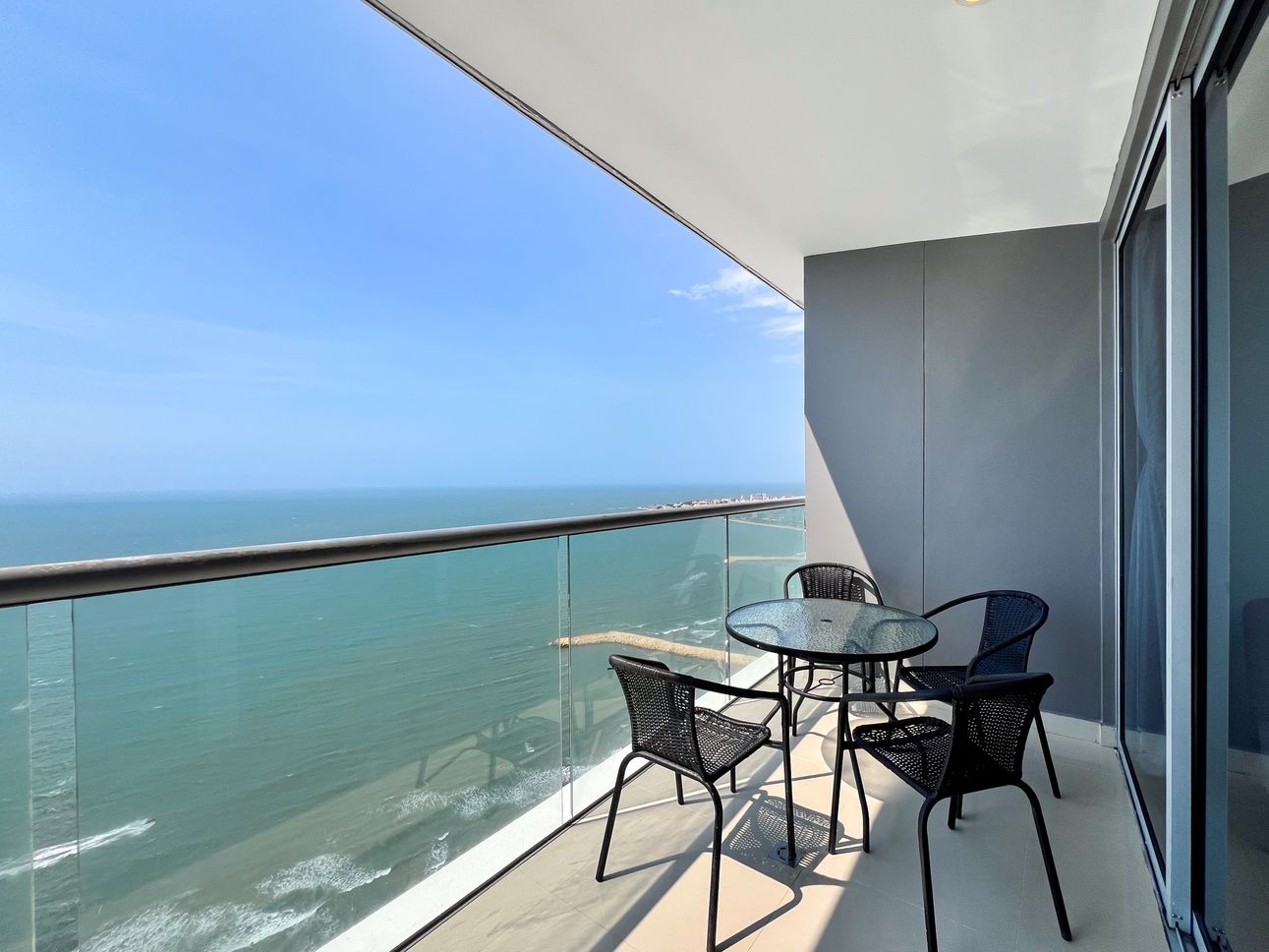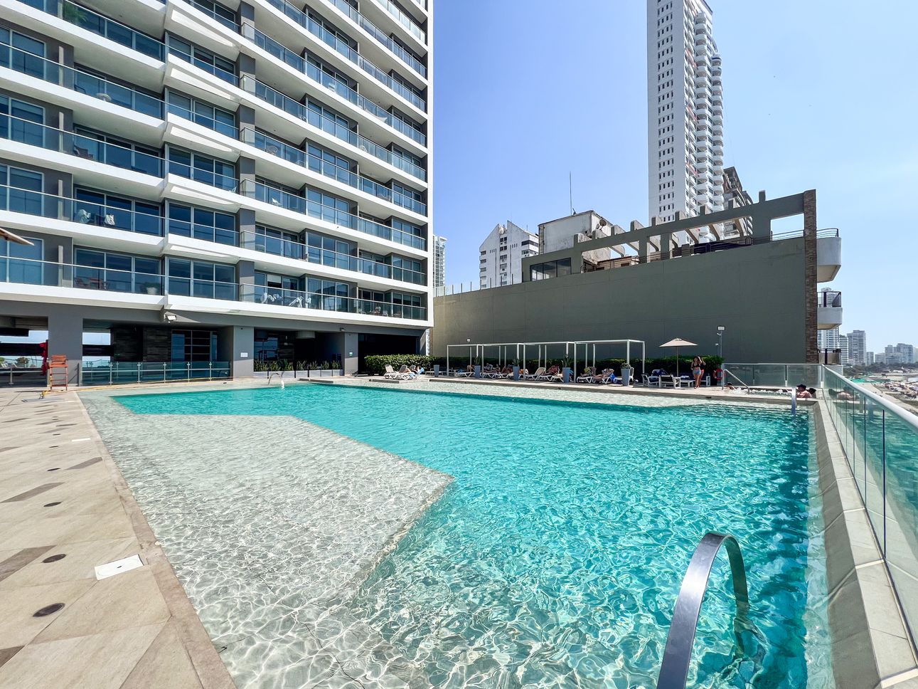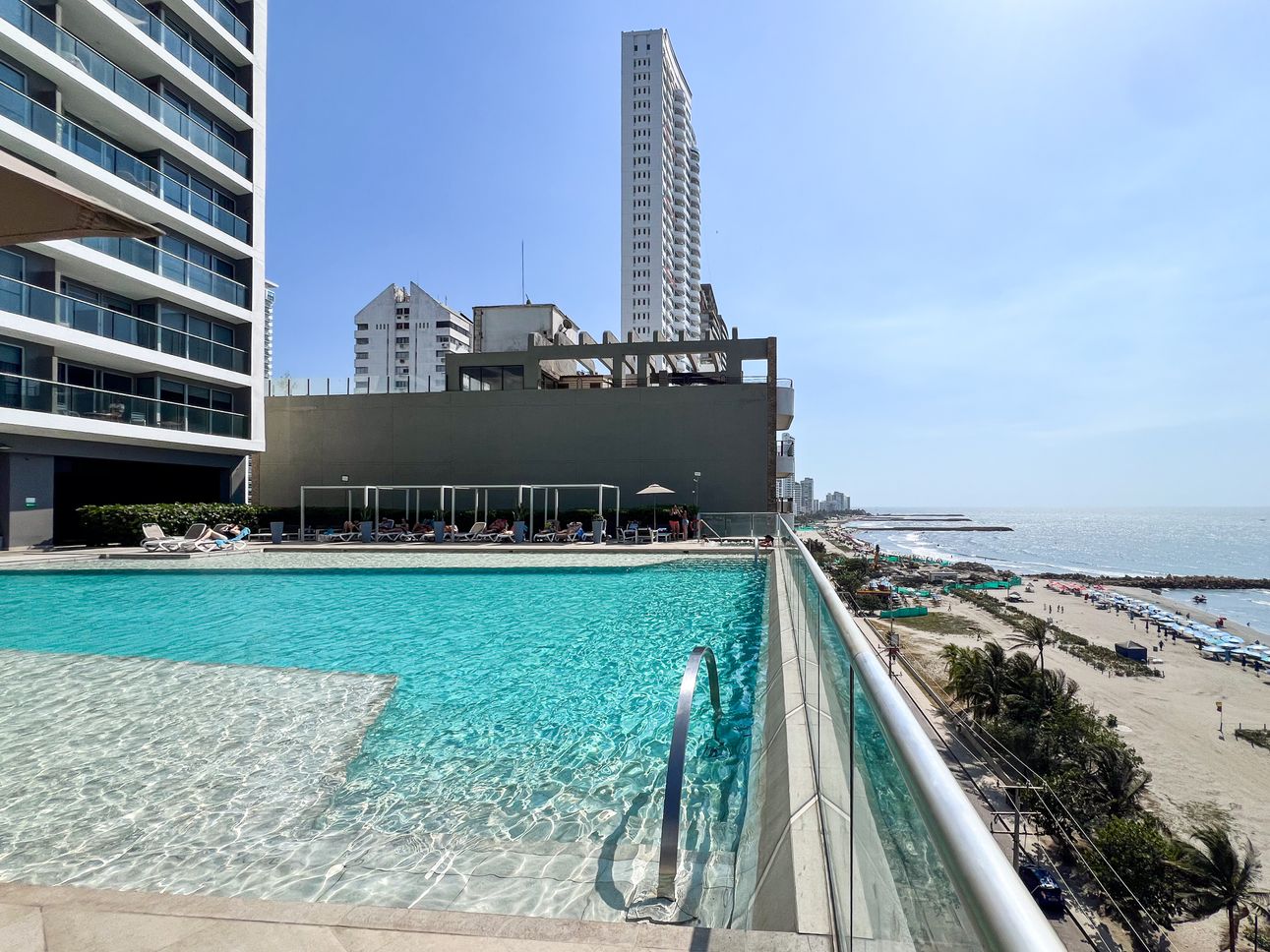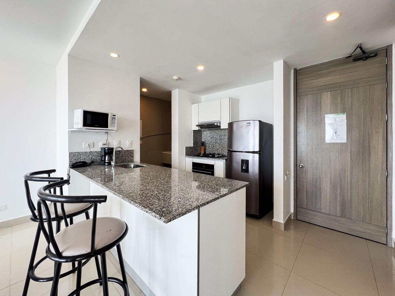 Ubicado en la hermosa Cartagena de Indias en primera línea de playa Bocagrande, zona turística de valorización, este apartamento ofrece zonas sociales tipo hotel, un majestuoso lobby y unas vistas inigualables. Con dos habitaciones, cocina abierta, con un mobiliario completo listo para disfrutar o arrendar por días. Cocina americana y un balcón donde podrás apreciar la majestuosa vista al mar que enamora a cualquiera.