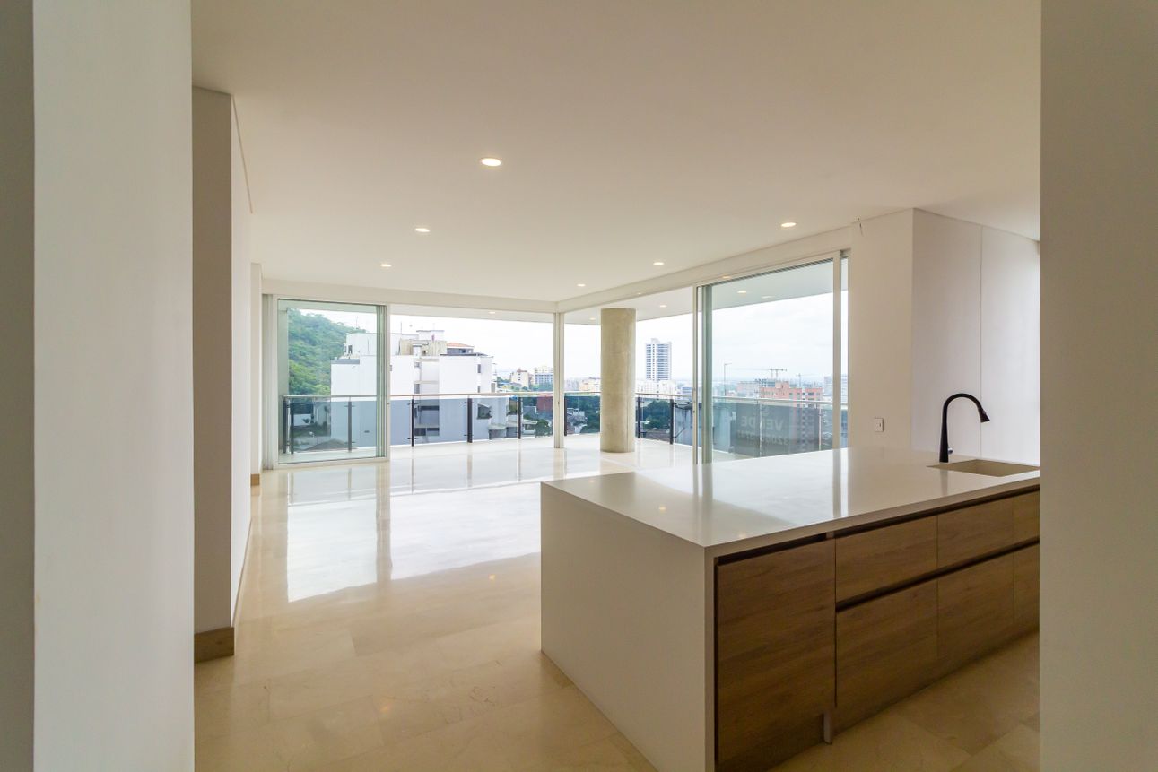 El edificio es de primer nivel, equipado con amenidades como piscina, planta eléctrica total, ascensor panorámico y seguridad 24 horas. También incluye un salón comunal y un cuarto de escoltas para mayor exclusividad.
