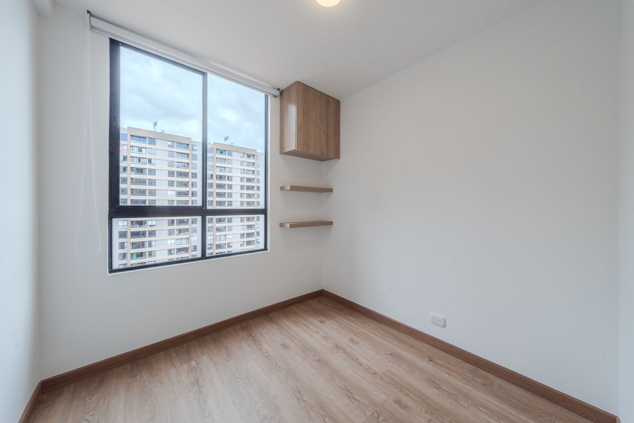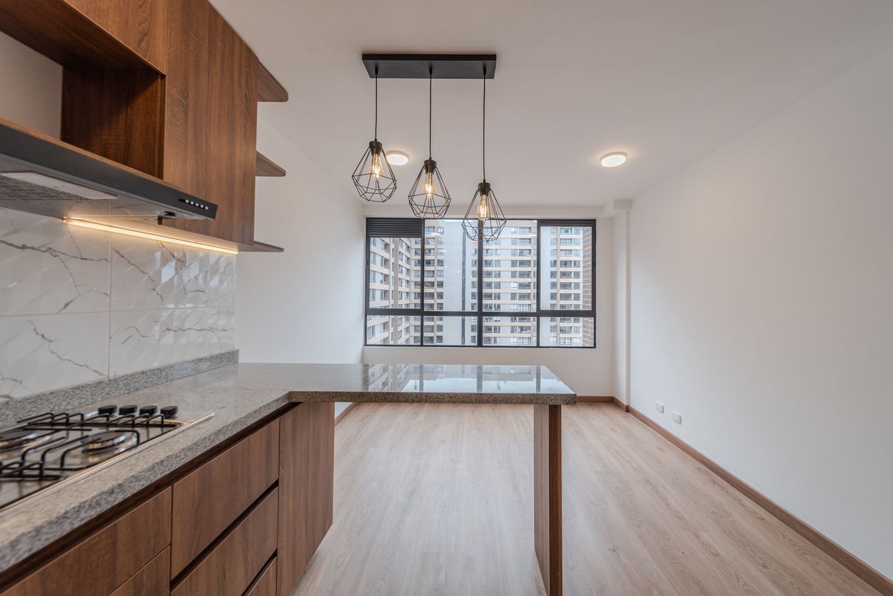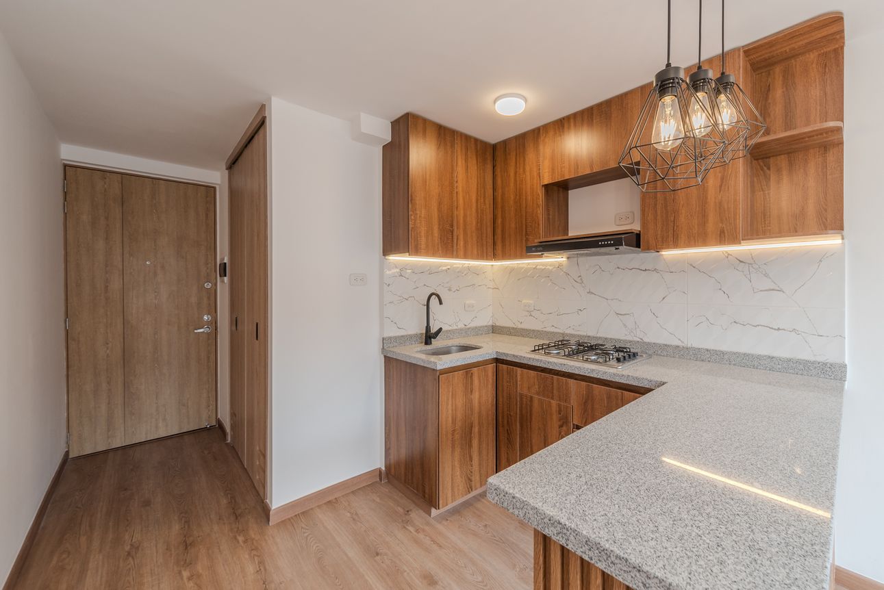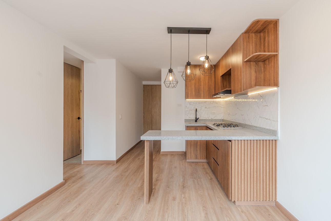 Moderno apartamento de dos habitaciones en Conjunto con Club House. El apartamento cuenta con excelentes acabados en madera, amplia zona social cocina abierta, zona de lavandería independiente con lavadero. Dos habitaciones y un amplio baño completo. Por su parte, el conjunto cuenta con salón comunal, vigilancia 24 horas, parqueadero de visitantes, gimnasio, piscina, terraza comunal, zona infantil, co-working, teatrino y parqueaderos comunales por asignación de la administación.