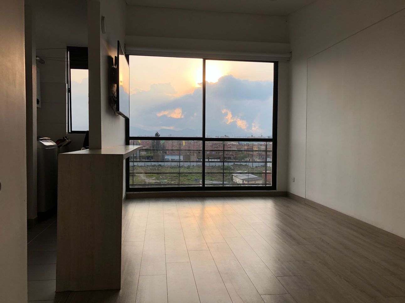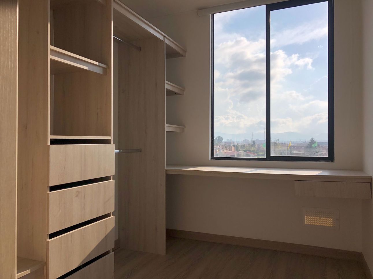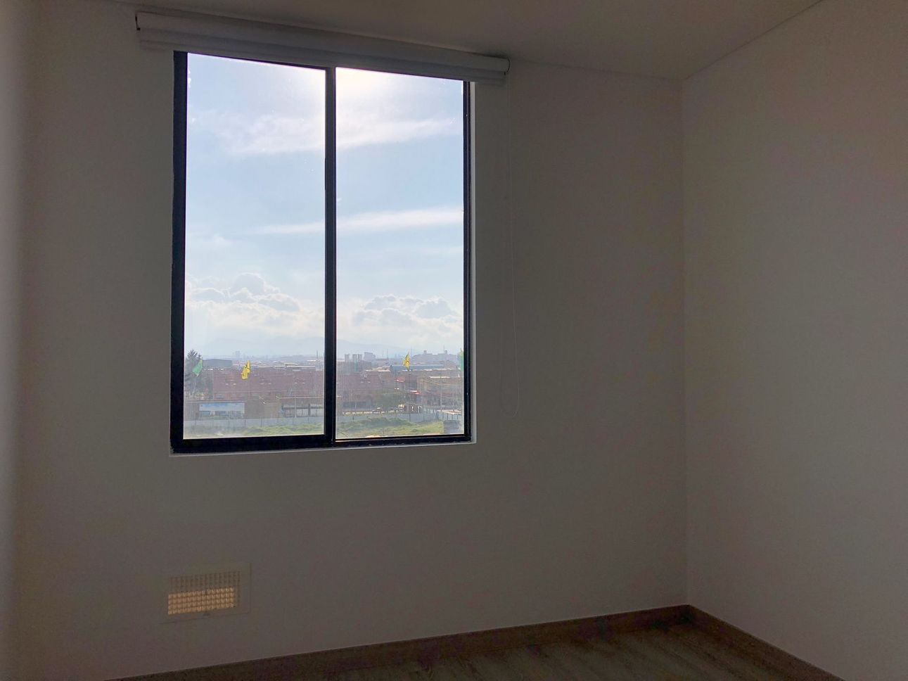 Moderno apartamento de tres habitaciones ubicado en Conjunto en Funza. El apartamento cuenta con amplia zona social en un ambiente con espectacular vista verde, estudio, cocina abierta, baño social, zona de lavandería independiente. Posee tres habitaciones, la principal con baño, las otras dos habitaciones comparten baño. El apartamento tiene un parqueadero independiente. El conjunto NO cuenta con ascensor, tiene gimnasio, salón comunal, zona infantil, terraza y paqueadero de visitantes.