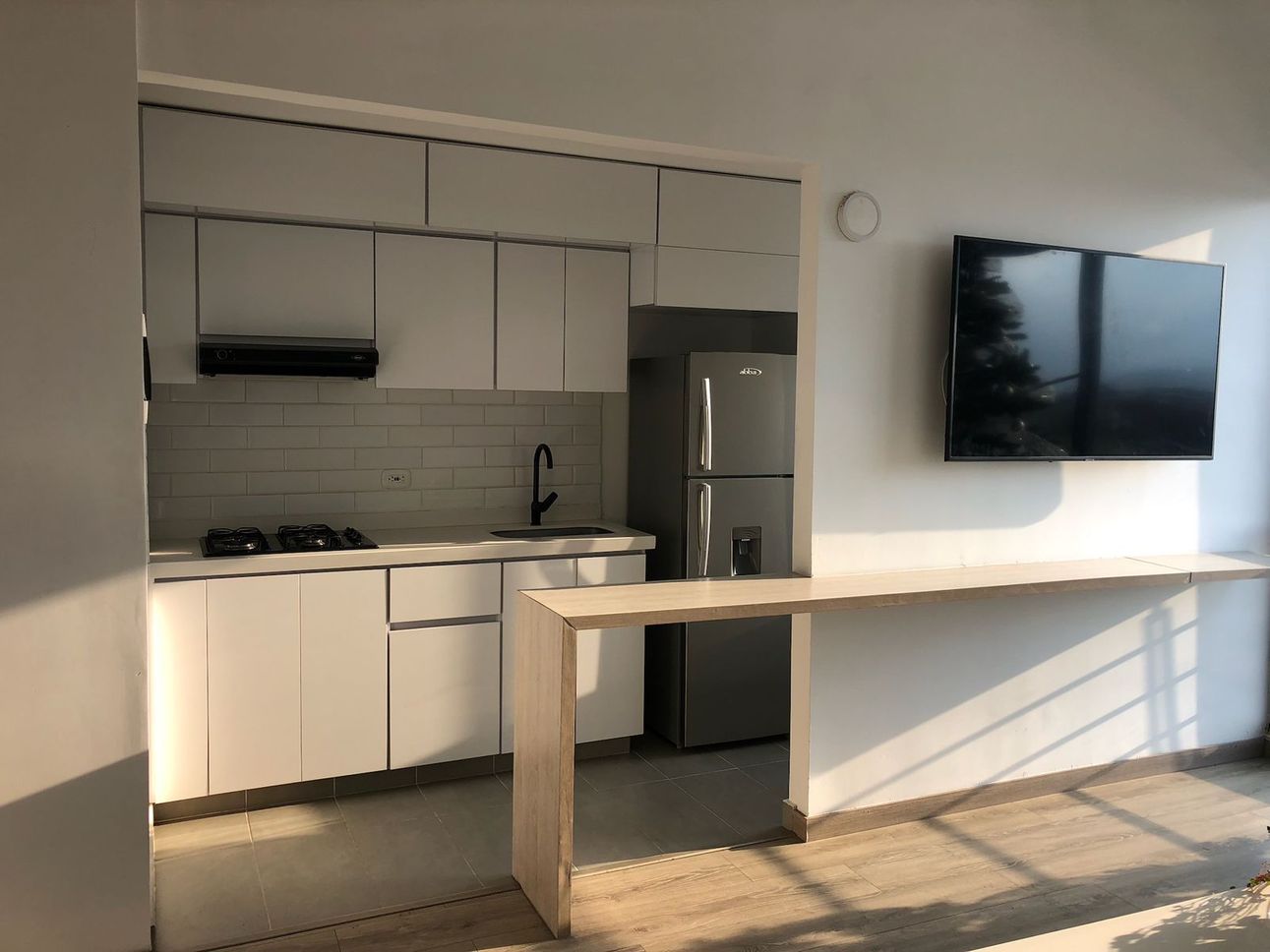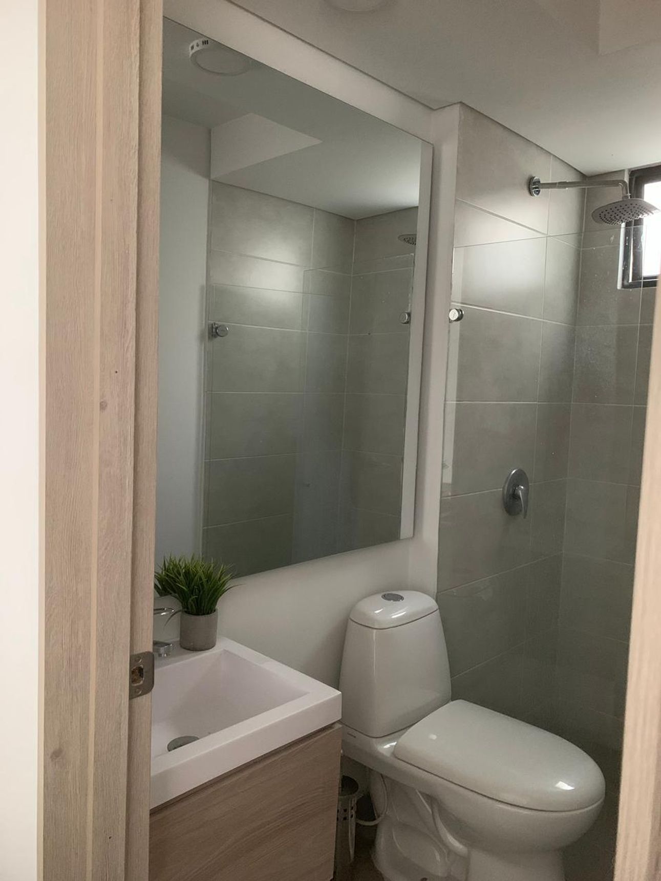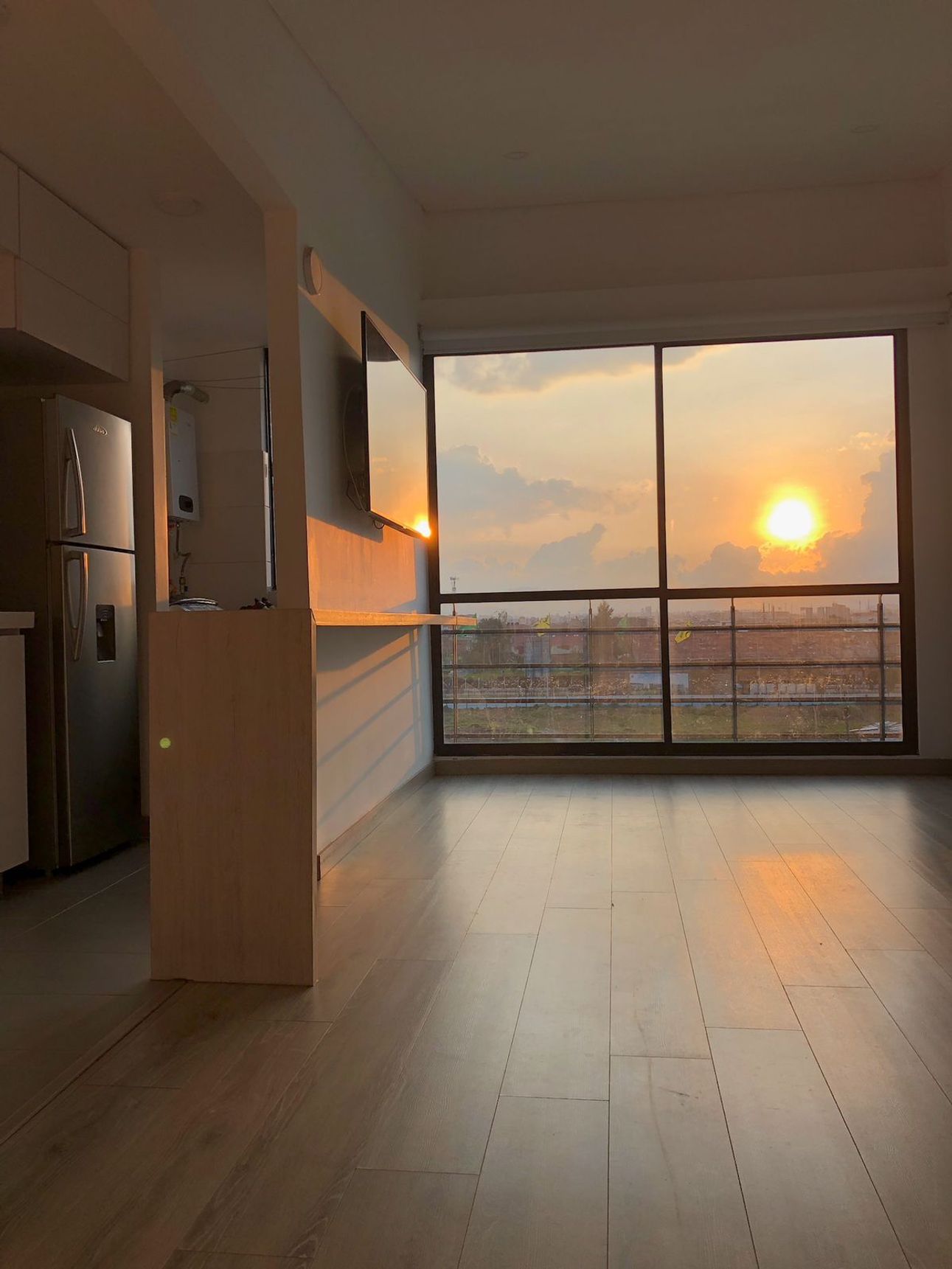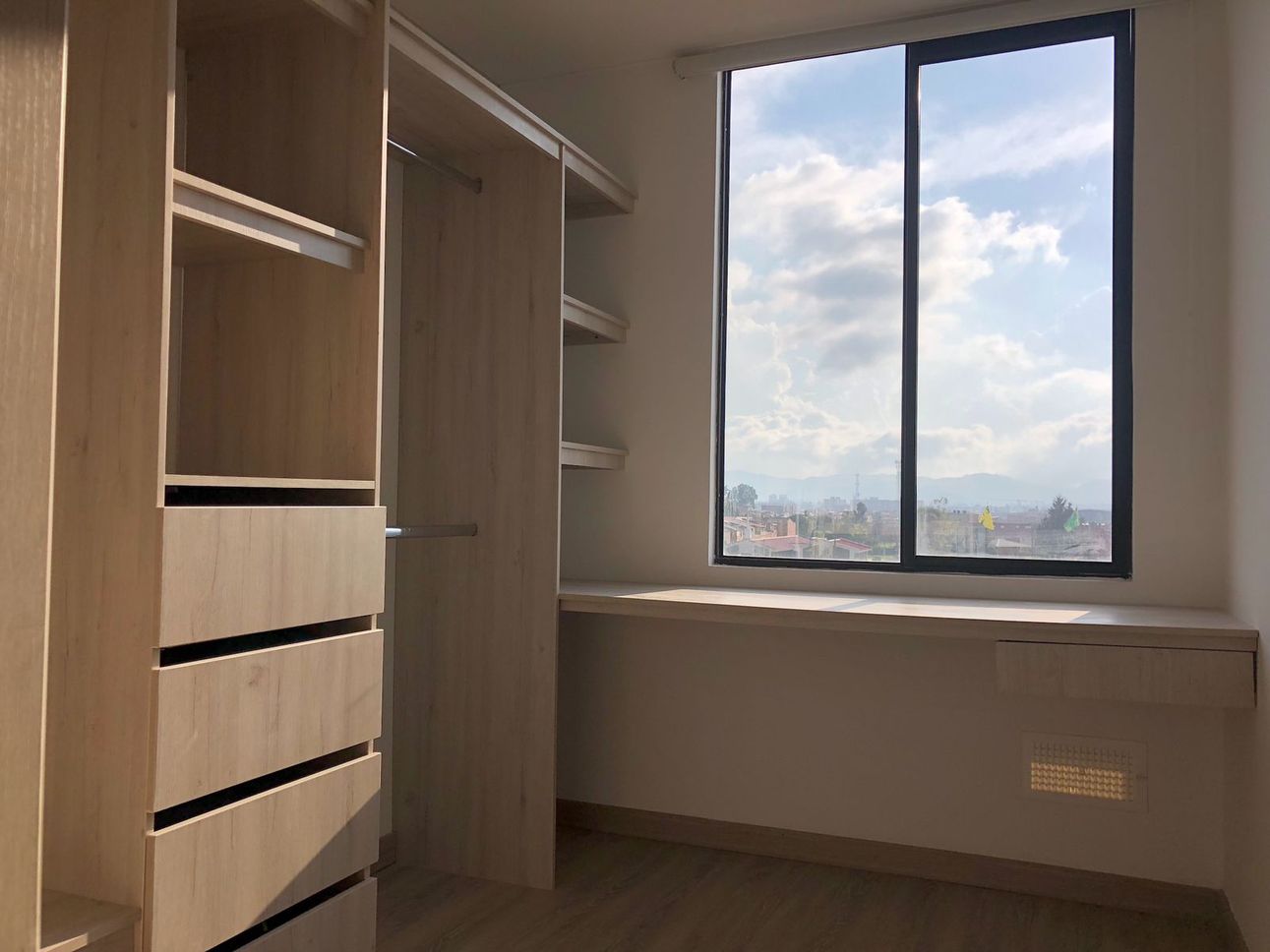 Moderno apartamento de tres habitaciones ubicado en Conjunto en Funza. El apartamento cuenta con amplia zona social en un ambiente con espectacular vista verde, estudio, cocina abierta, baño social, zona de lavandería independiente. Posee tres habitaciones, la principal con baño, las otras dos habitaciones comparten baño. El apartamento tiene un parqueadero independiente. El conjunto NO cuenta con ascensor, tiene gimnasio, salón comunal, zona infantil, terraza y paqueadero de visitantes.