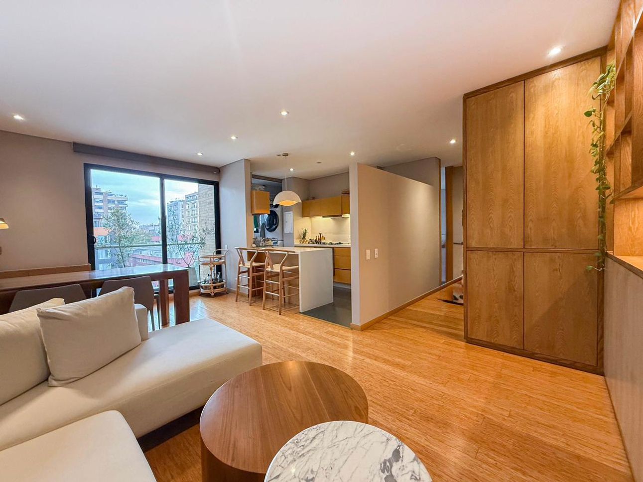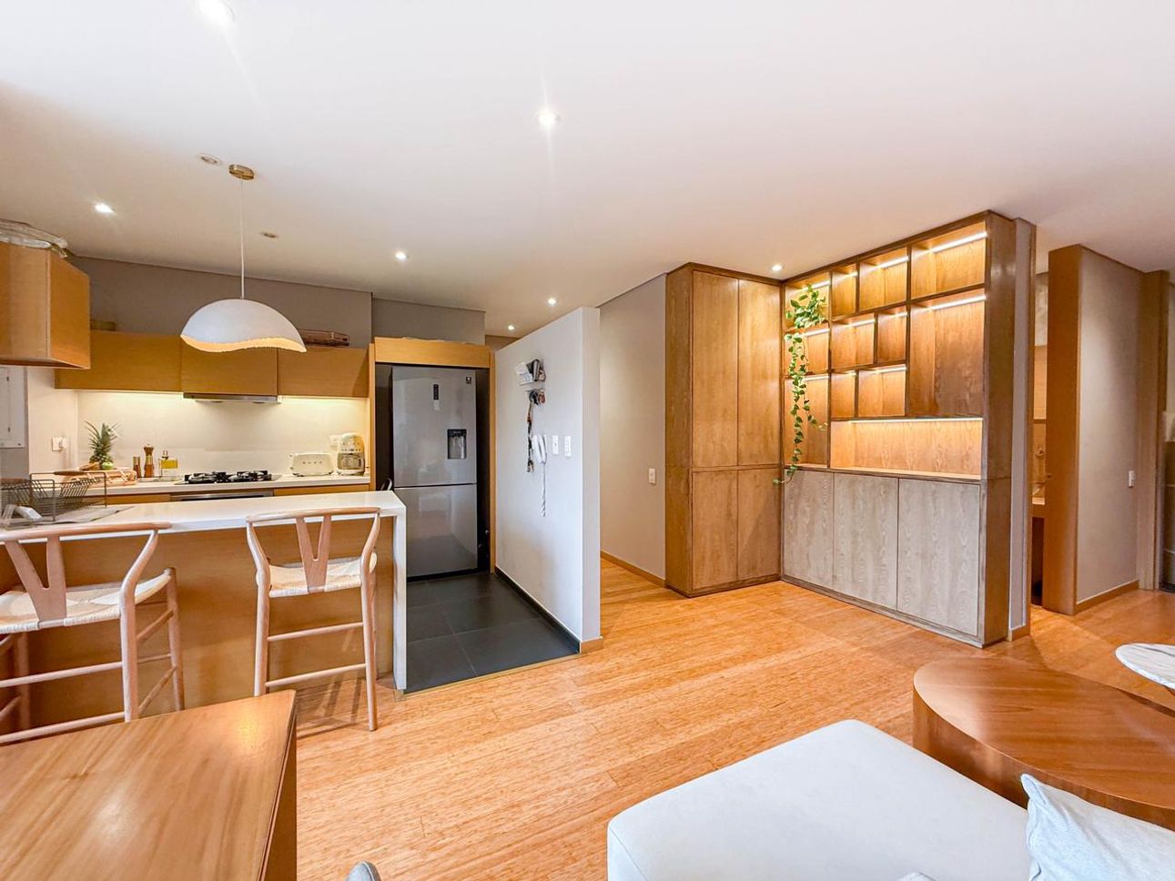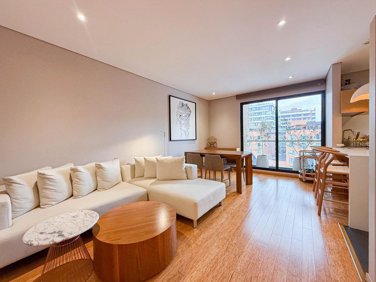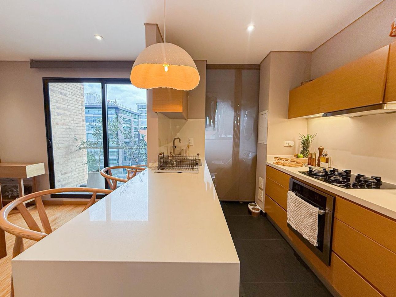 El apartamento también dispone de una cocina abierta equipada con barra, ideal para disfrutar de comidas rápidas o recibir amigos. La zona de lavandería es independiente, ofreciendo mayor funcionalidad y privacidad. Aunque el apartamento no está amoblado, cuenta con las conexiones necesarias para el servicio de gas natural, lo que facilita el uso de electrodomésticos a gas.