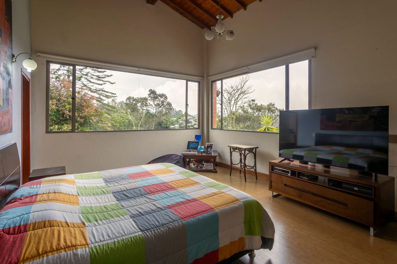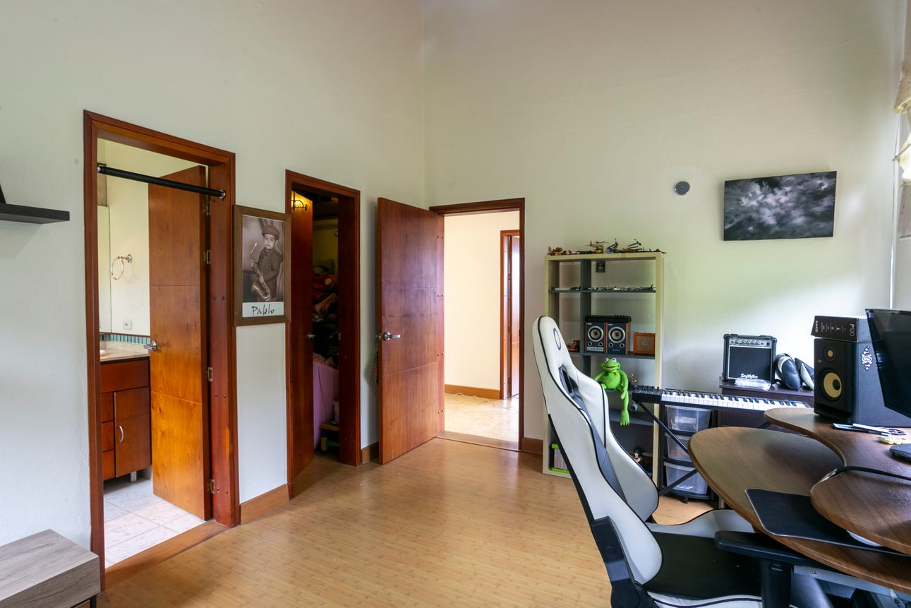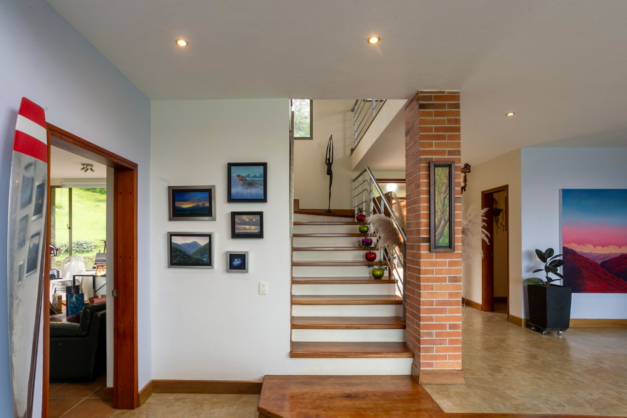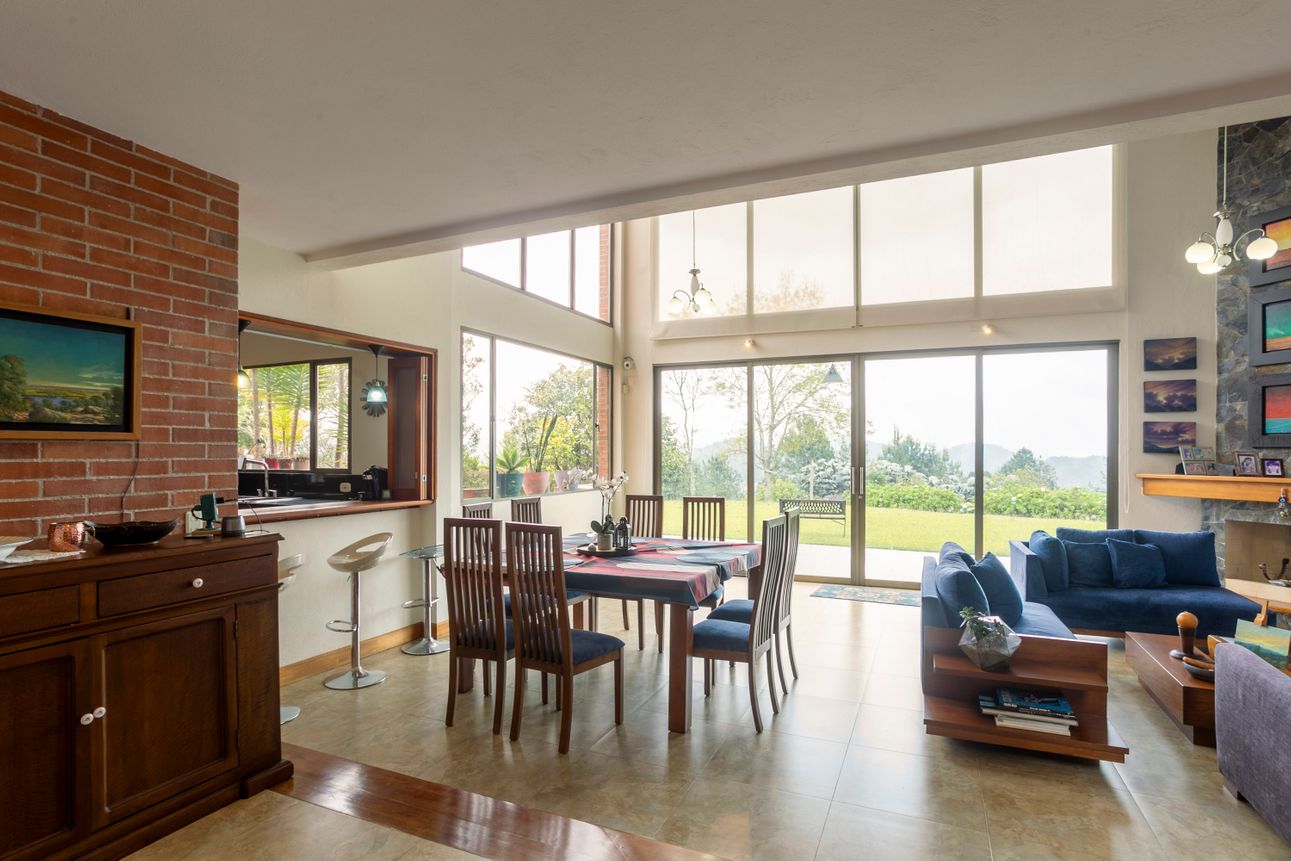 Ofrece una vista espectacular a las montañas, permitiendo disfrutar de la naturaleza desde la comodidad del hogar. Las áreas verdes y los amplios jardines invitan a relajarse y disfrutar del exterior. Ubicada a tan solo dos minutos de colegios y supermercados en la vía Escobero, combina comodidad y conveniencia. Cuatro parqueaderos cubiertos y dos en línea aseguran espacio suficiente para todos sus vehículos.