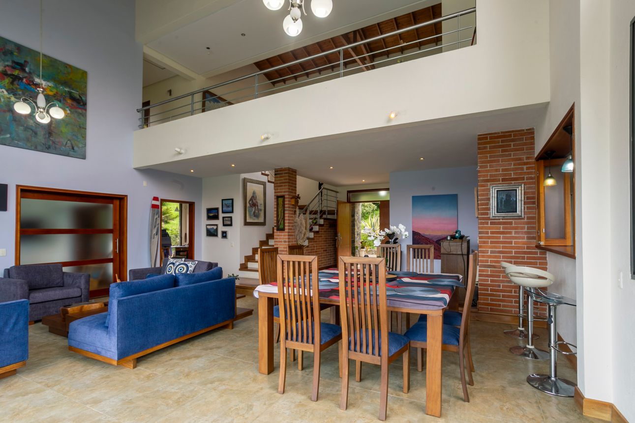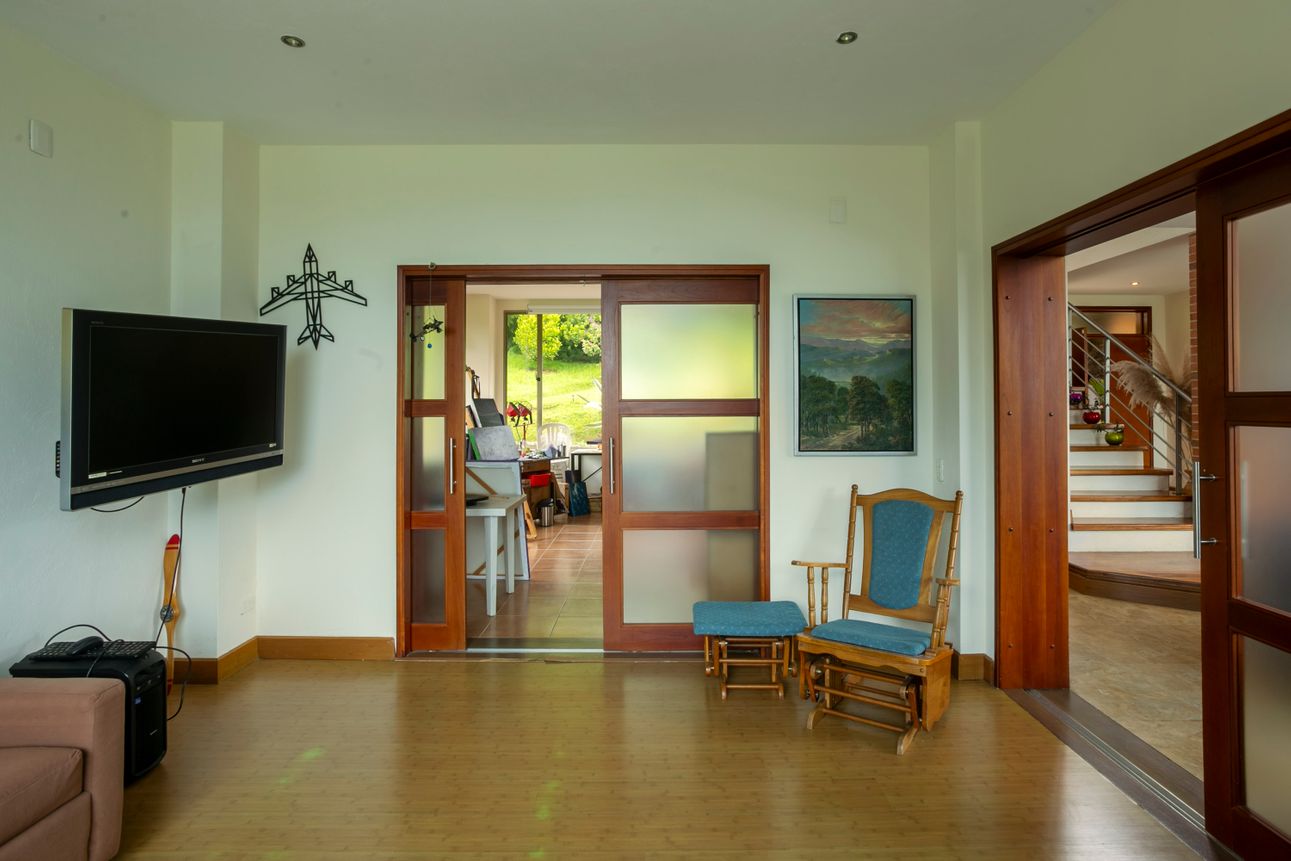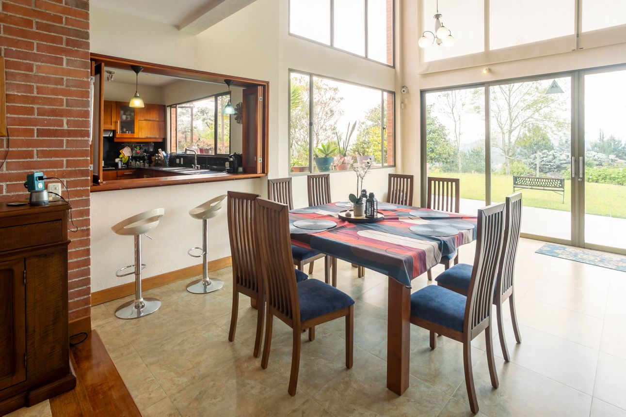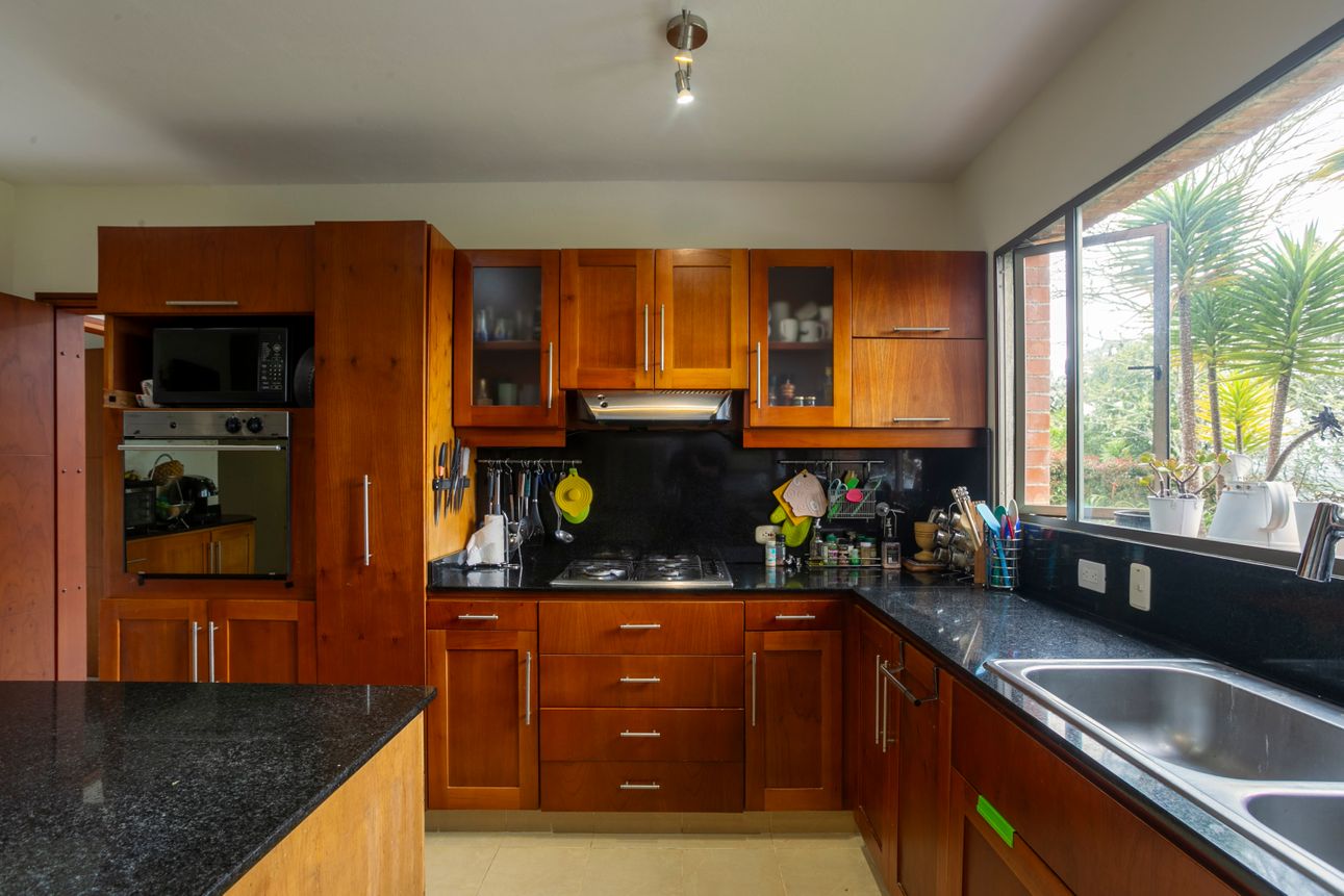 Ofrece una vista espectacular a las montañas, permitiendo disfrutar de la naturaleza desde la comodidad del hogar. Las áreas verdes y los amplios jardines invitan a relajarse y disfrutar del exterior. Ubicada a tan solo dos minutos de colegios y supermercados en la vía Escobero, combina comodidad y conveniencia. Cuatro parqueaderos cubiertos y dos en línea aseguran espacio suficiente para todos sus vehículos.