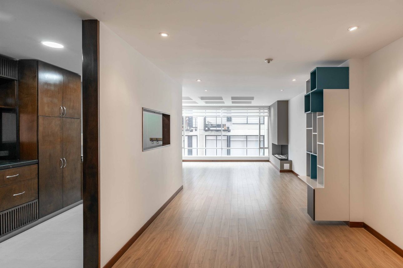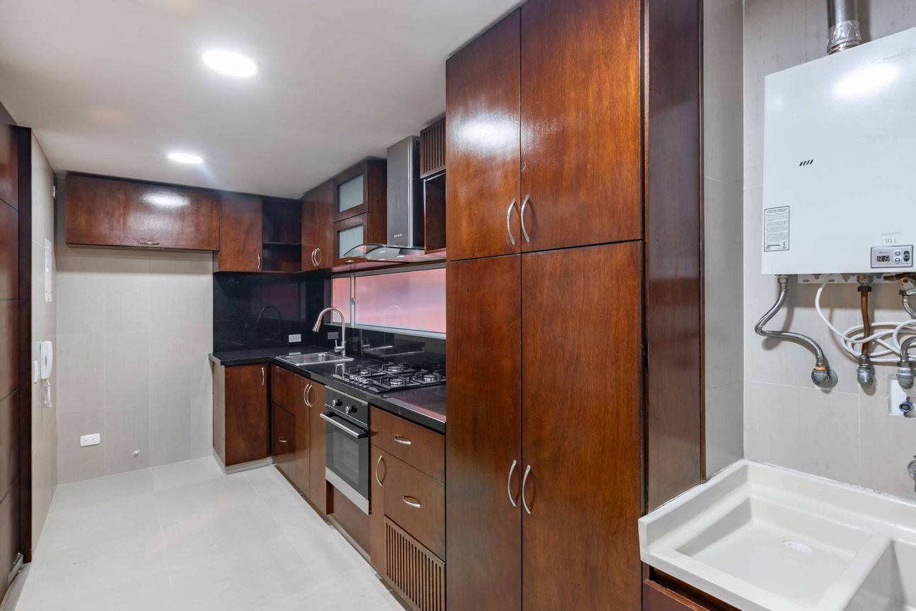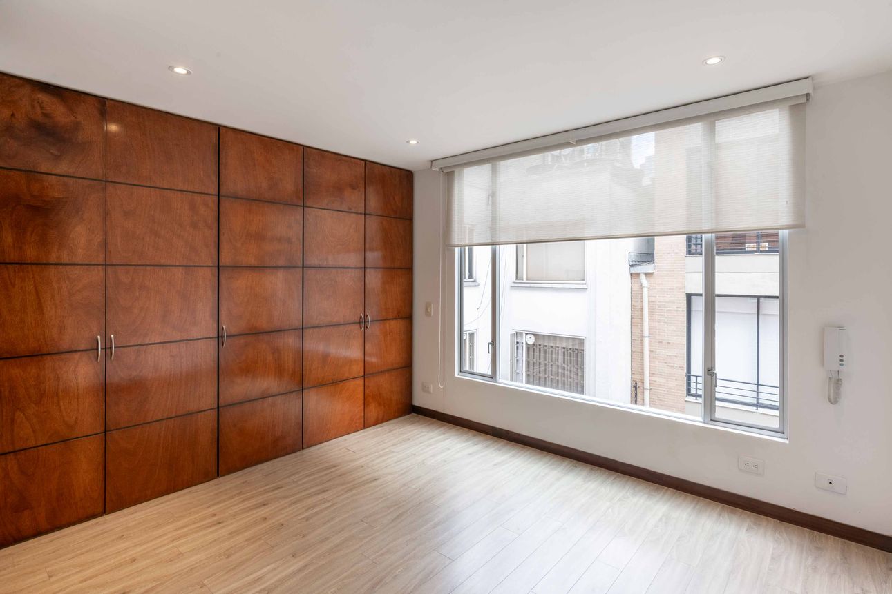El apartamento cuenta con muy buena iluminación natural y las comodidades que esperas. Nos encanta su puerta de seguridad, su cocina a gas y sus armarios empotrados. También notarás ventajas como su calentador de agua a gas y chimenea, ideales para los días fríos capitalinos.