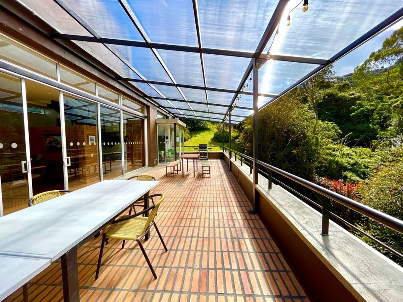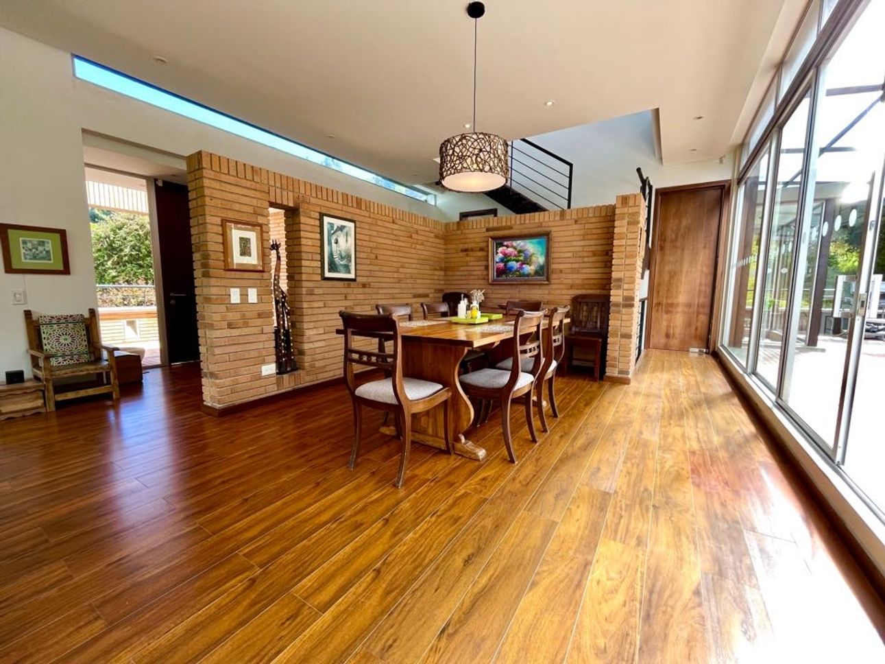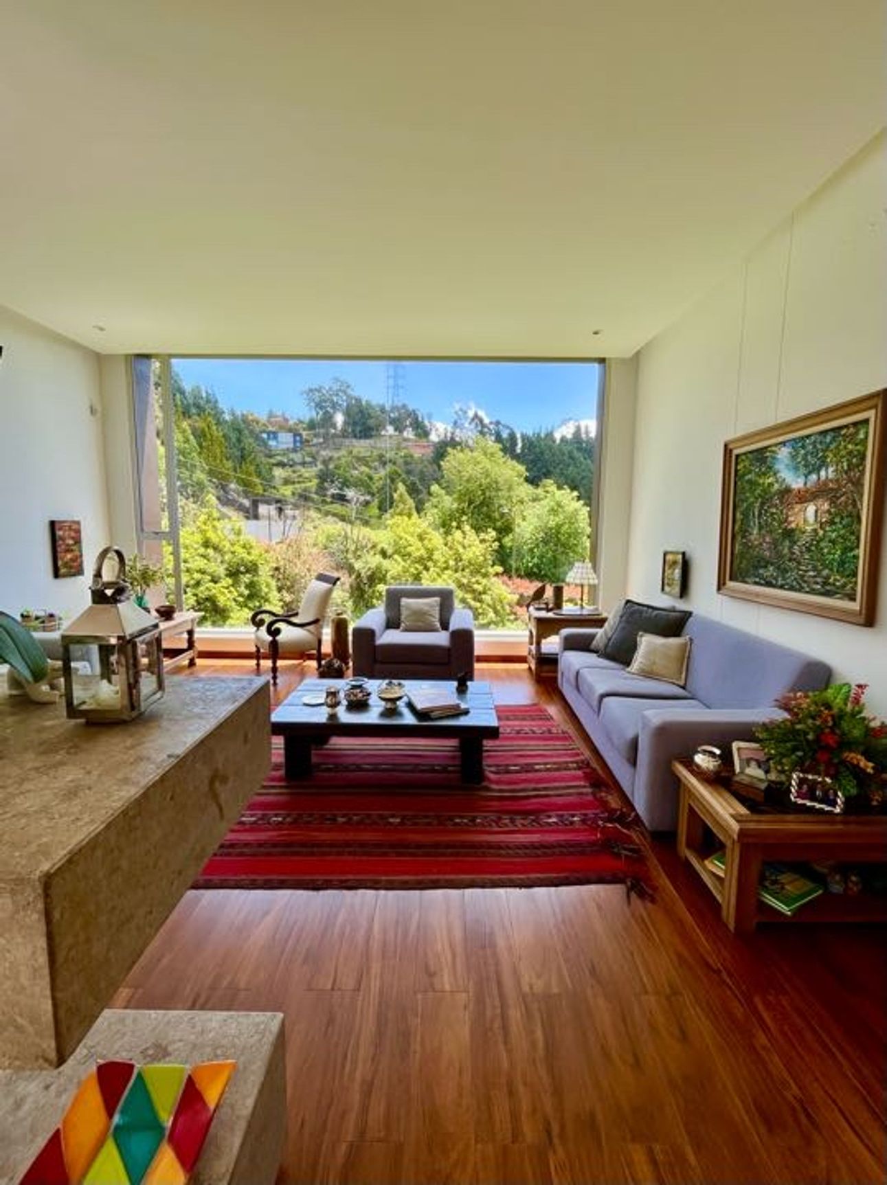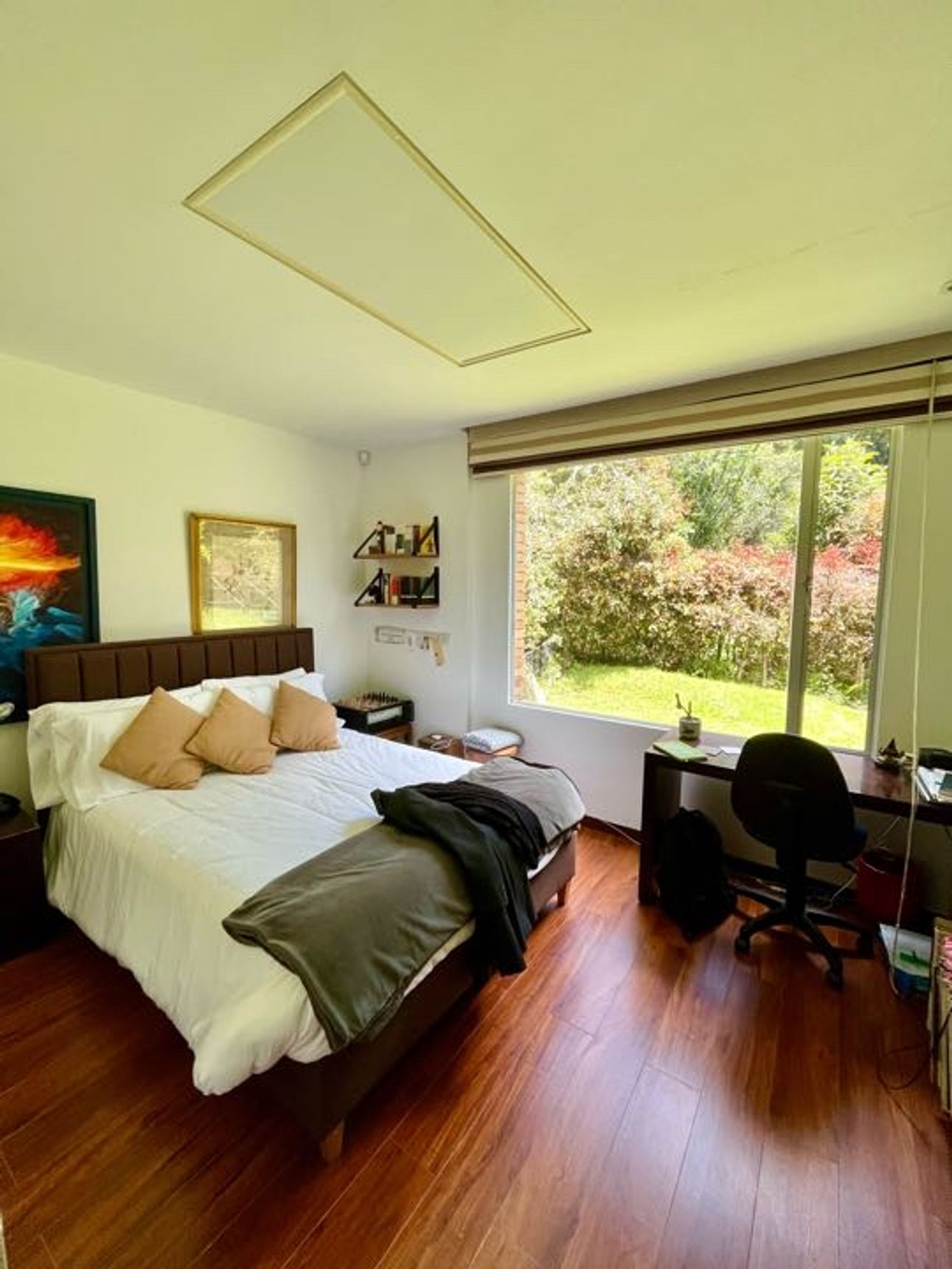 Ubicada frente al peaje de Patios en La Calera, esta casa moderna combina diseño contemporáneo y naturaleza. En un conjunto cerrado, rodeada de bosques nativos, ofrece un ambiente tranquilo y privado. Con techos altos y grandes ventanales, cada espacio se inunda de luz natural y brinda vistas maravillosas. Desde el comedor se accede a una terraza generosa que colinda con un bosque protegido, ideal para disfrutar de momentos de paz.