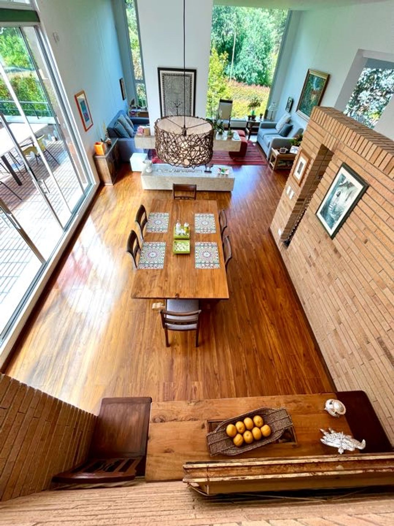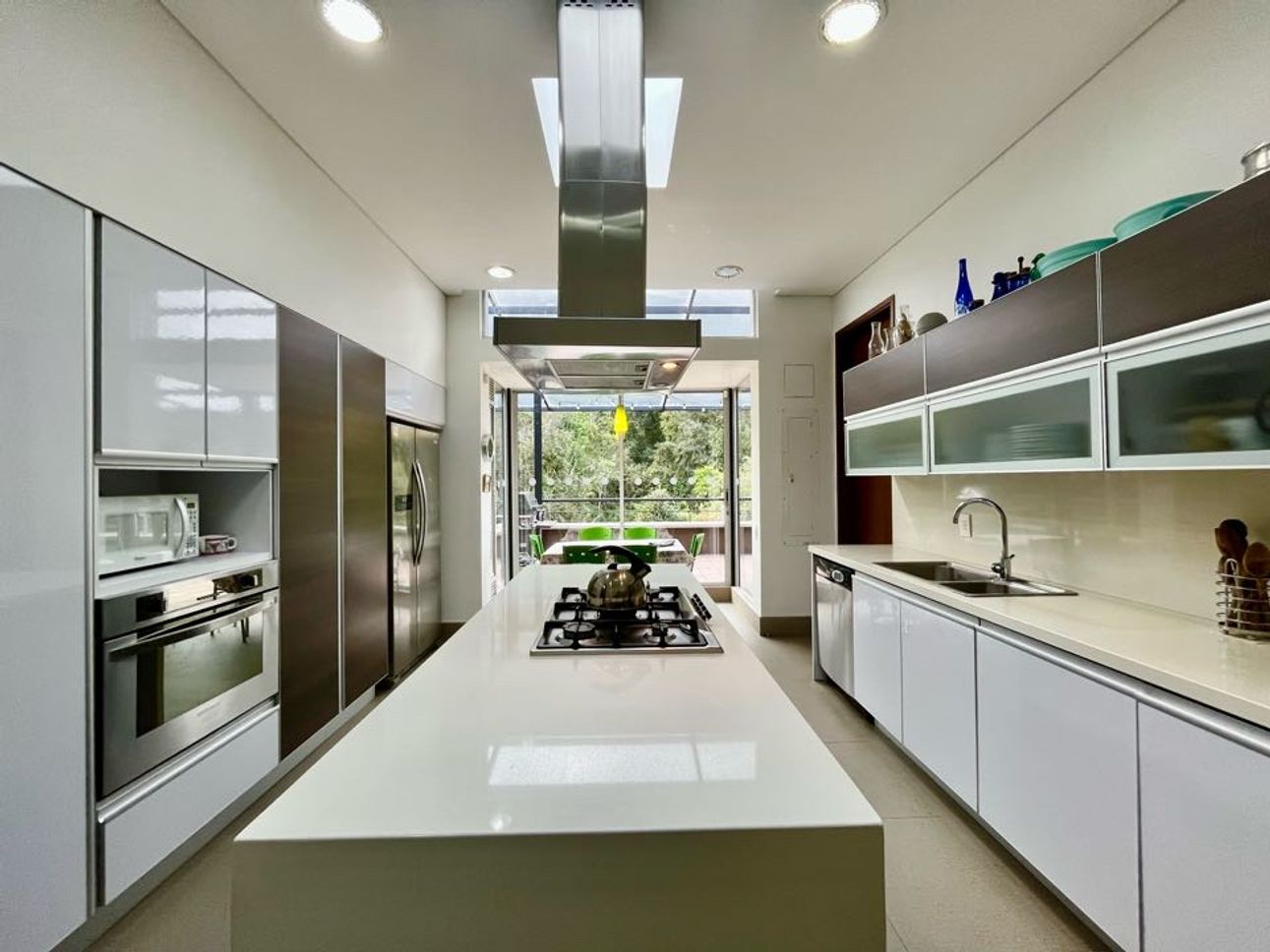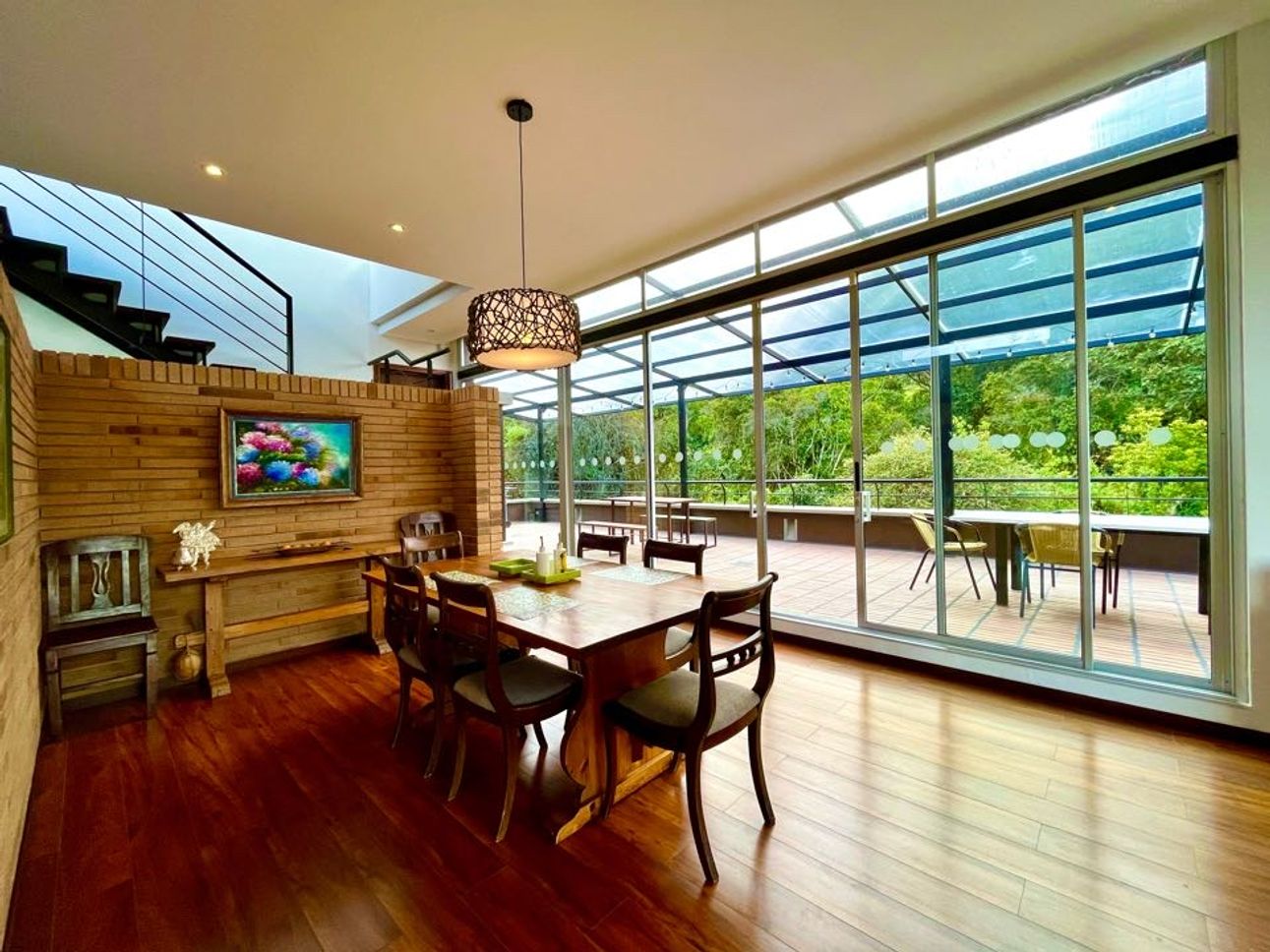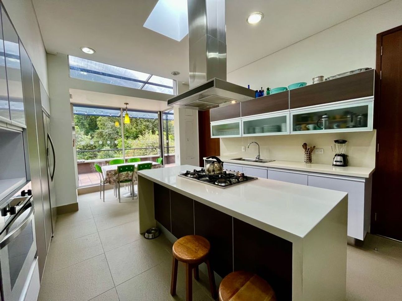 Ubicada frente al peaje de Patios en La Calera, esta casa moderna combina diseño contemporáneo y naturaleza. En un conjunto cerrado, rodeada de bosques nativos, ofrece un ambiente tranquilo y privado. Con techos altos y grandes ventanales, cada espacio se inunda de luz natural y brinda vistas maravillosas. Desde el comedor se accede a una terraza generosa que colinda con un bosque protegido, ideal para disfrutar de momentos de paz.