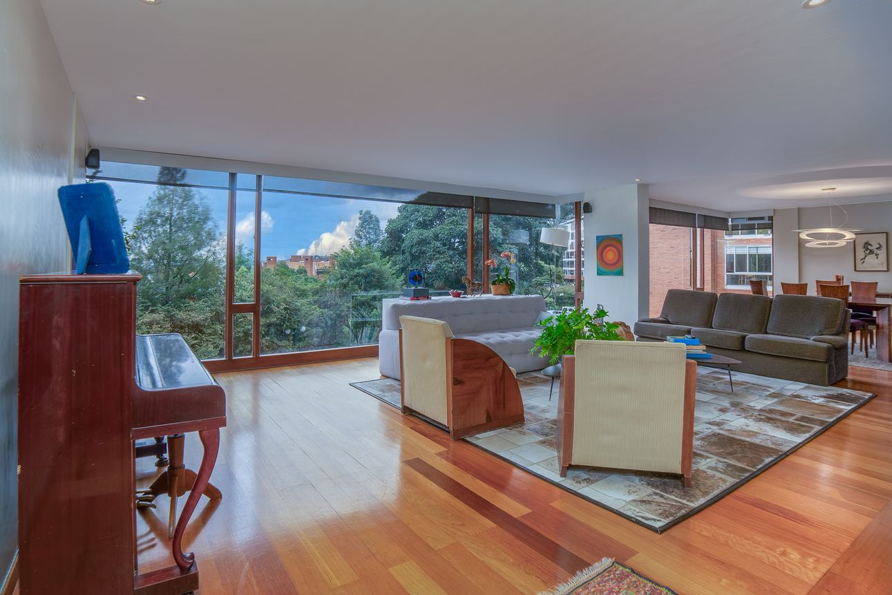 En el vibrante sector de Chapinero, Bogotá, se encuentra este impresionante apartamento dúplex en el exclusivo conjunto Torres de Llorente. Este hogar ofrece una experiencia de vida en contacto con la naturaleza, gracias a sus vistas panorámicas a las copas de los árboles y sus senderos para caminar. La propiedad cuenta con 3 amplias alcobas, un comedor formal, sala de estar, salón y un estudio de arte que podrás adaptar según tus necesidades.