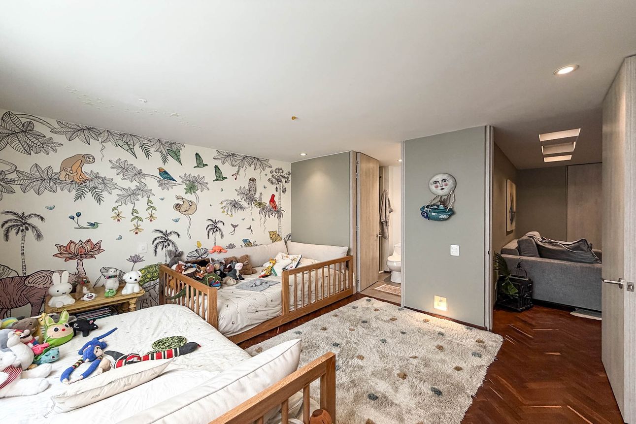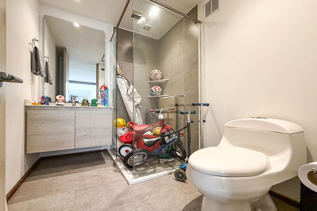 Este apartamento ofrece un cómodo cuarto y baño de servicio, y un balcón perfecto para disfrutar de los atardeceres capitalinos. Además, aunque el apartamento no incluye parqueaderos privativos, el edificio cuenta con opciones de parqueaderos para visitantes. La ubicación es clave: tendrás a tu alcance restaurantes y centros comerciales sin necesidad de alejarte del confort de tu hogar.
