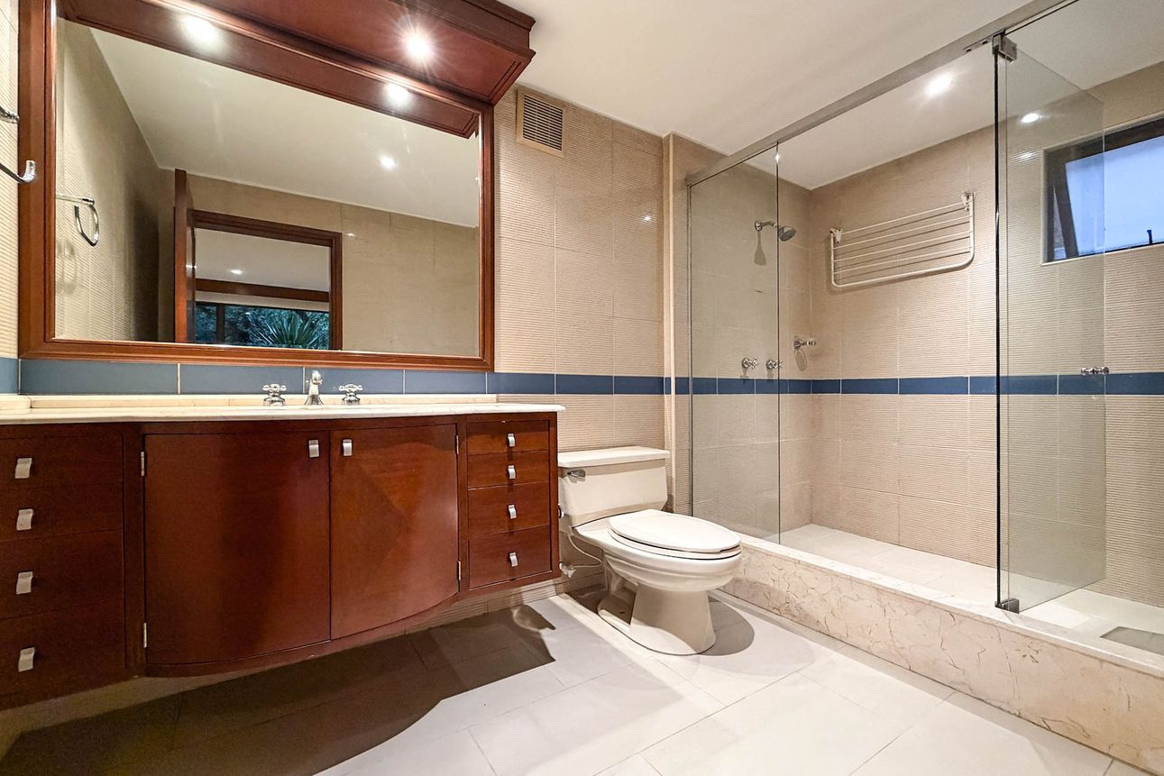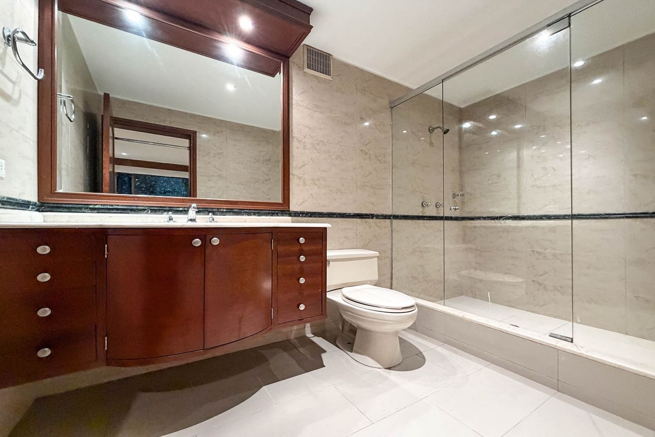 El apartamento tiene un hermoso balcón con vista panorámica, ideal para relajarse al final del día. La cocina está conectada con el área de lavandería y un cuarto de servicio, brindando mayor comodidad. El edificio ofrece parqueaderos para visitantes, un elegante lobby y un depósito extra para almacenamiento.