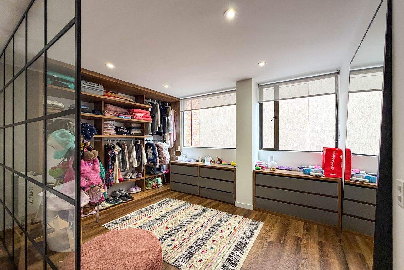 Aunque el apartamento no está amoblado, las posibilidades son infinitas para personalizar cada espacio a tu gusto. La chimenea en la sala agrega un toque acogedor, mientras que la área de lavandería y el depósito hacen que el día a día sea más práctico. Los visitantes disfrutarán de un elegante lobby y parqueaderos especiales para ellos. El edificio cuenta con ascensor y garantiza comodidad al estar en el séptimo piso.