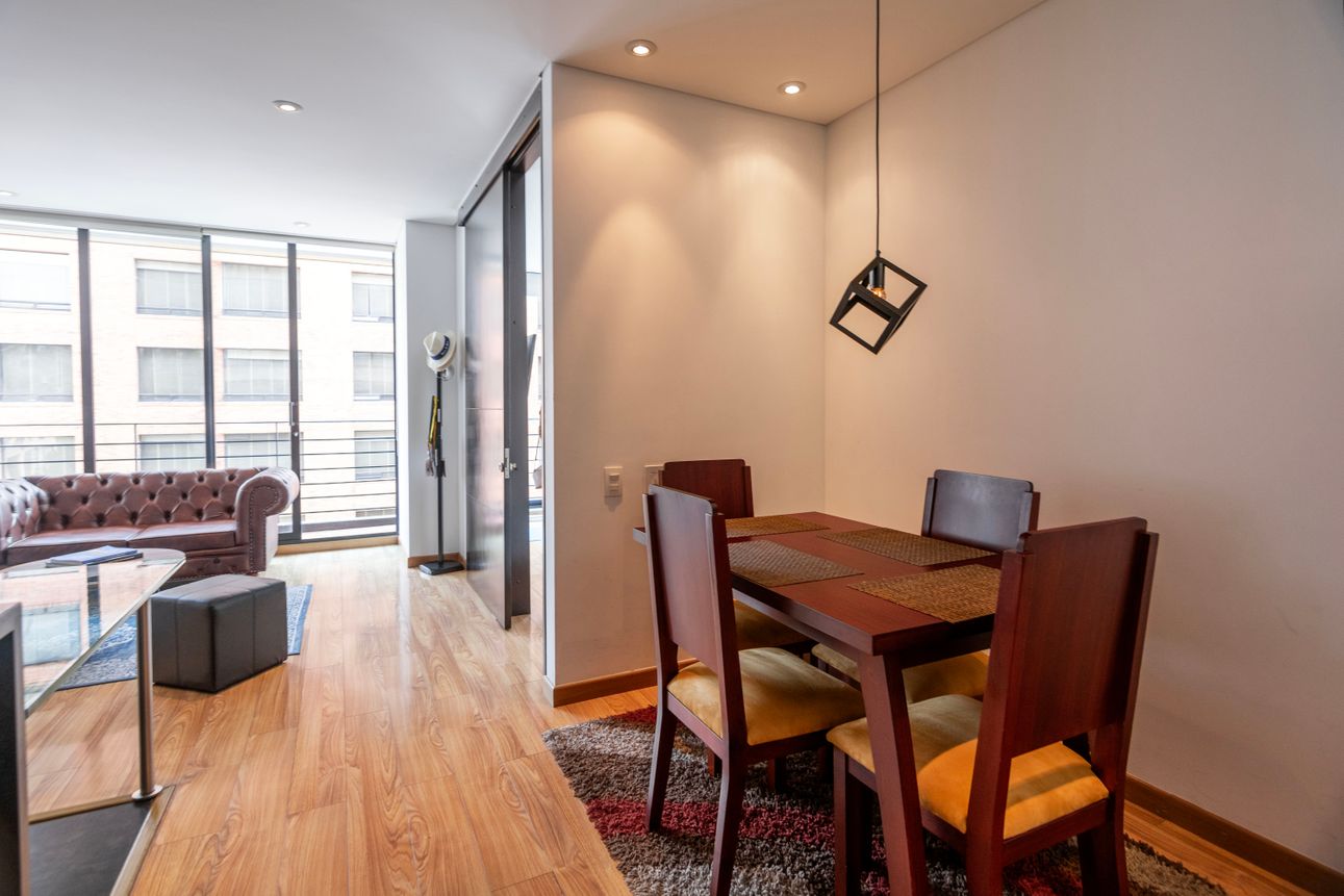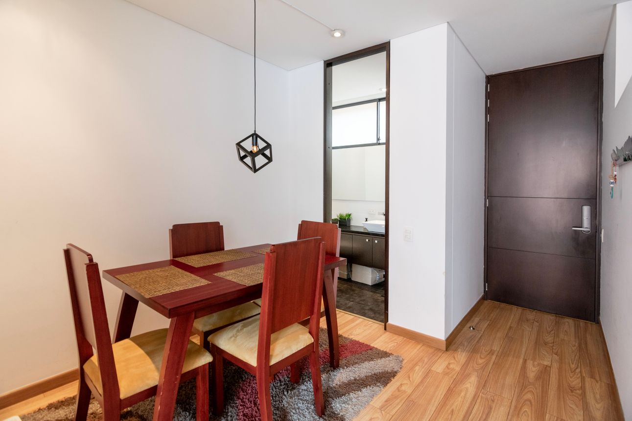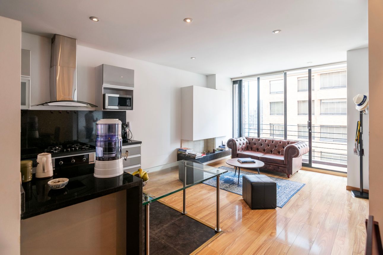 En el corazón de Usaquén, Bogotá, se encuentra este acogedor apartamento perfecto para quienes buscan tranquilidad y comodidad en un mismo lugar. Con un diseño moderno y funcional, el apartamento cuenta con una habitación amplia y bien iluminada. La cocina, equipada con servicio de gas natural, se integra sutilmente con el área social que se extiende hacia un balcón, creando un espacio ideal para disfrutar de momentos al aire libre.