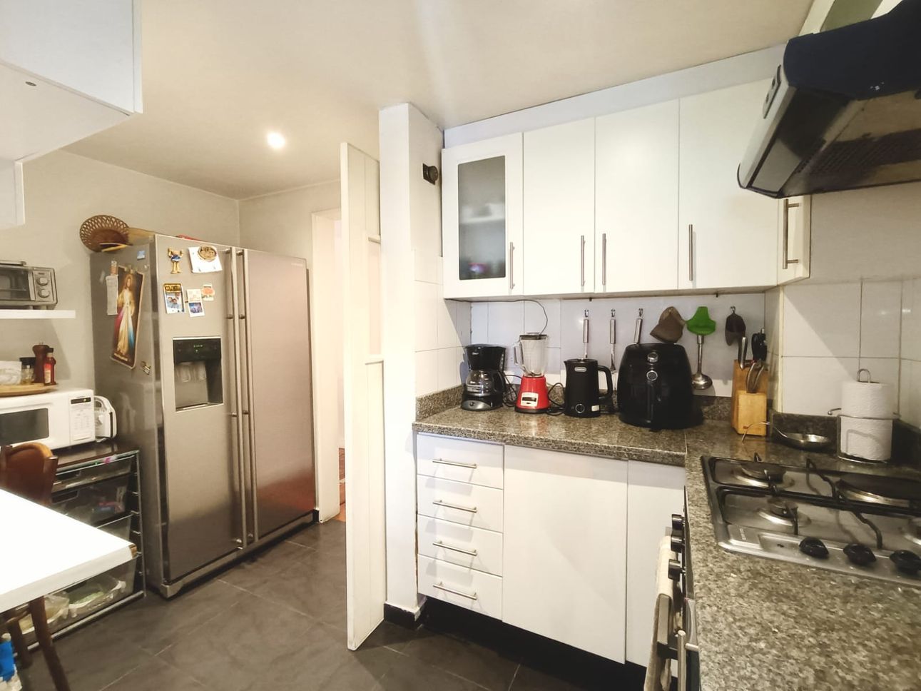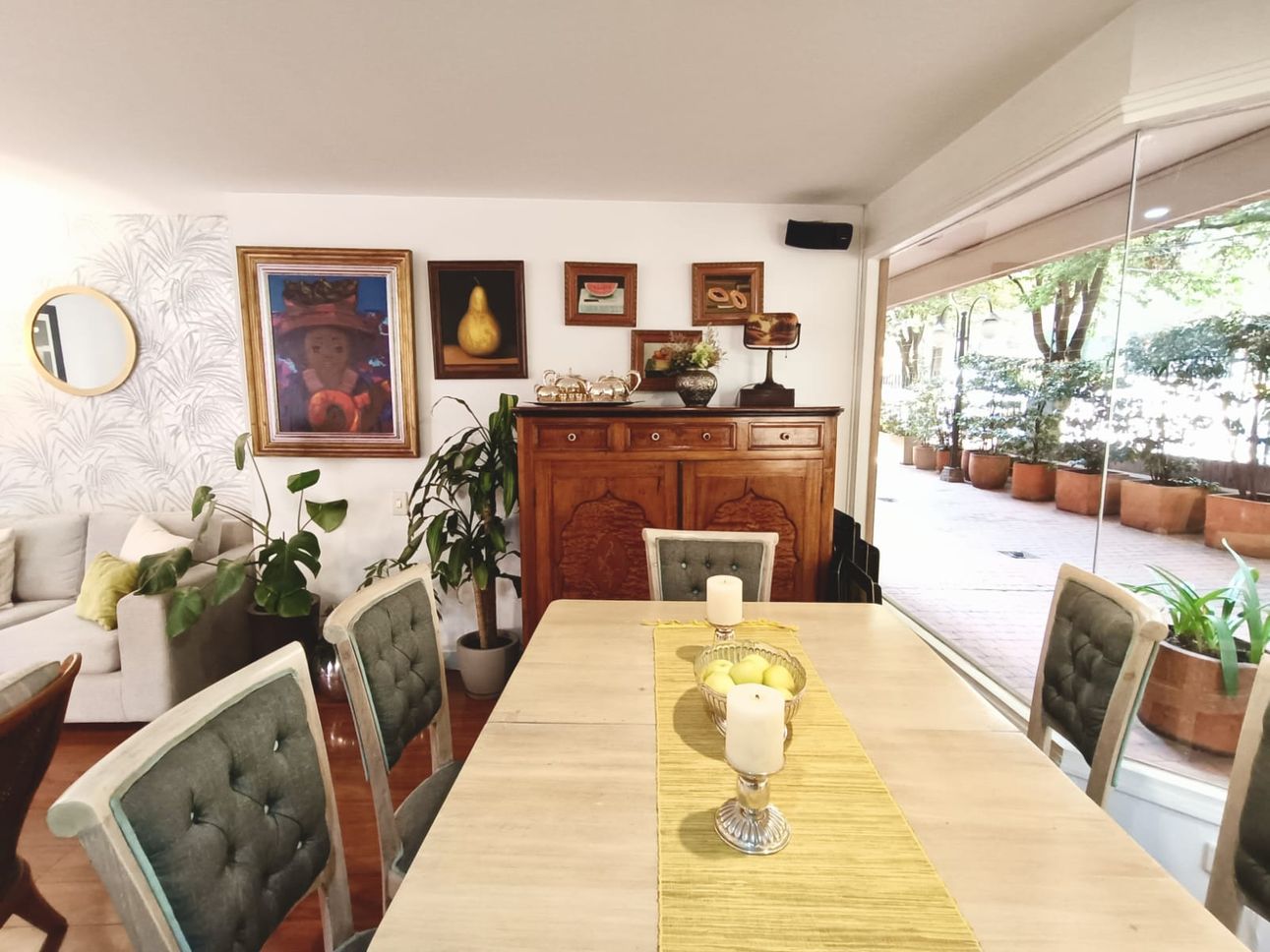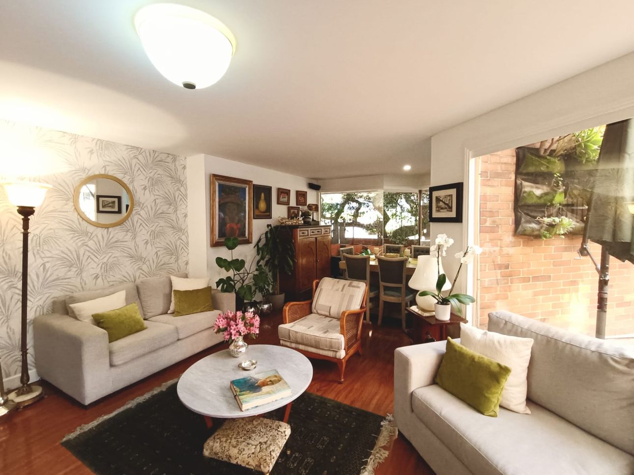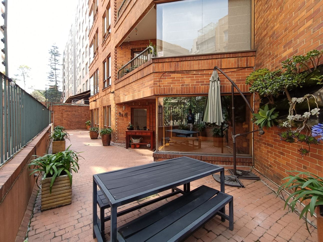 El apartamento cuenta con una chimenea a leña para crear un ambiente acogedor, además de una cocina integral cerrada equipada con estufa a gas. La seguridad es prioritaria en este lugar, ya que dispone de puerta de seguridad, CCTV, y vigilancia 24 horas. También se aprecia la comodidad de tener un parqueadero cubierto y espacio para bicicletas, sumado a un depósito para almacenamiento extra.