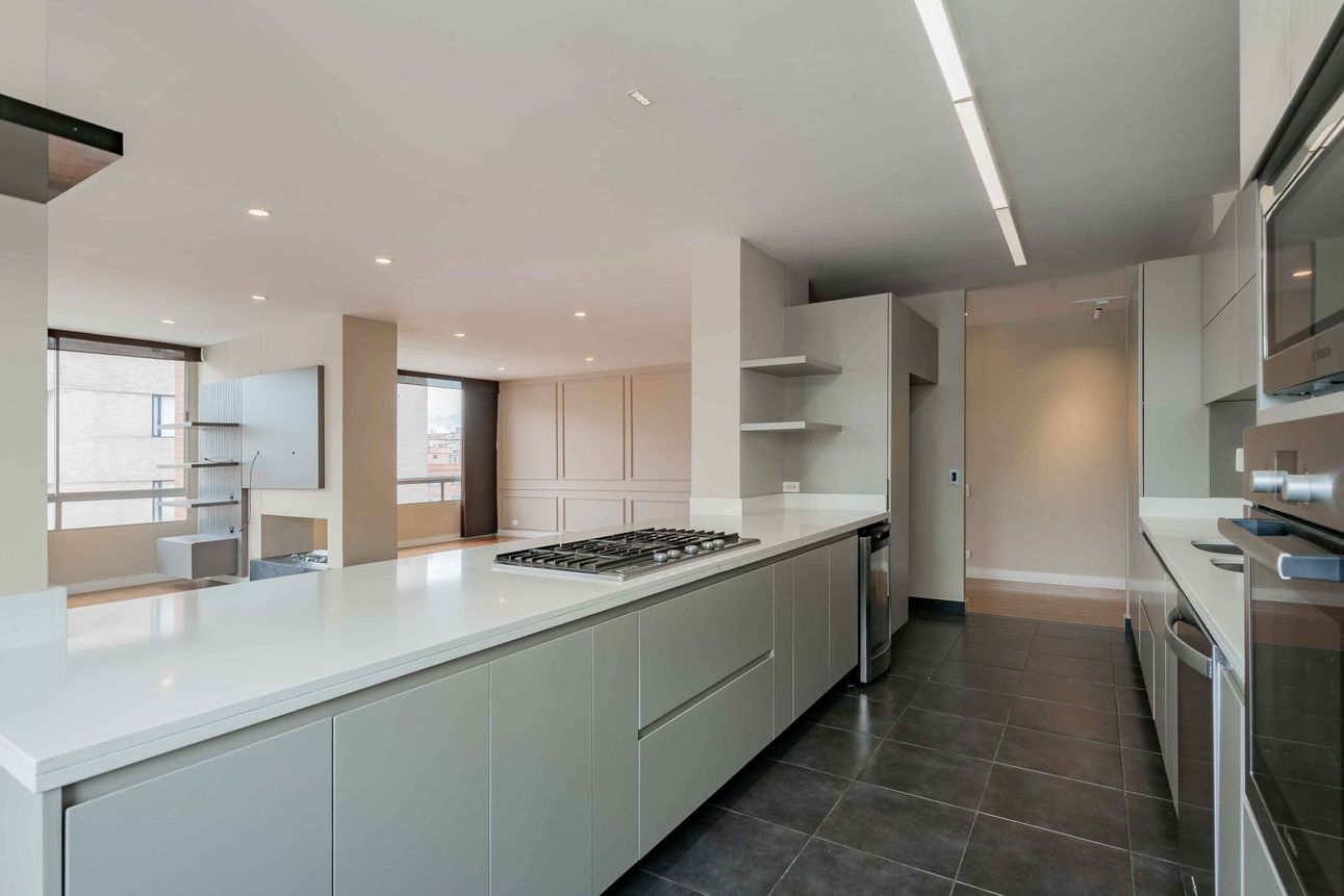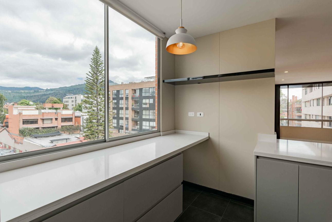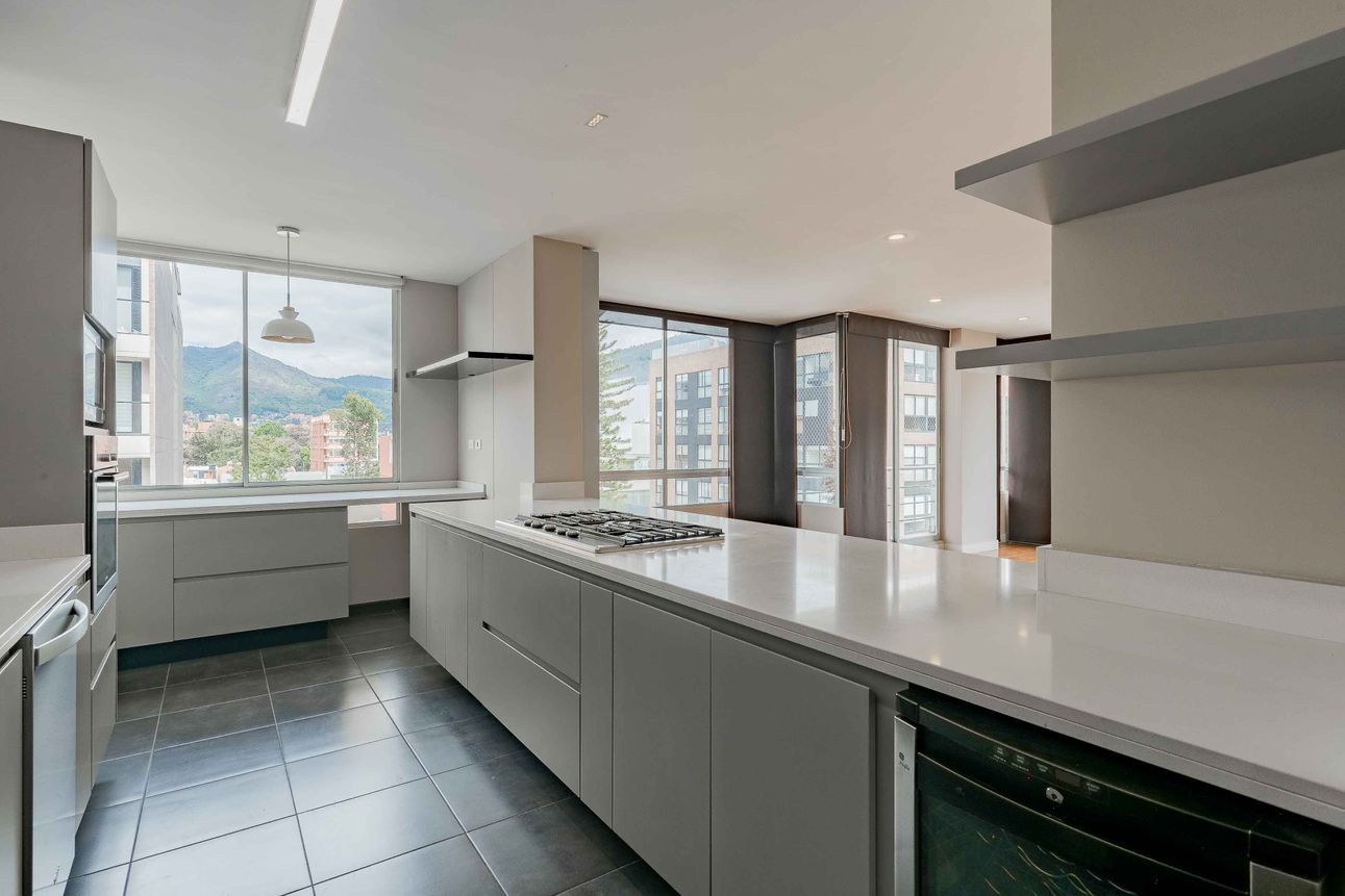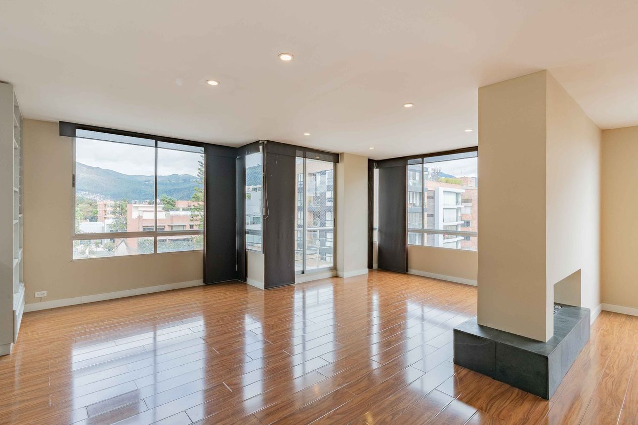 Hermoso apartamento, exterior, moderno y espectacularmente remodelado, súper iluminado y con vista a las montañas. Con tres habitaciones, todas con baño privado, perfecto para quienes buscan comodidad y funcionalidad. Se entrega con cortinas y blackout. Al ingresar, te recibe un salón comedor inmenso, con una sala de estar y una elegante cocina abierta de acabados italianos con barra estilo americano, lavaplatos eléctrico, horno microondas, Horno Bosch, nevera de vinos y cava; ideal para compartir momentos especiales. El family room y el estudio ofrecen espacios versátiles, mientras que el balcón y la vista añaden un toque natural y fresco al ambiente. Con una chimenea a gas que brinda calidez en las noches frías, éste apartamento lo tiene todo.